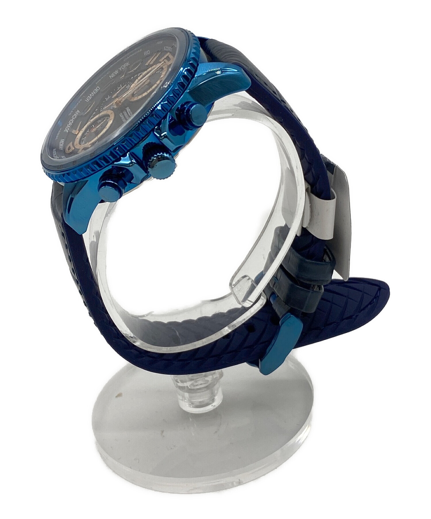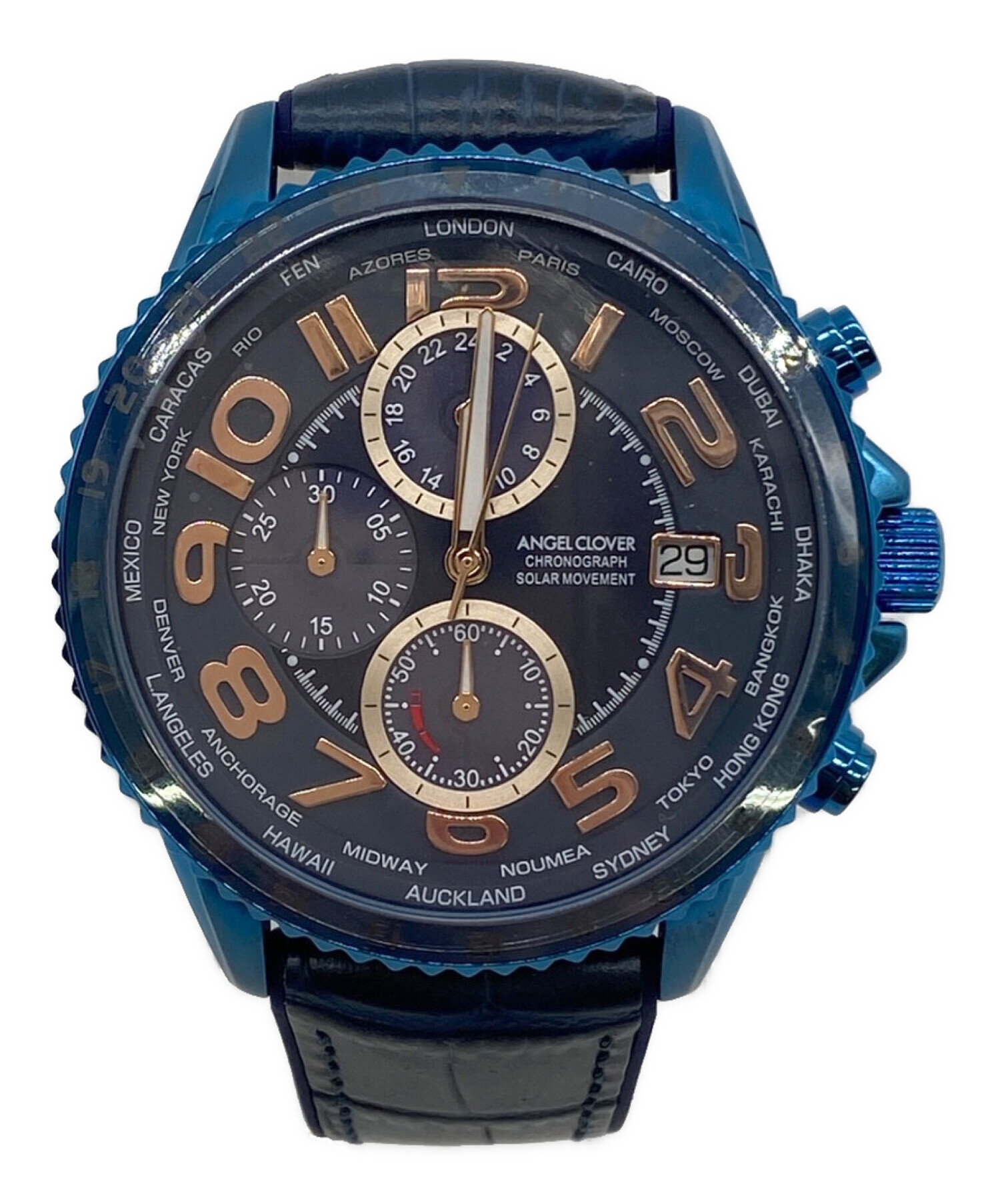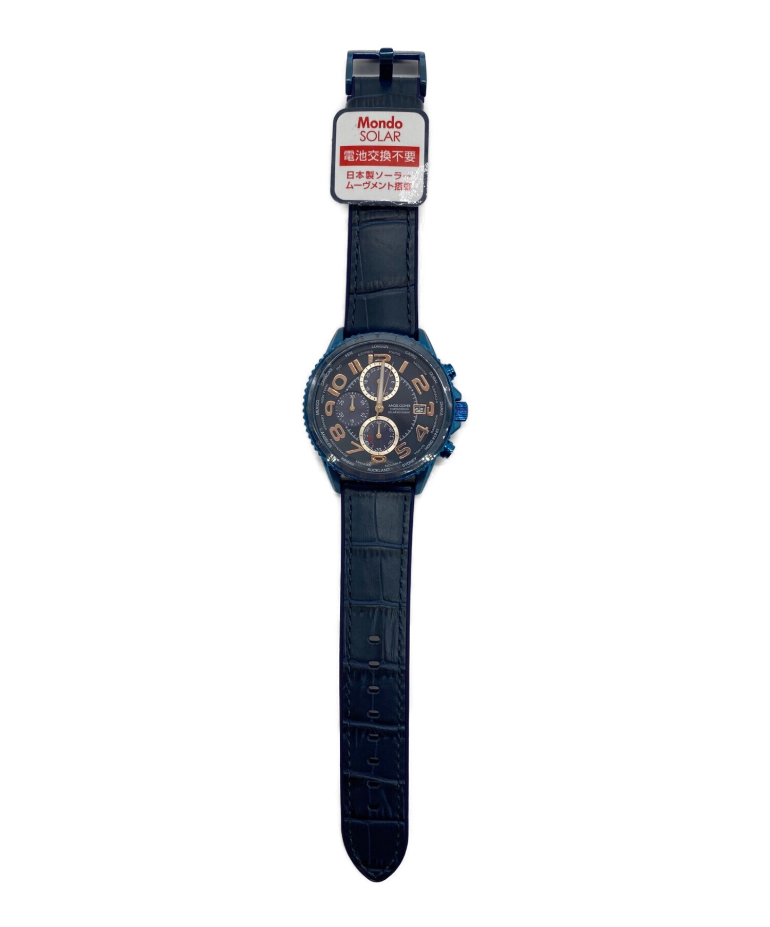 | スタッフコメント | ワールドタイマーを搭載した、人気のシリーズがソーラーに! アクティブに活動される方や、海外旅行好きの方にお薦めです。 鮮やかなブルーのホールに、落ち着いたネイビーのバンドとの組み合わせが素敵な一品です。 |