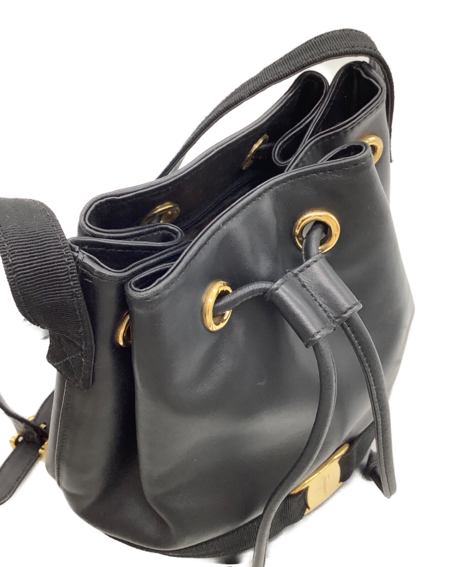 • Salvatore Ferragamo(サルヴァトーレ フェラガモ)Salvatore Ferragamo (サルヴァトーレ フェラガモ) 巾着ショルダーバッグ ブラック×ゴールドの古着・服飾アイテム 全体にスレ・薄汚れあり。
