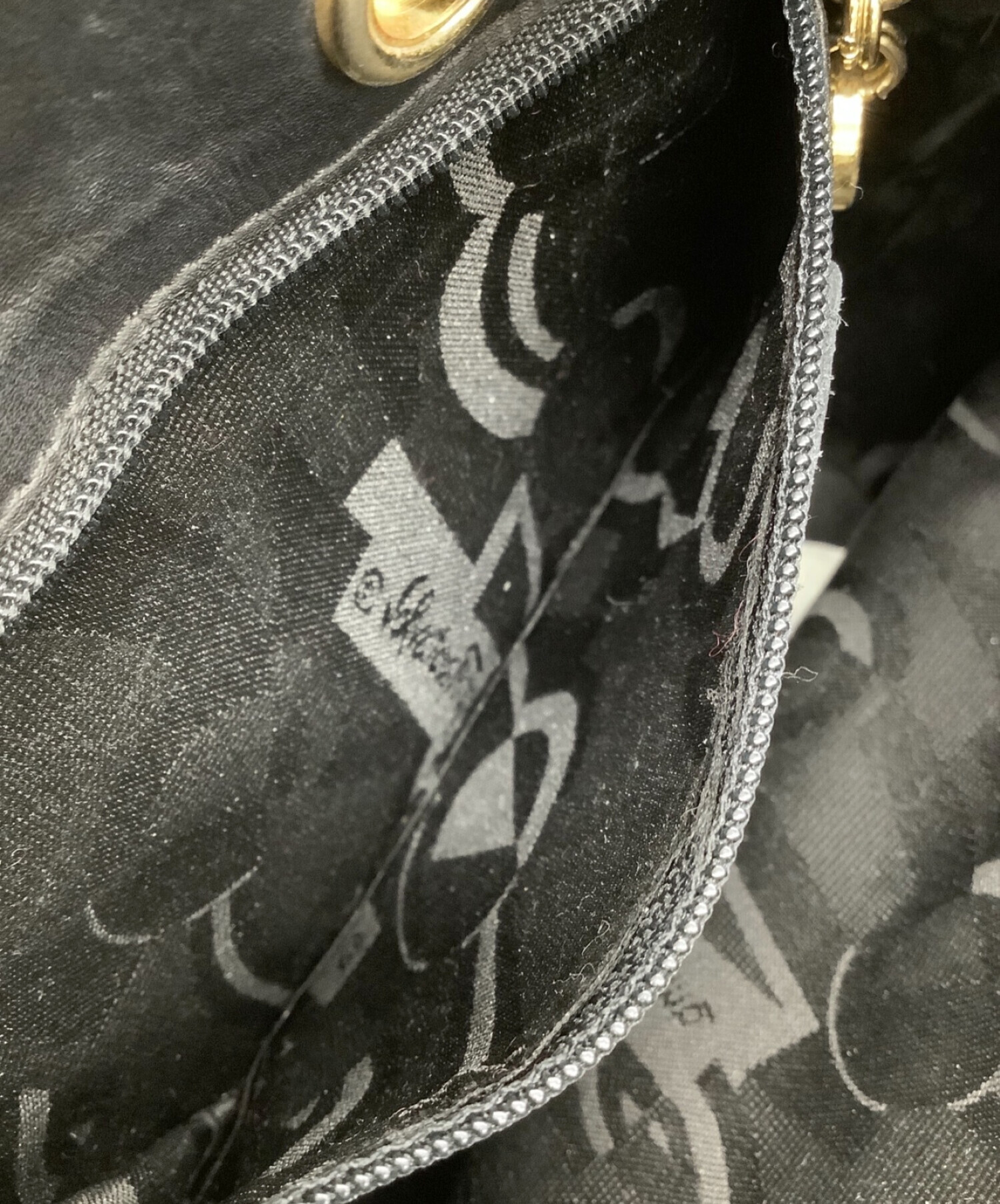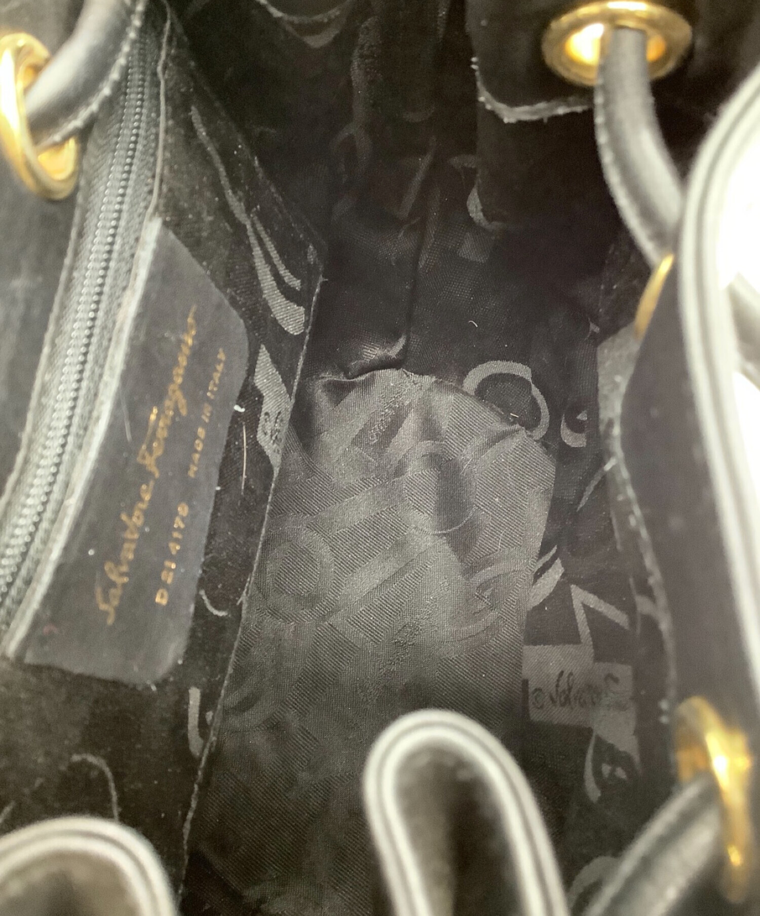 • Salvatore Ferragamo(サルヴァトーレ フェラガモ)Salvatore Ferragamo (サルヴァトーレ フェラガモ) 巾着ショルダーバッグ ブラック×ゴールドの古着・服飾アイテム 薄汚れ