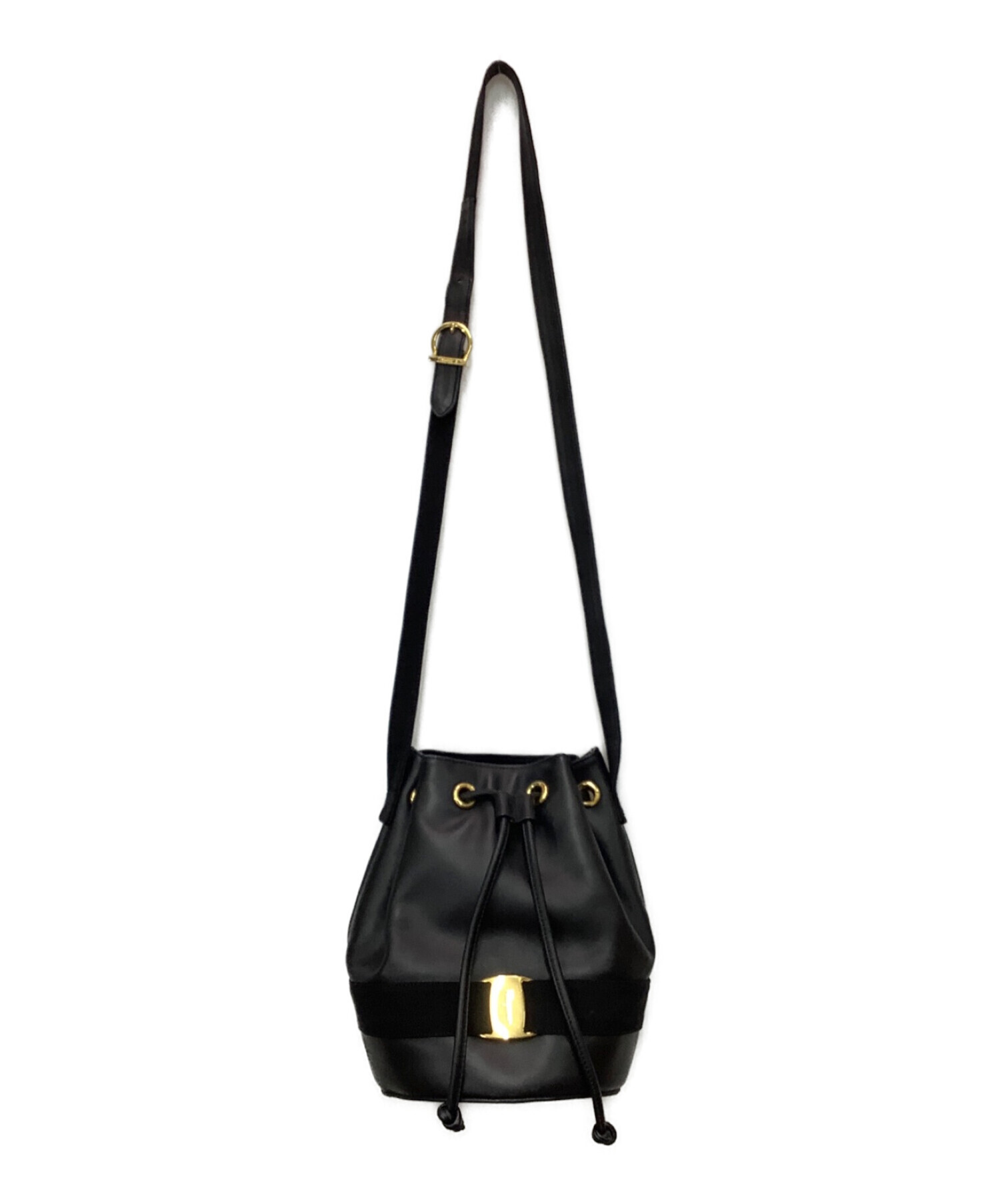 • Salvatore Ferragamo(サルヴァトーレ フェラガモ)Salvatore Ferragamo (サルヴァトーレ フェラガモ) 巾着ショルダーバッグ ブラック×ゴールドの古着・服飾アイテム 薄汚れ有り