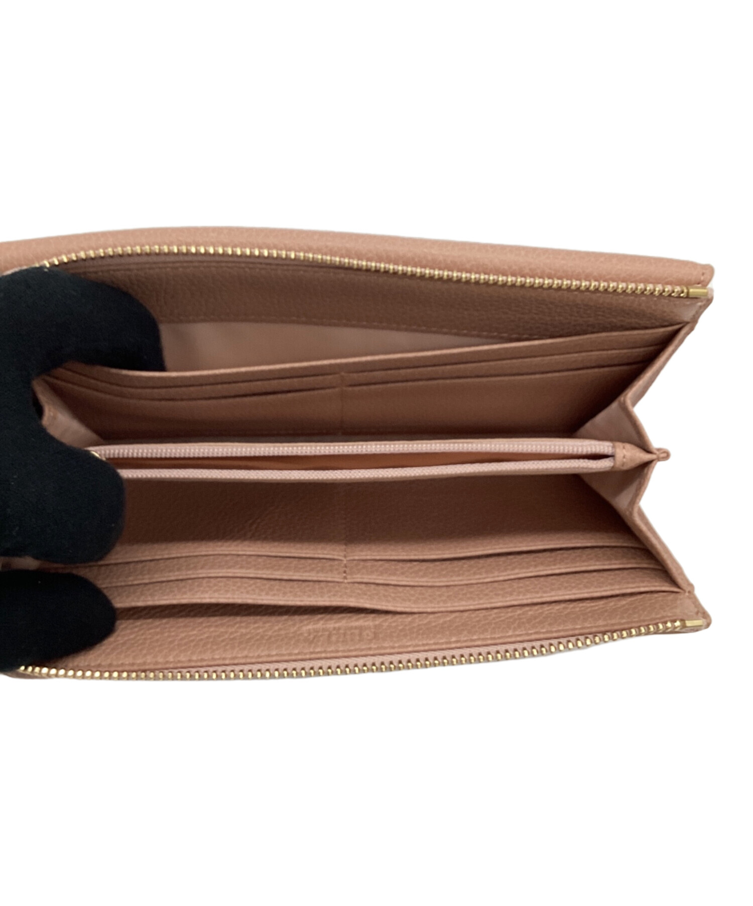 | スタッフコメント | 光沢のないベージュに近い淡いピンクですので、落ち着いた上品な印象のお品物です。通常のジップラウンドタイプにプラスしてフロントのボタン止めポケットが機能性を発揮しそうです。 |