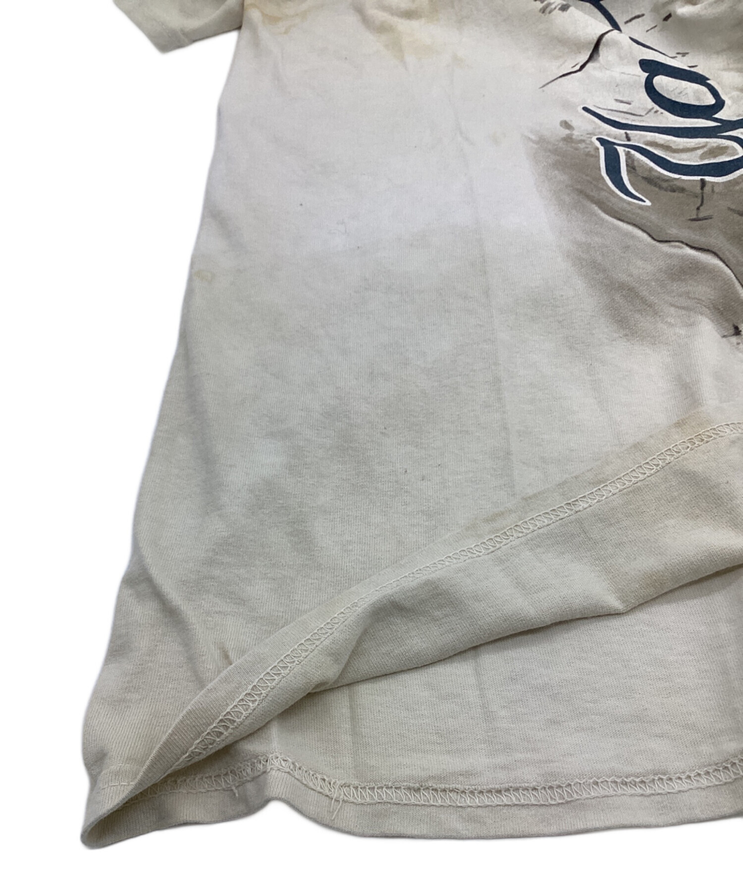 | スタッフコメント | 大胆な染めも得意とするブランドのニューヨークヤンキースTシャツです。こちらも一見汚れと見間違いそうな大胆な染めが入っています。ザラっとしたドライな質感と丸胴仕様が米国ブランドらしいお品物です。USサイズ表記ですので、大きめのサイズ感になります。 |