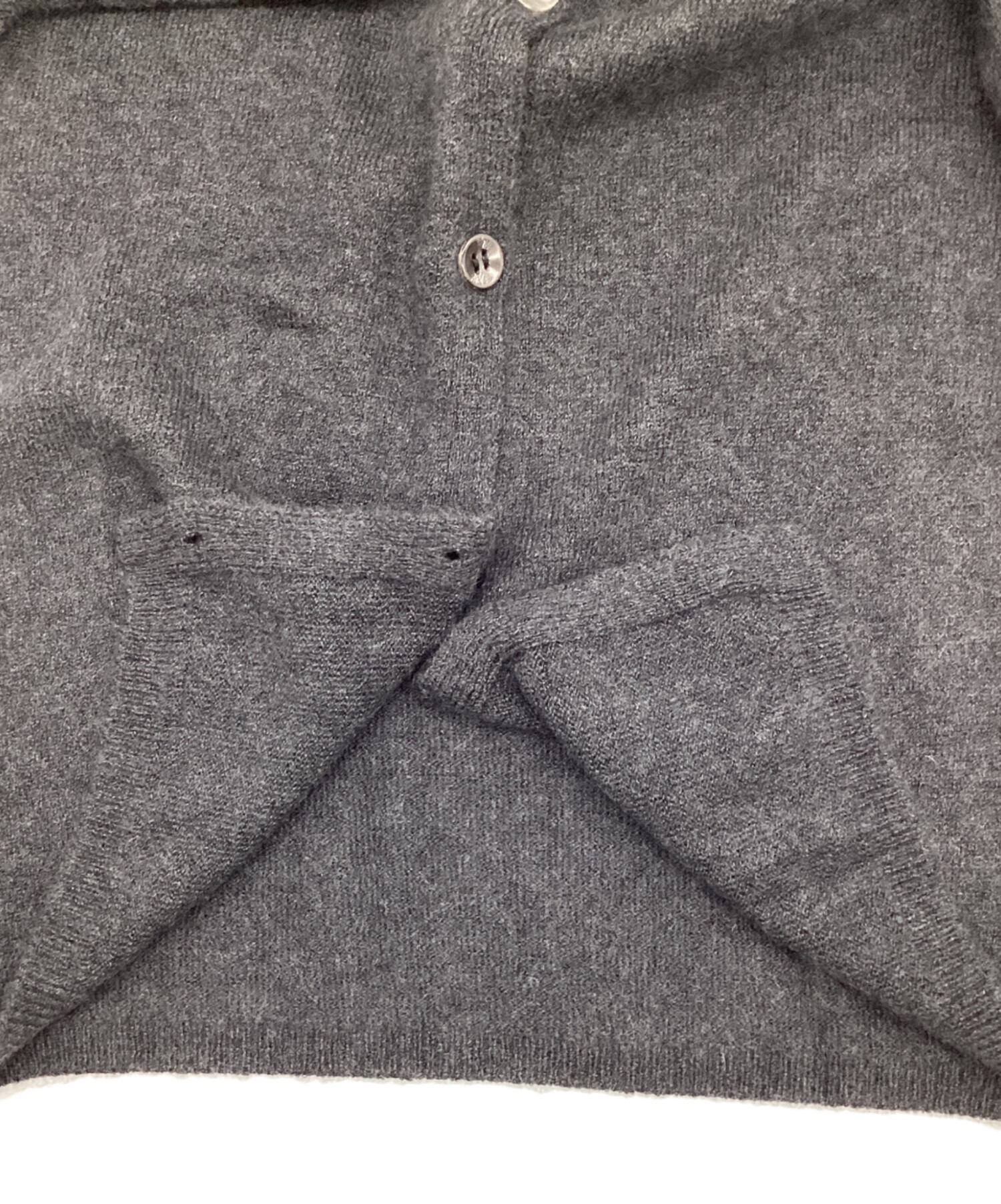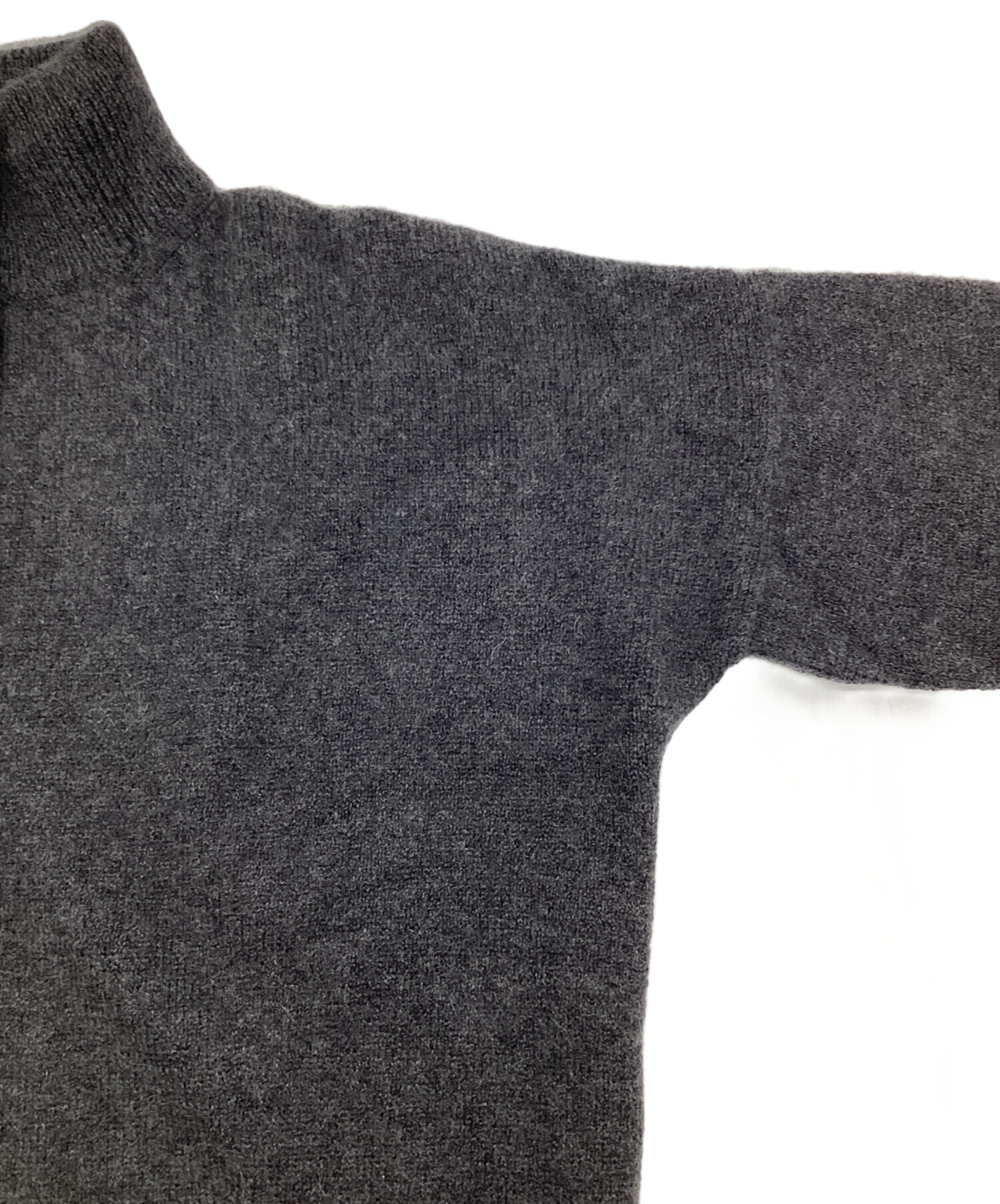 | スタッフコメント | あいまいなリブ、七分袖、控えめなハイネックが特徴的です。シックなグレーをカシミヤのふんわりとした素材感が柔らかくまとめています。シンプルながら、袖の取り付けに個性を感じるお品物です。 |