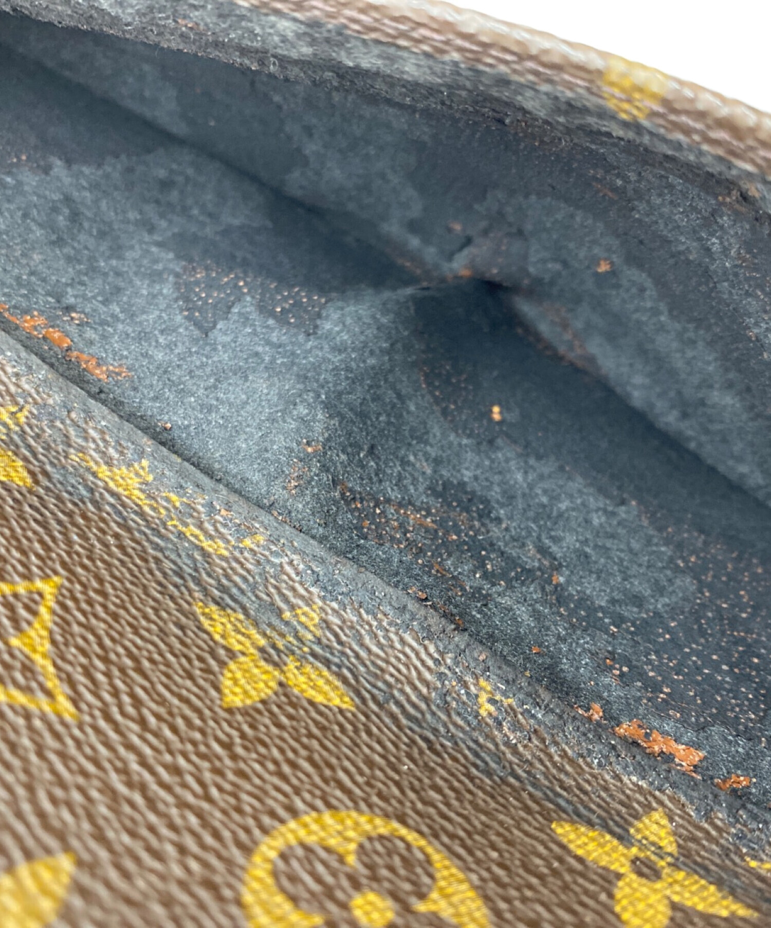 | 状態 | 型崩れ、ポケット内部の劣化(生地のハガレ・黒ズミ・ベタツキ・カビ・汚れ・擦れキズ・など)、金具のくすみ・メッキ剥がれ・青錆、コバ擦れ・ハガレなどなど。 こちらの商品は全体的に使用感や傷、ヨゴレが見受けられる商品になっております。店頭にて展示販売を行っている為、記載に無い細かなキズ、汚れが見受けられる場合がございます。 |