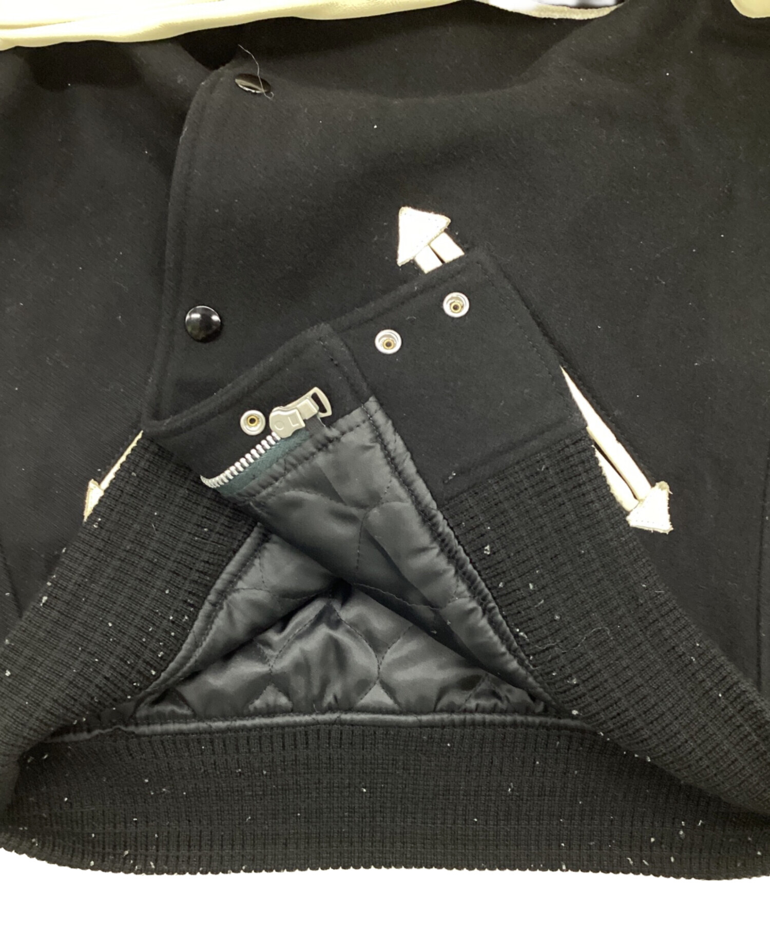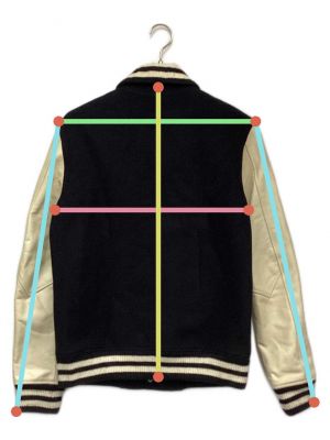 | スタッフコメント | ブラック×アイボリーの定番的カラーリングに襟が特徴的なスタジャンです。 |