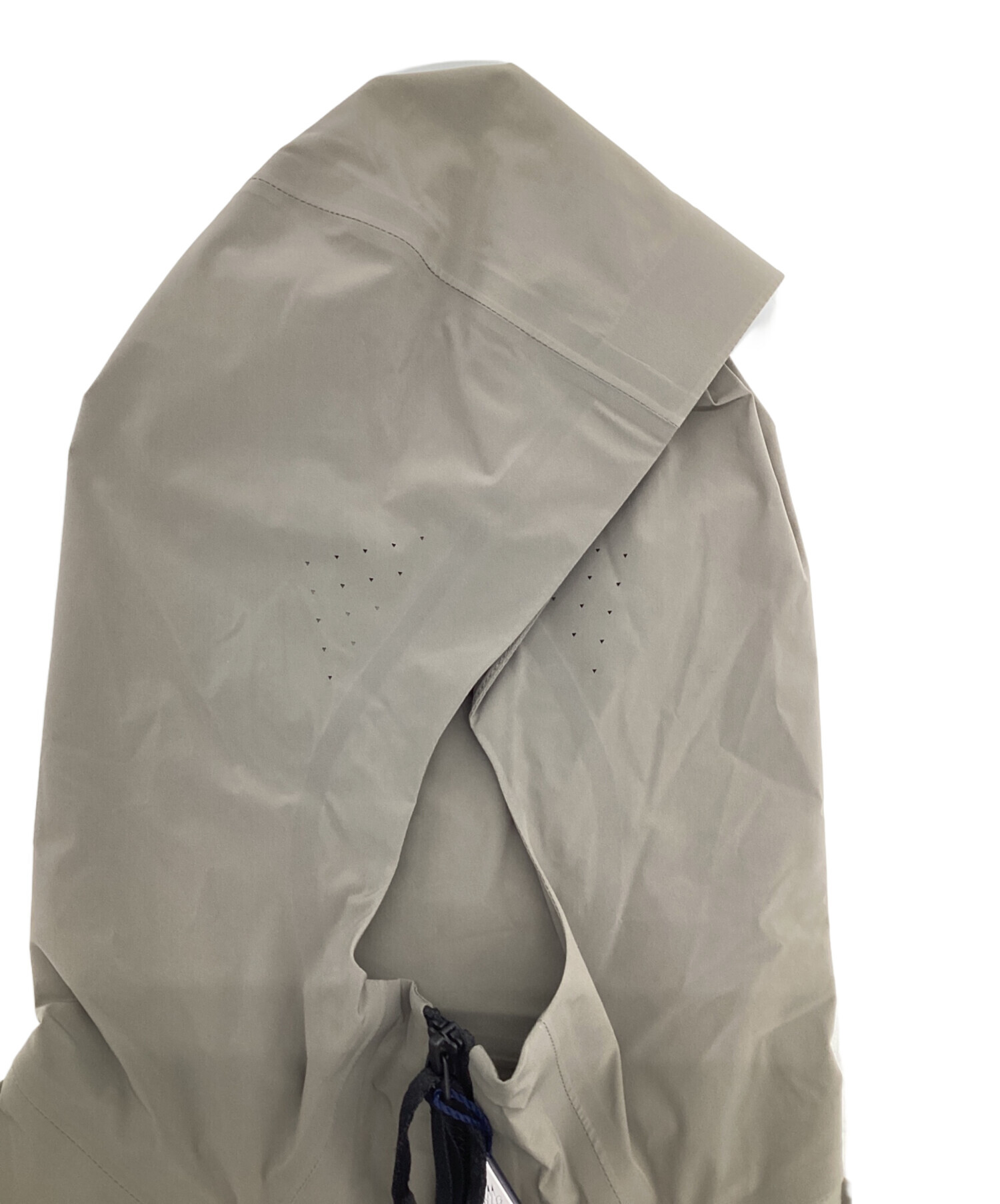 | スタッフコメント | 機能性で定評のあるブランドらしく、ストレッチの効いたナイロン素材、すべての縫い合せ(フード内、袖裏も)にテーピングによる防風対策が施されています。放湿の為のフード量サイド▲パンチング、背中中央■パンチングがミニマルなデザインにアックセントを加えています。 |