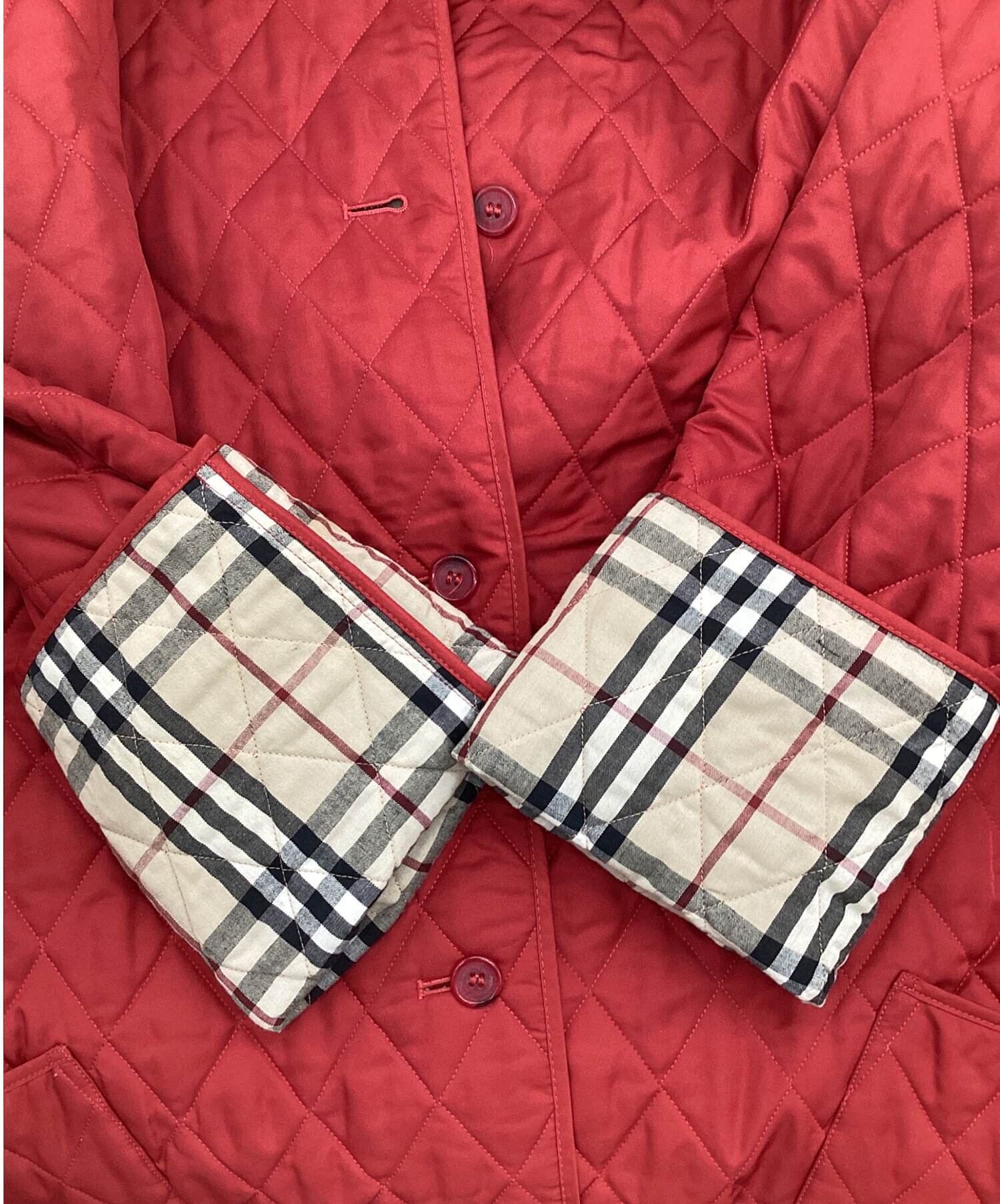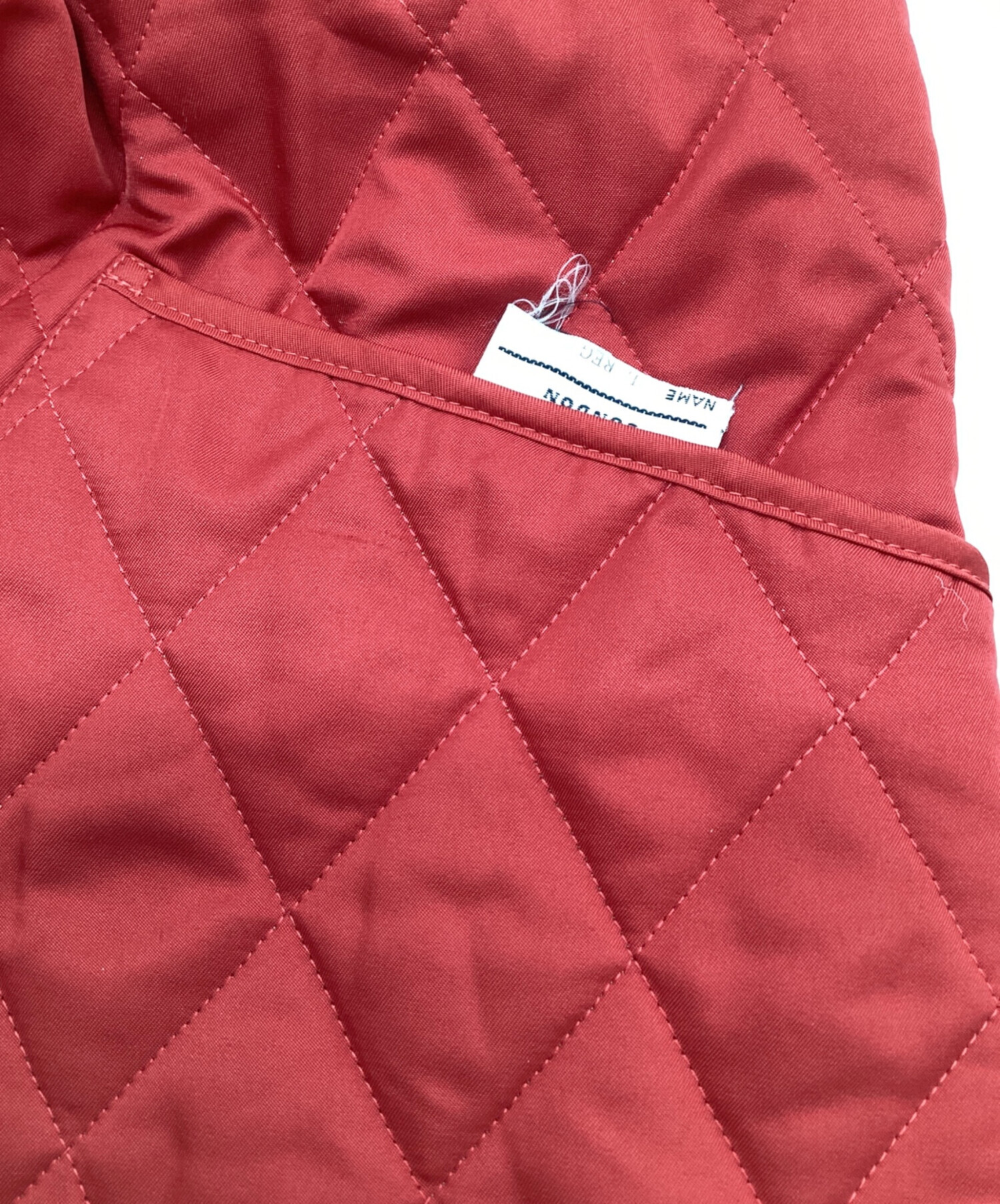 | スタッフコメント | ライナー風のシンプルなデザイン、細かなダイヤ型キルティングです。ボタン、ステッチまでそろえられたレッド、背面のラウンドした衿、斜めに取り付けられたポケットの曲線に品があります。 |
