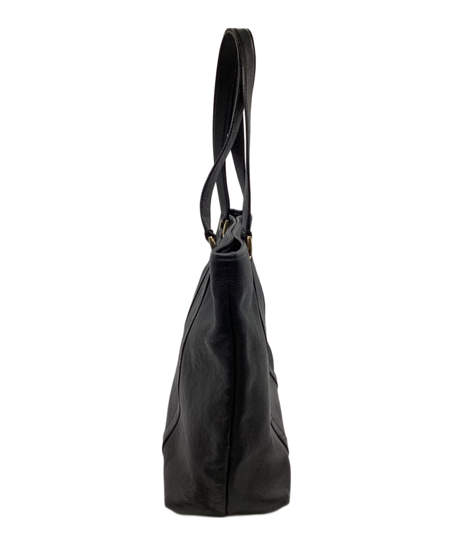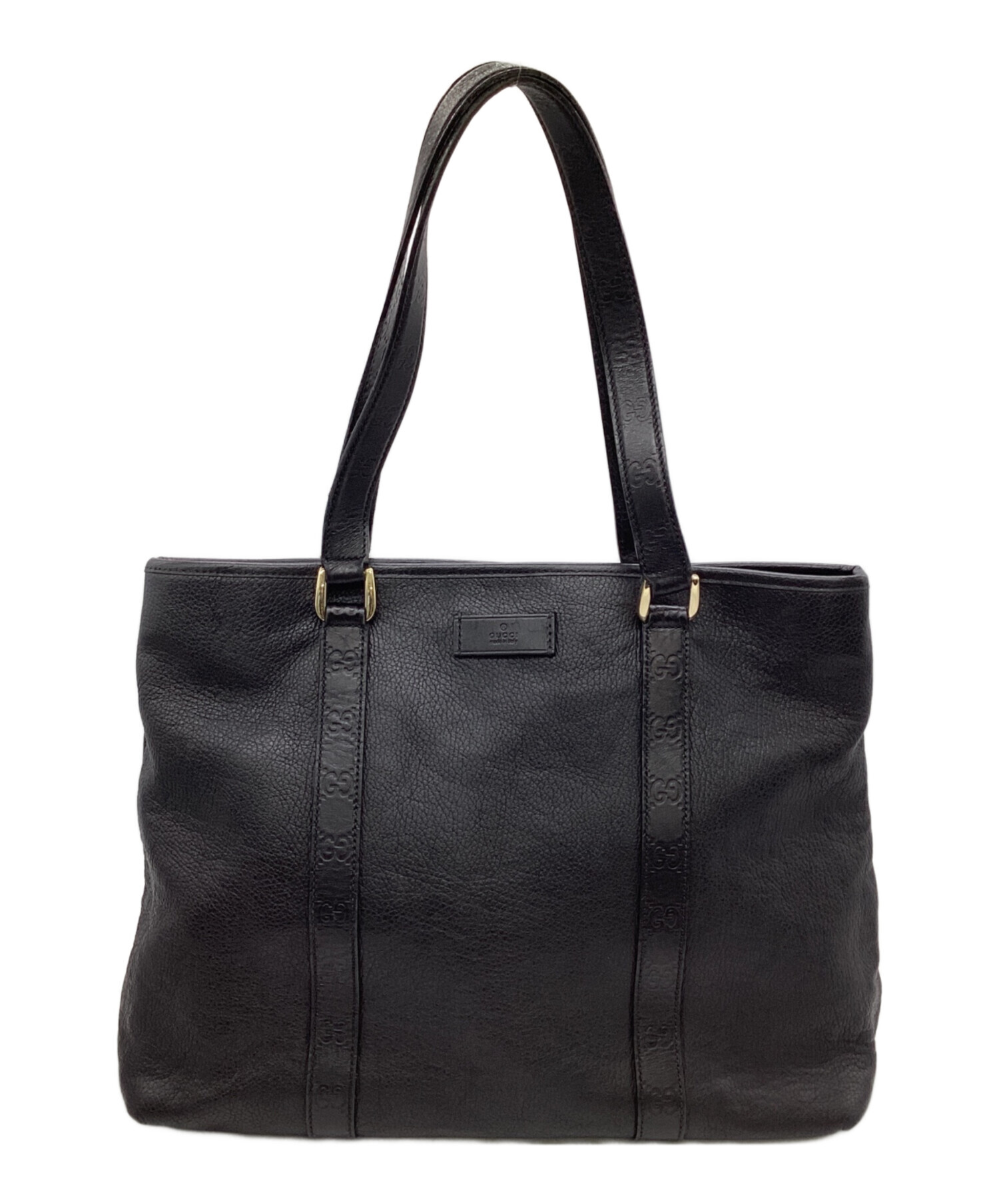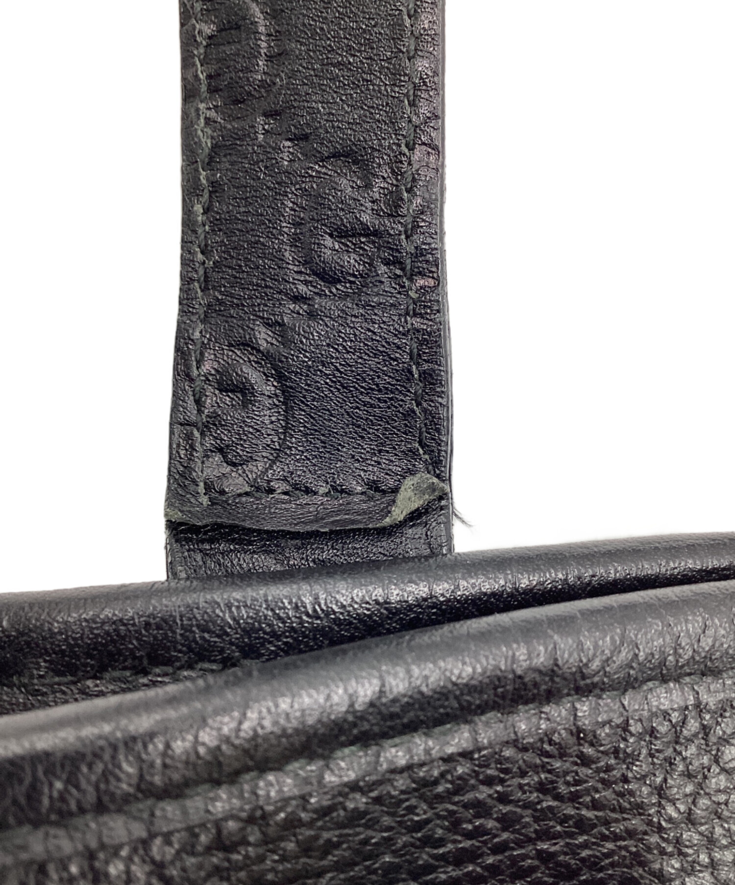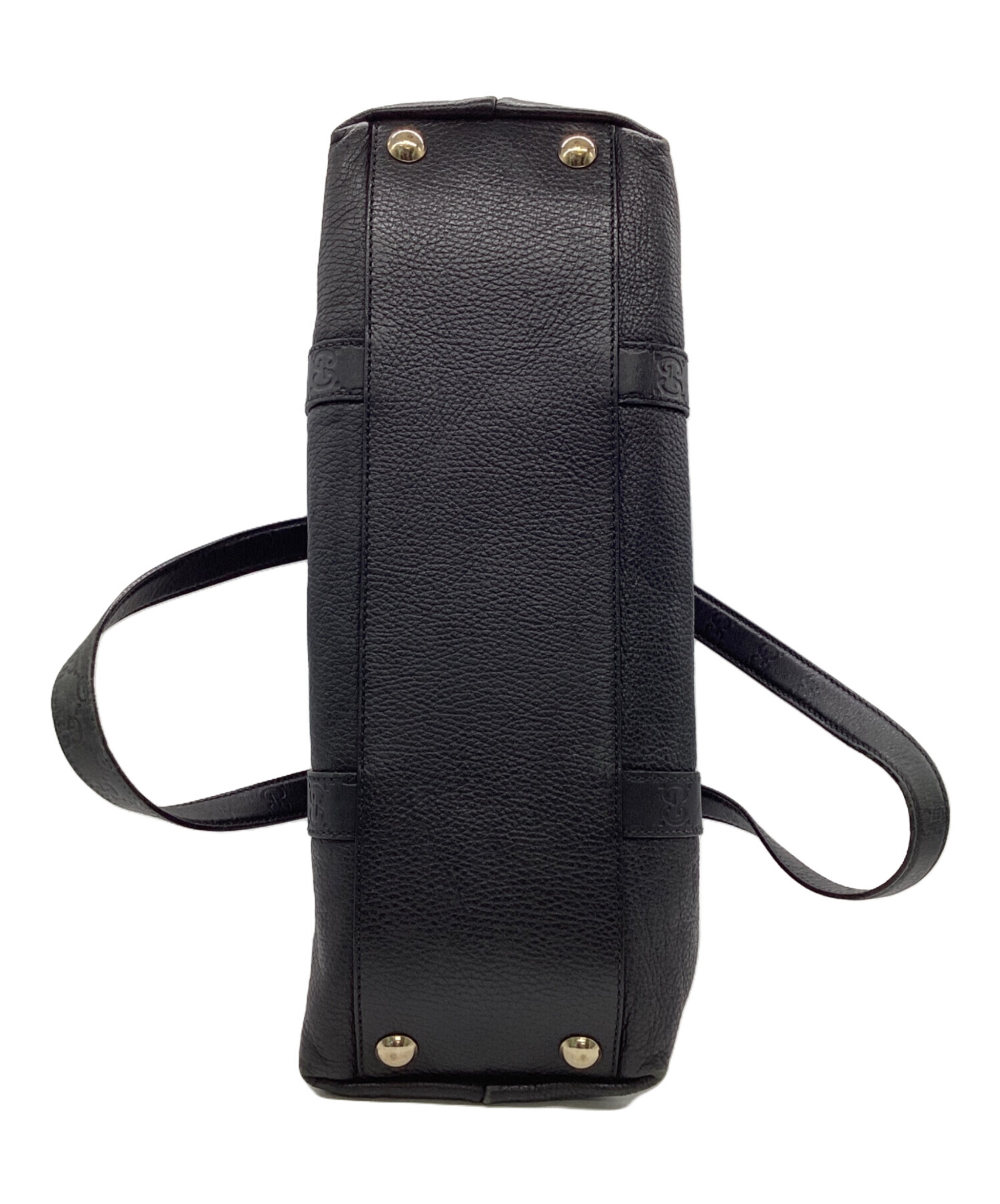 | スタッフコメント | 厚みがありながら柔らかさも備えたレザーを使用したトートバッグです。GG柄の型押し処理されたハンドルが特徴的です。大き目のサイズ感、シンプルなブラック色でビジネスシーン以外でも日常使いいただけるお品物です。 |