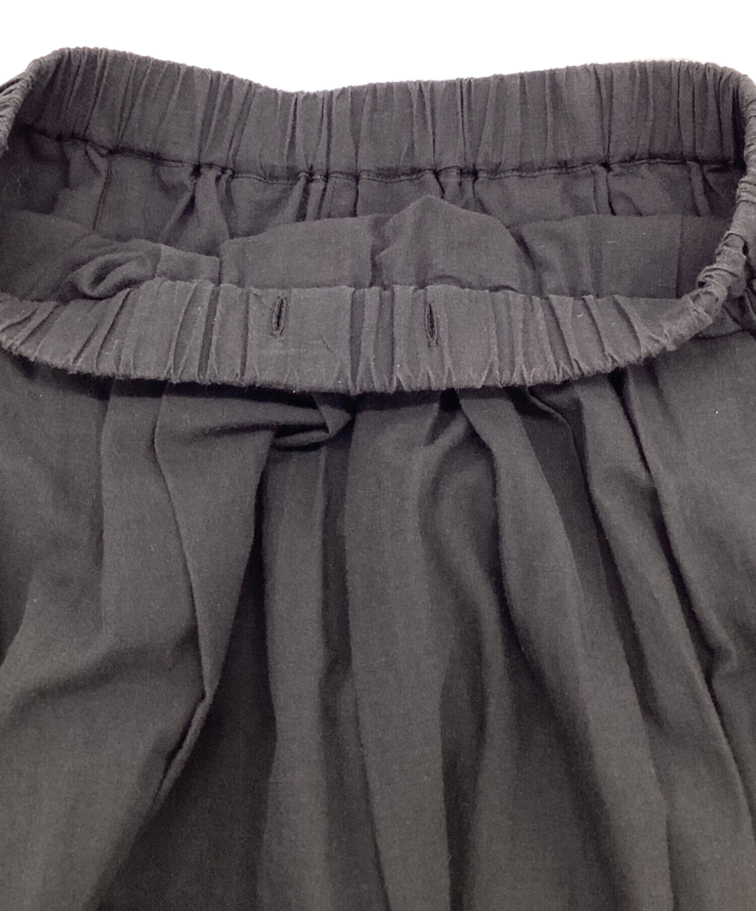 | スタッフコメント | コットンのナチュラルな風合い、マットな墨黒が特徴的です。同色による刺繍がアクセント、ウエストゴムのリラックス仕様です。 |