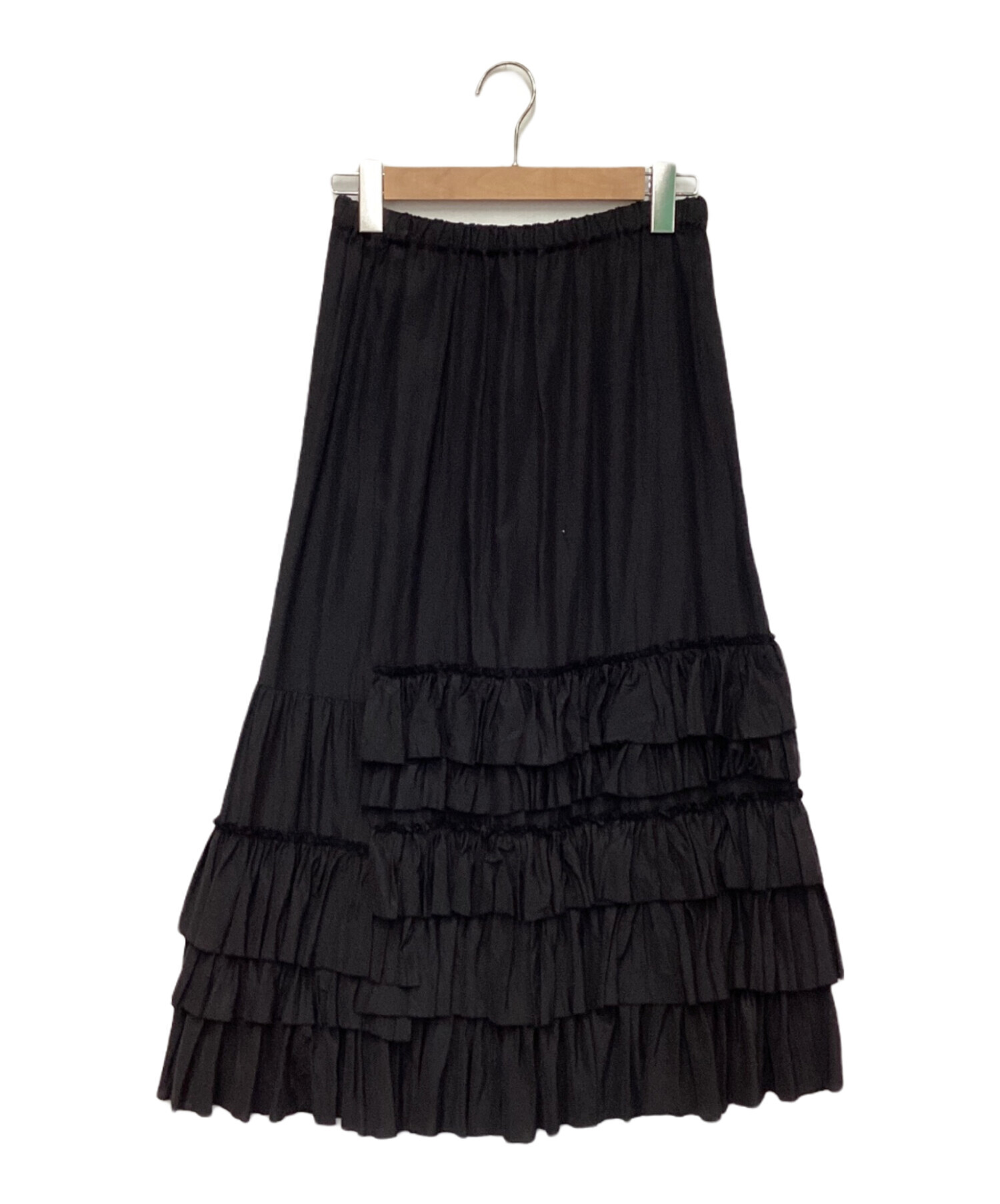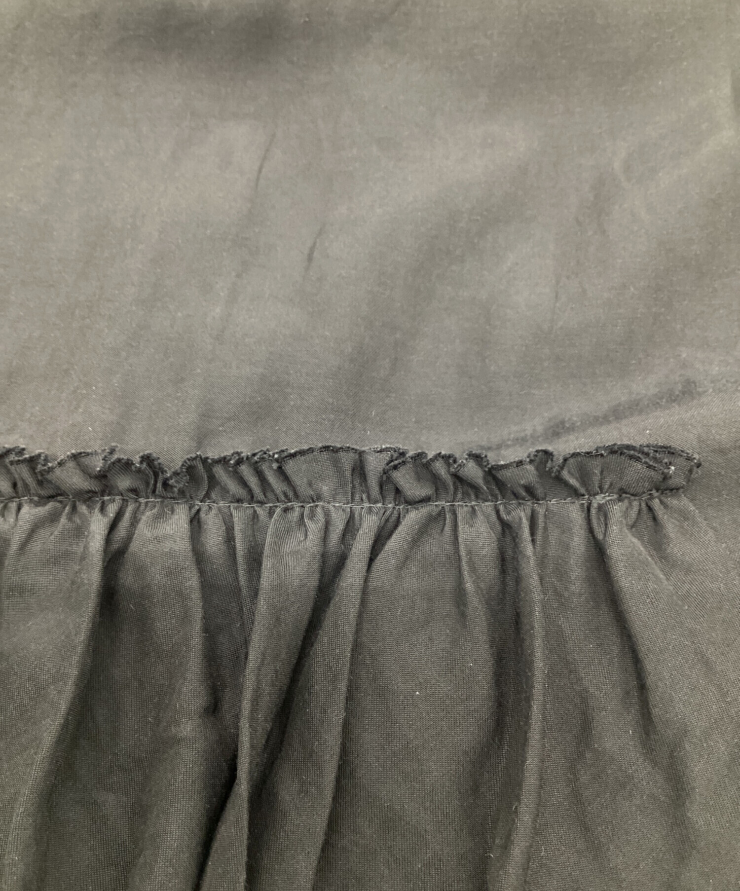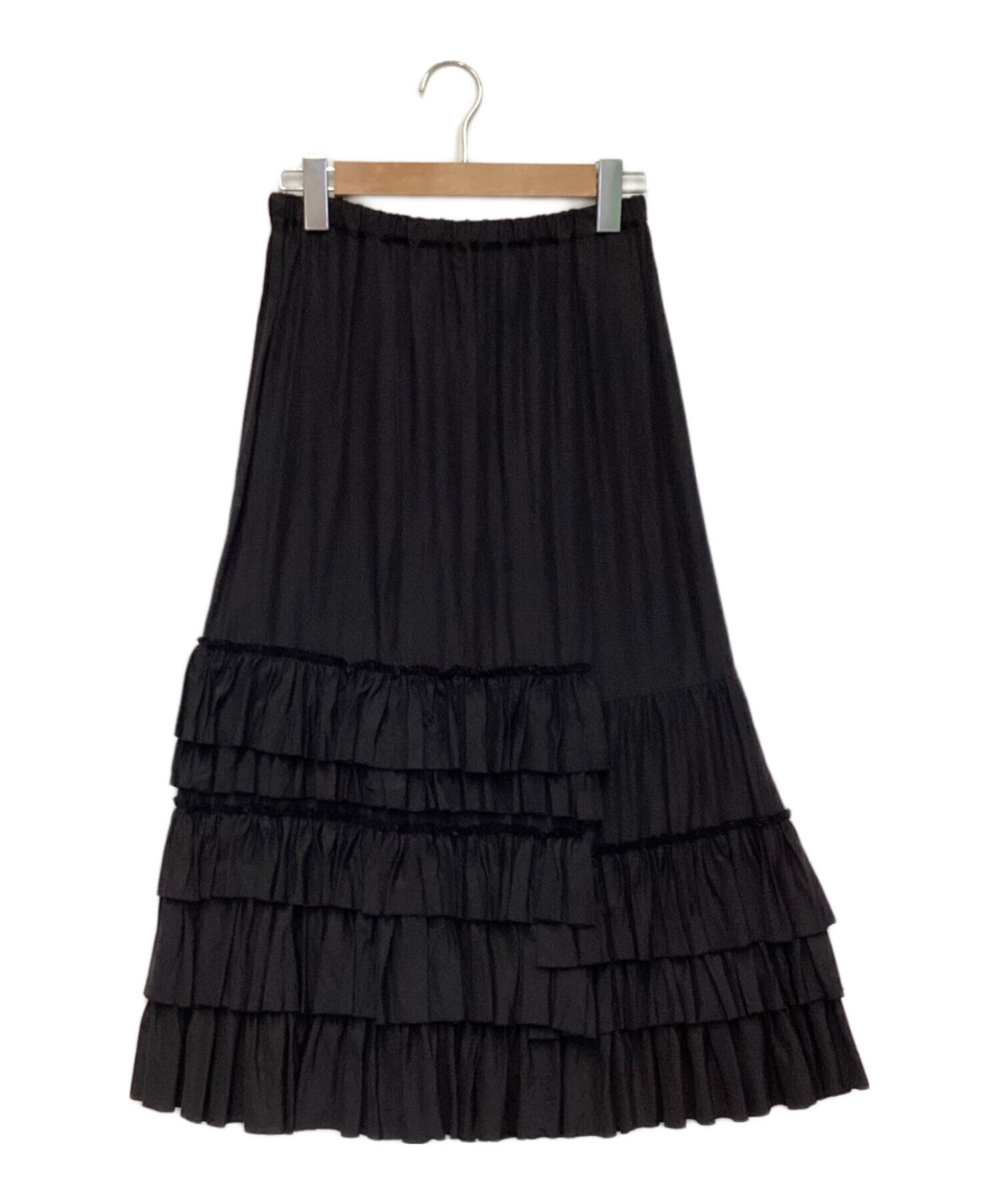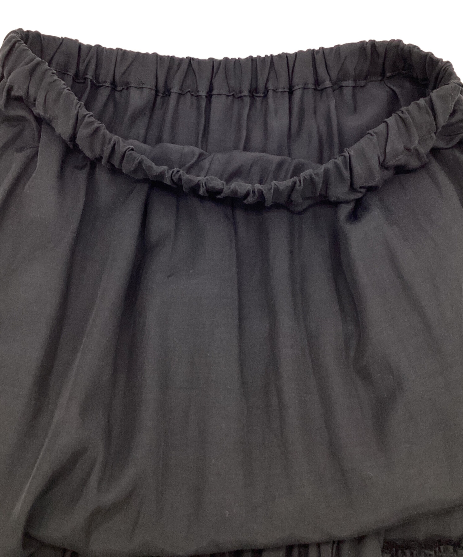| スタッフコメント | アシンメトリーなラッフルが特徴的です。薄手の生地感、ウエストゴム仕様でリラックスして着用いただける黒です。 |