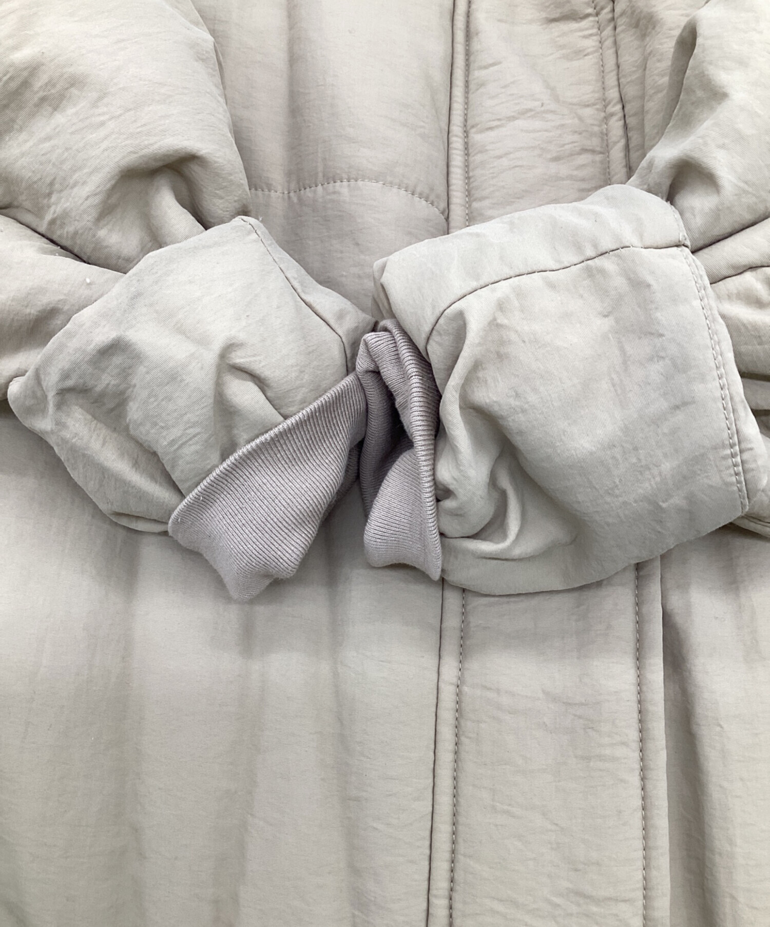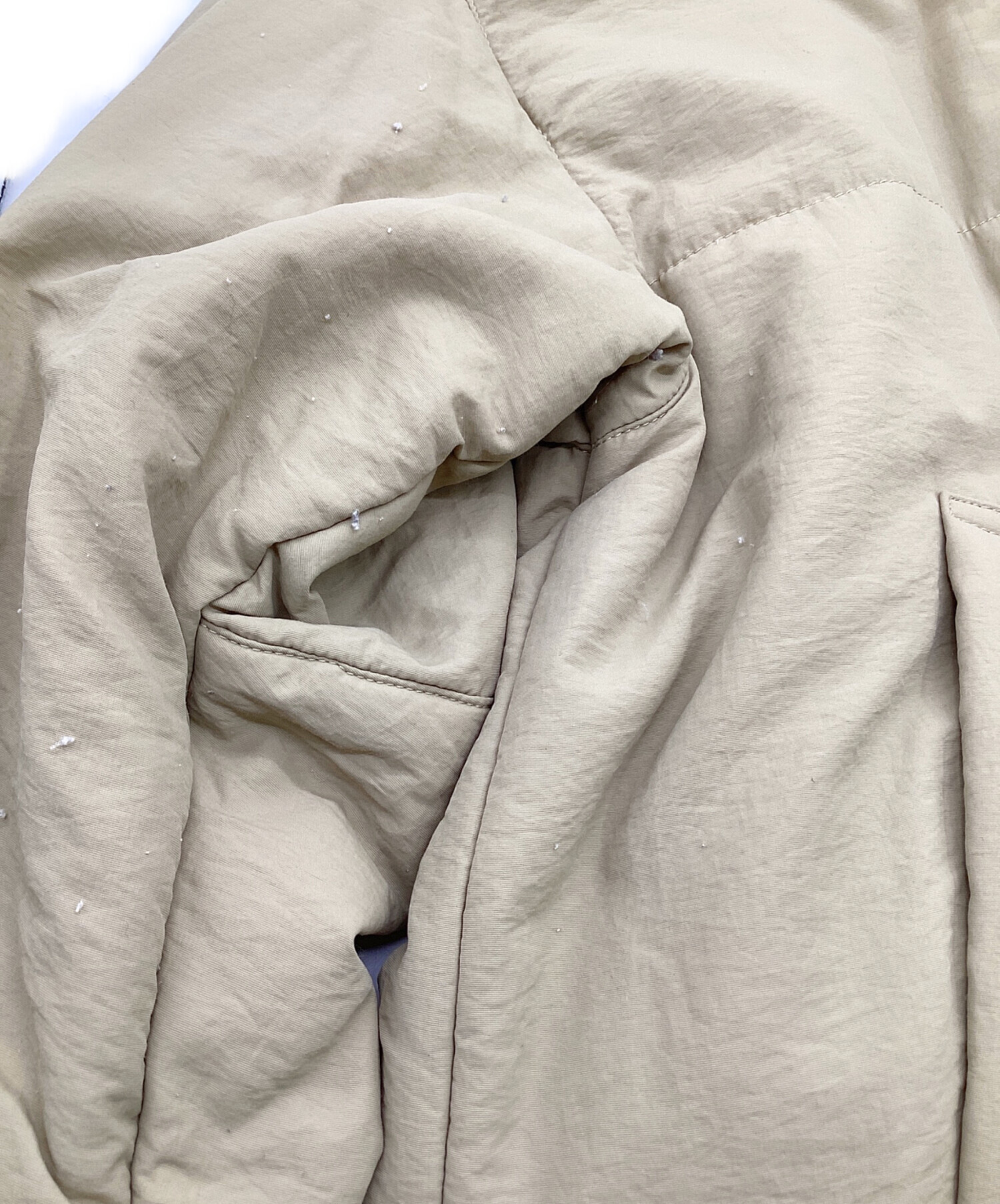 • EN NEUME(エン ノイム)EN NEUME (エン ノイム) 2Way Formed Padded Coat(2ウェイ フォームド パデッド コート) カーキ サイズ:Fの古着・服飾アイテム 袖に毛玉、袖口周りに汚れあり