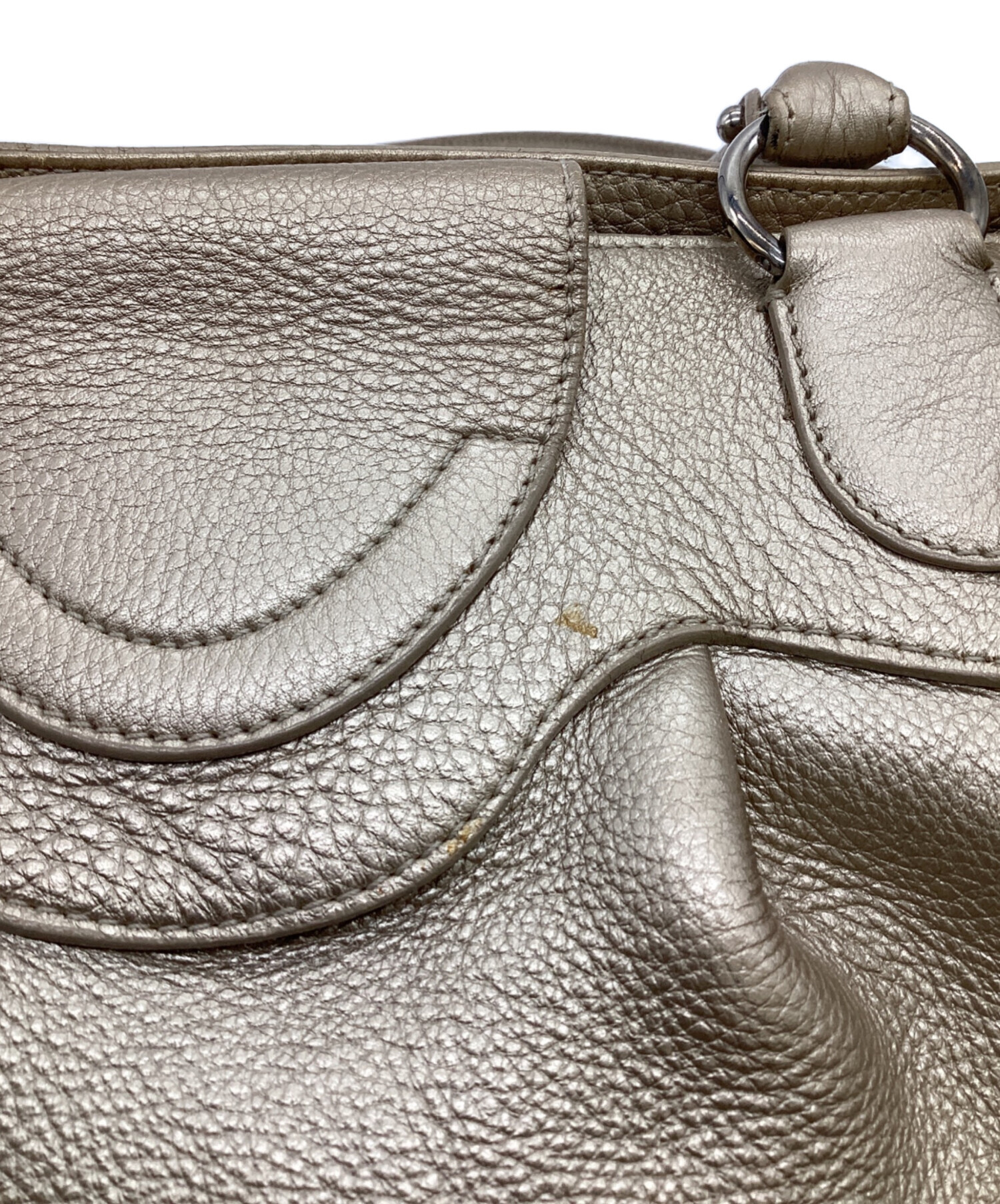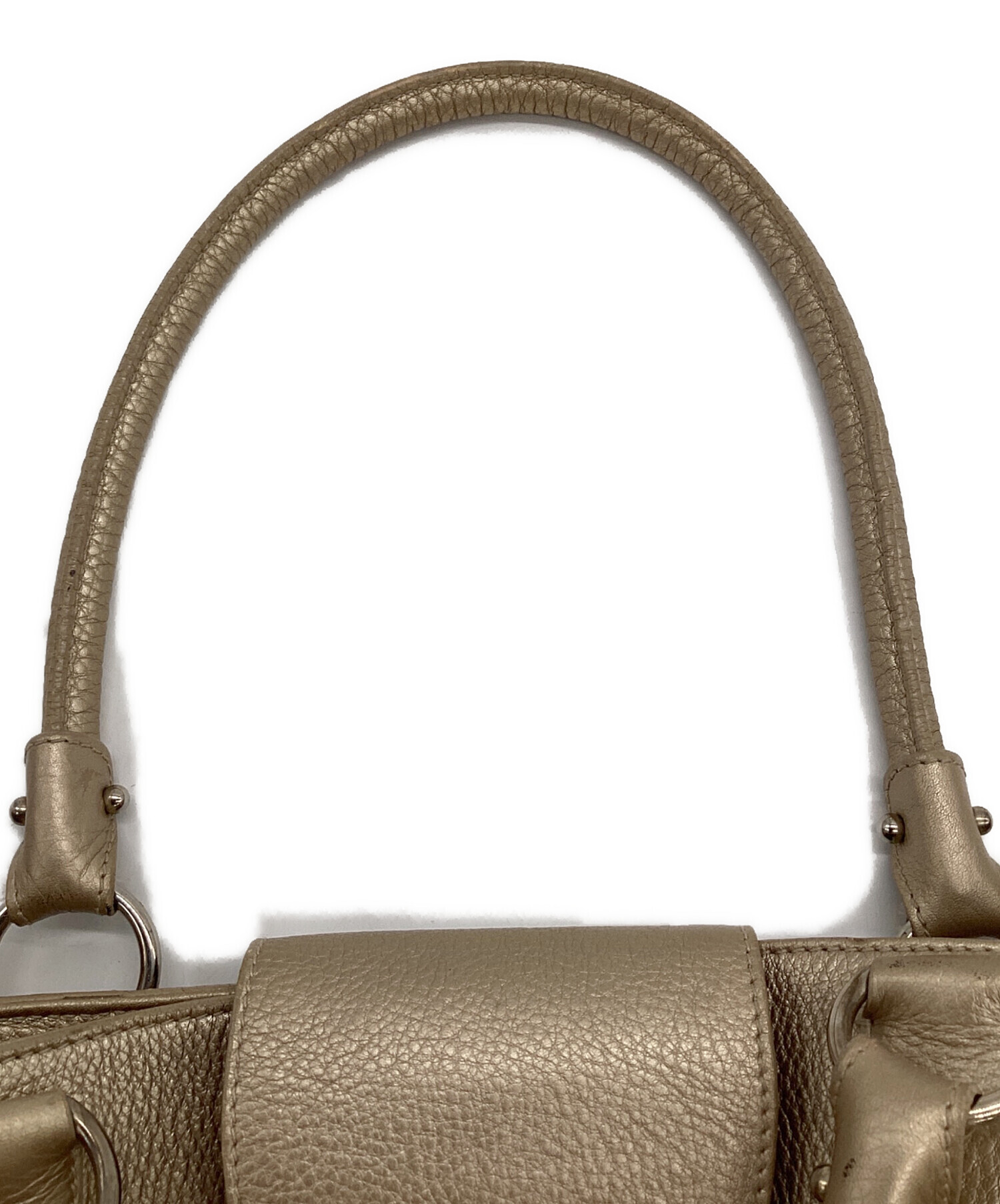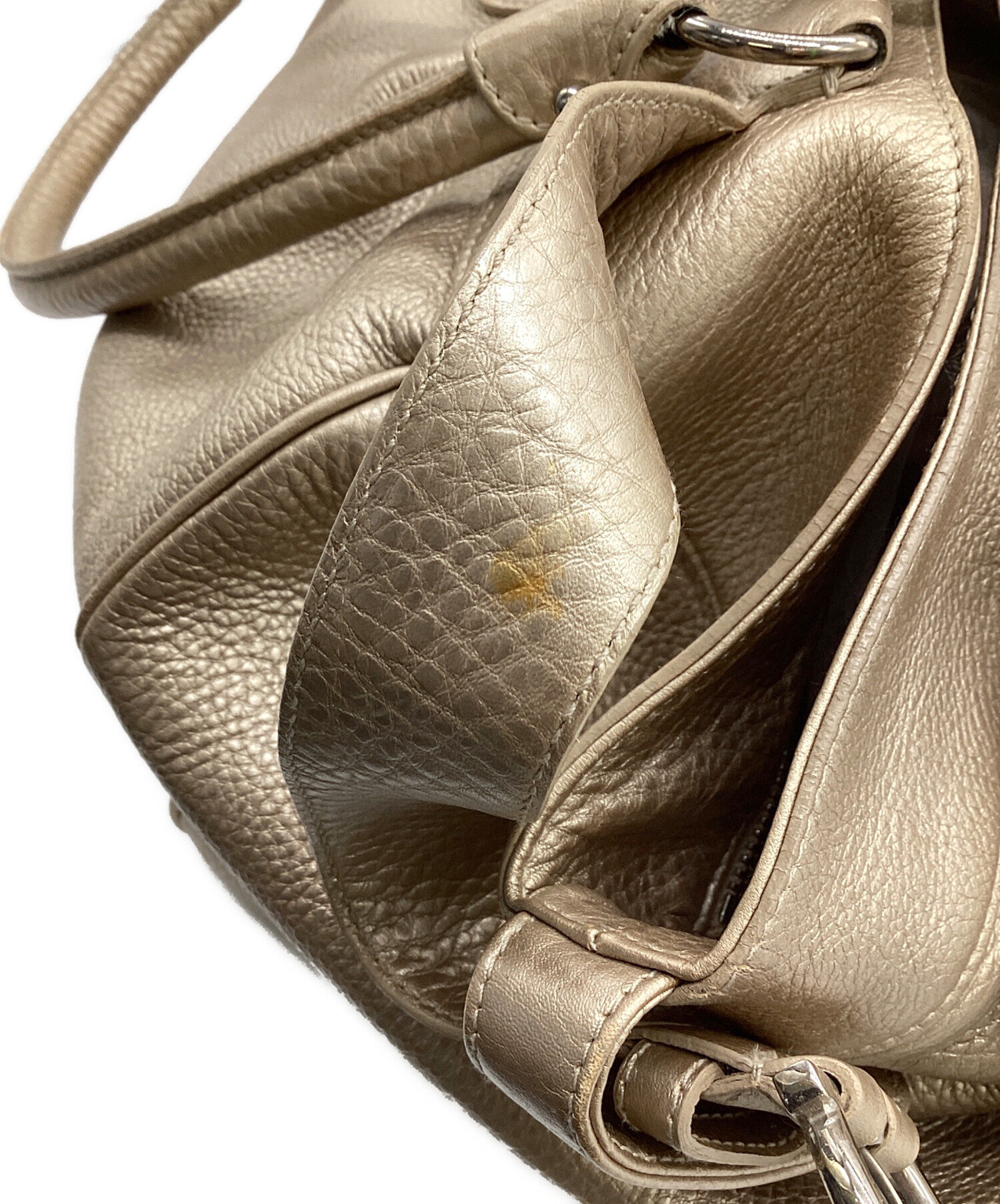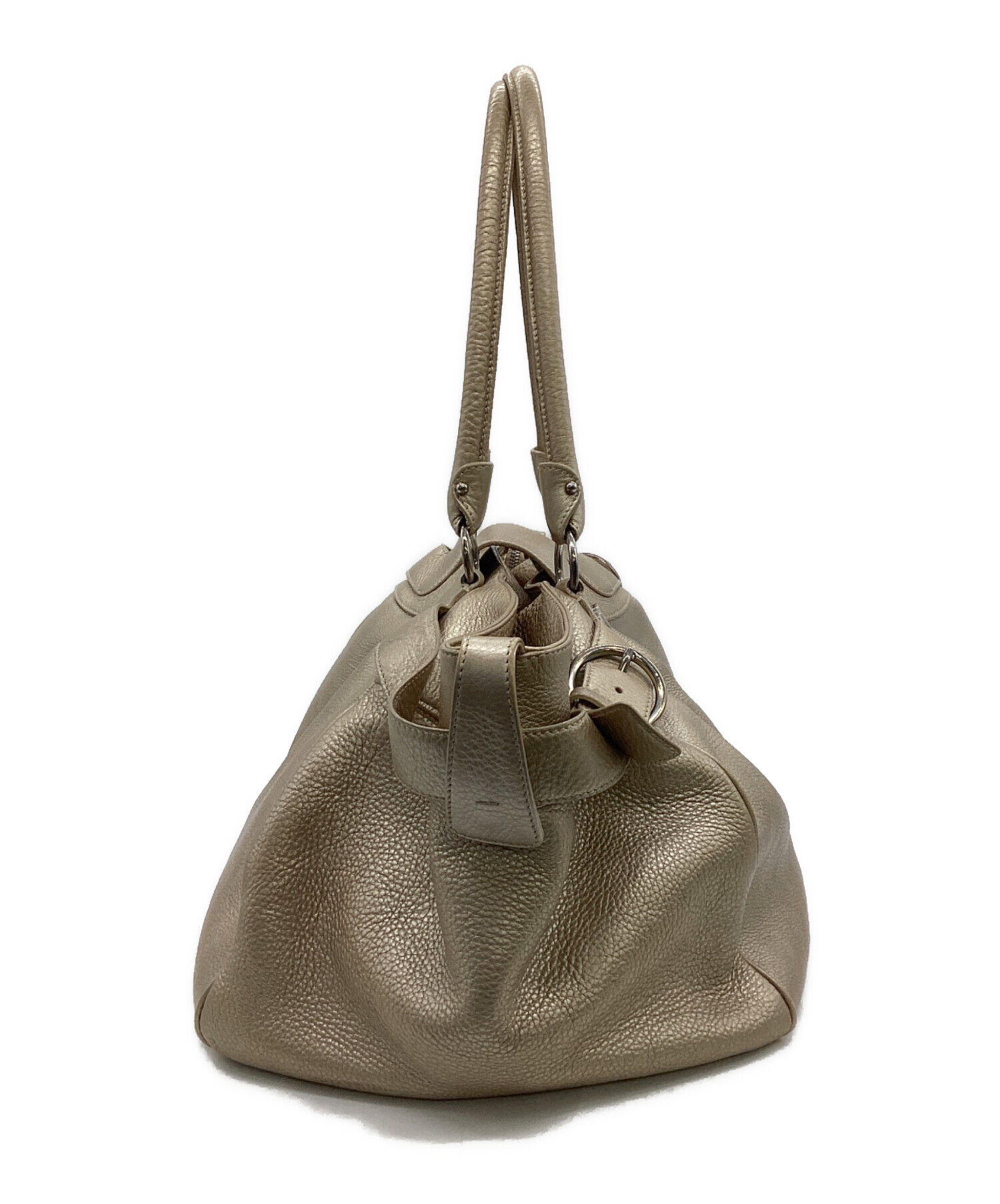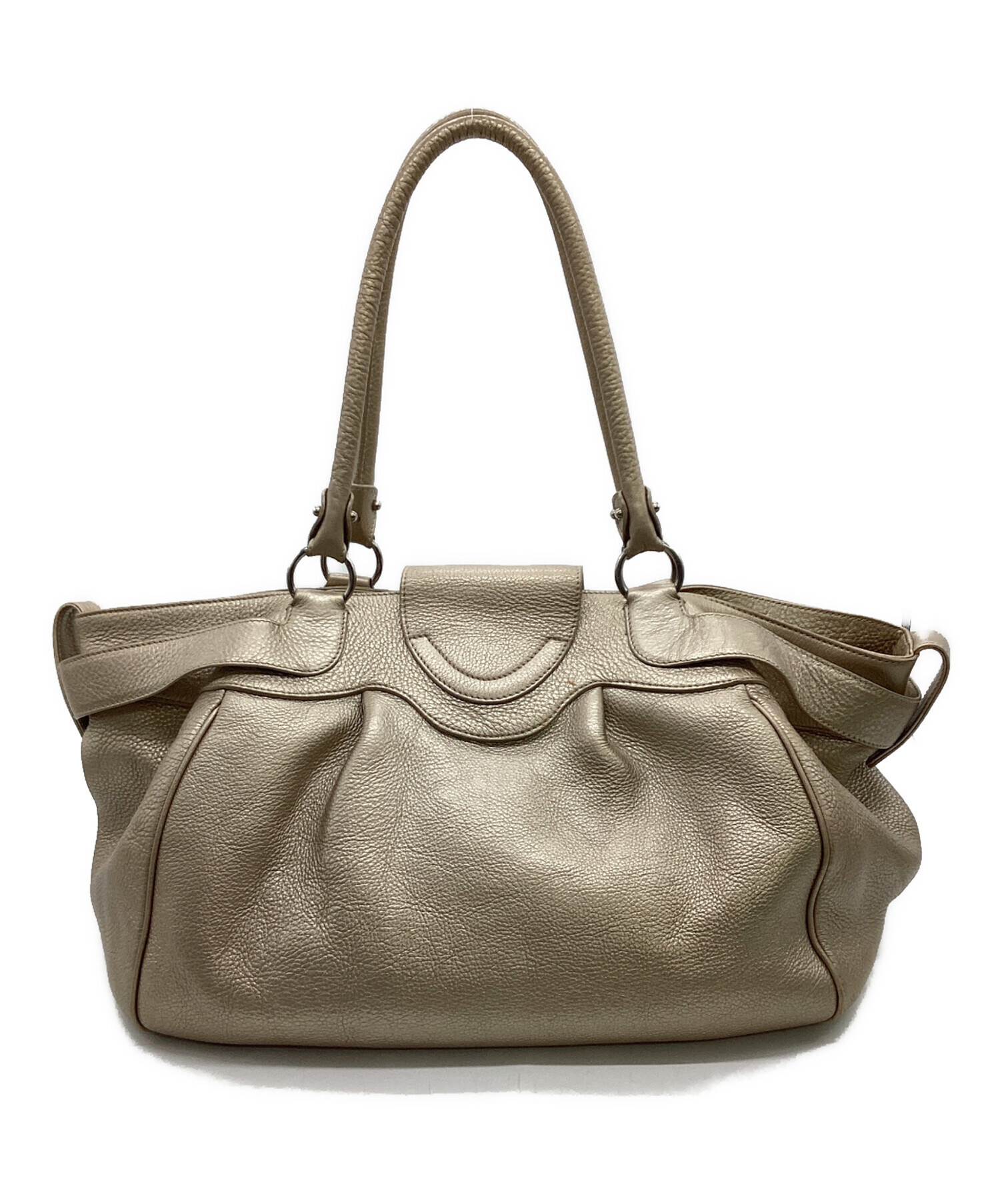 | スタッフコメント | 柔らかな本革に施されたゴールド色が特徴的です。幅広のマチで収納力あり、肩掛け出来る長さのハンドルなど実用性も備えたお品物です。 |