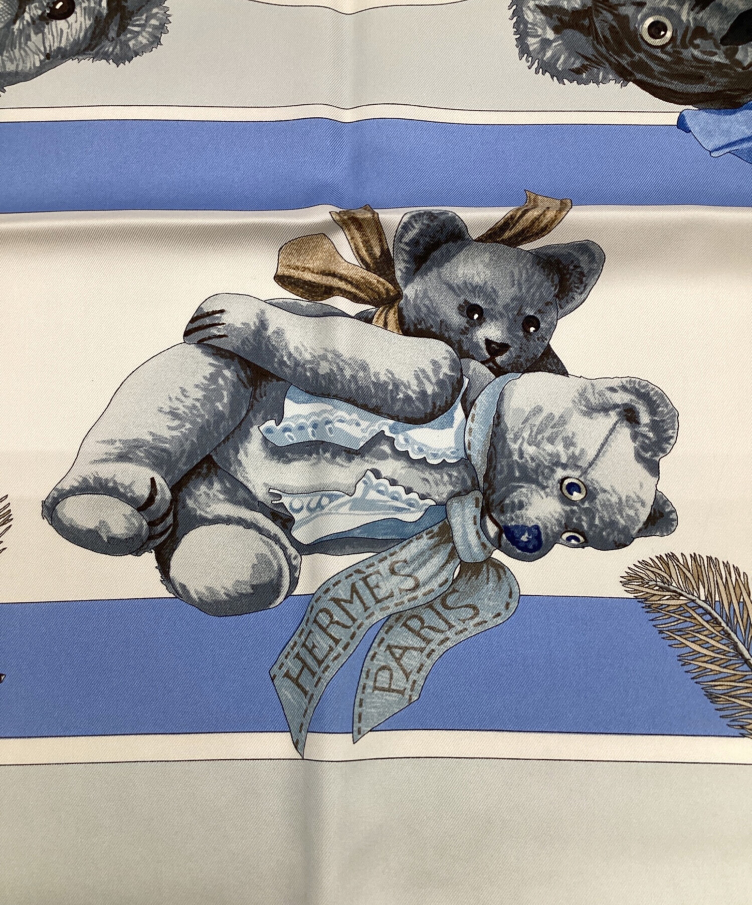 | スタッフコメント | 淡い色合いで描かれたいくつもの「ベア」たち、時折見せる意思を持ったまなざしが印象的です。ファッションアイテムとしてだけでなく1枚の「絵」としてもお楽しみいただけるお品物です。 |
