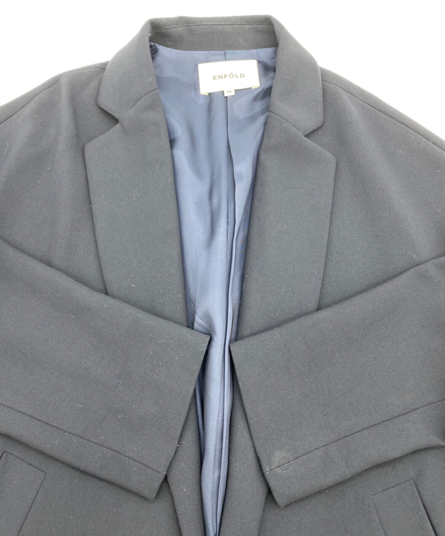 • ENFOLD(エンフォルド)ENFOLD (エンフォルド) チェスターコート ネイビー サイズ:38の古着・服飾アイテム 袖口裏に薄汚れあり