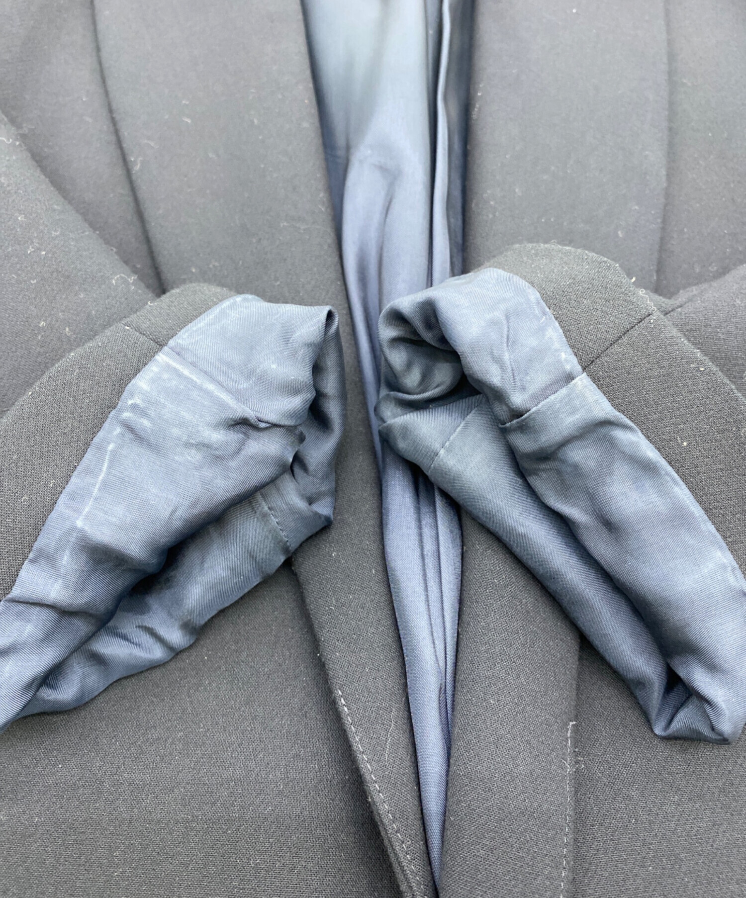 ※写真の通り内側袖口に薄い汚れがございます。またコート表面に縞模様のような跡がございますのでご確認のほどお願いいたします。