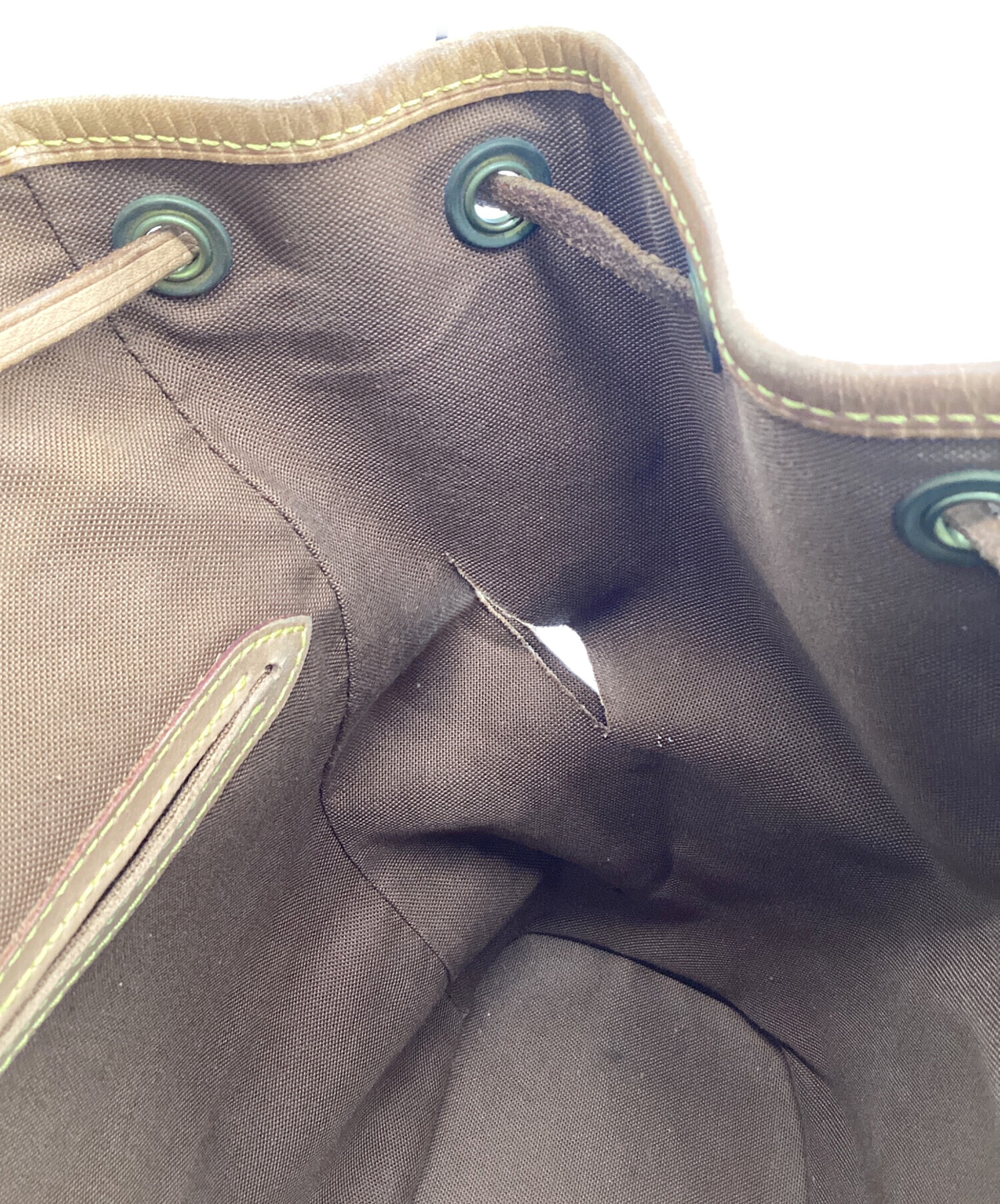 | スタッフコメント | コンパクトなサイズに細身のストラップが特徴的なミニリュックです。巾着風の開閉、しっかりと成型された底周り、お手入れしやすいコーテッドキャンバスの実用性も備えたお品物です。 シリアル№SP0999(1999年フランス製) |