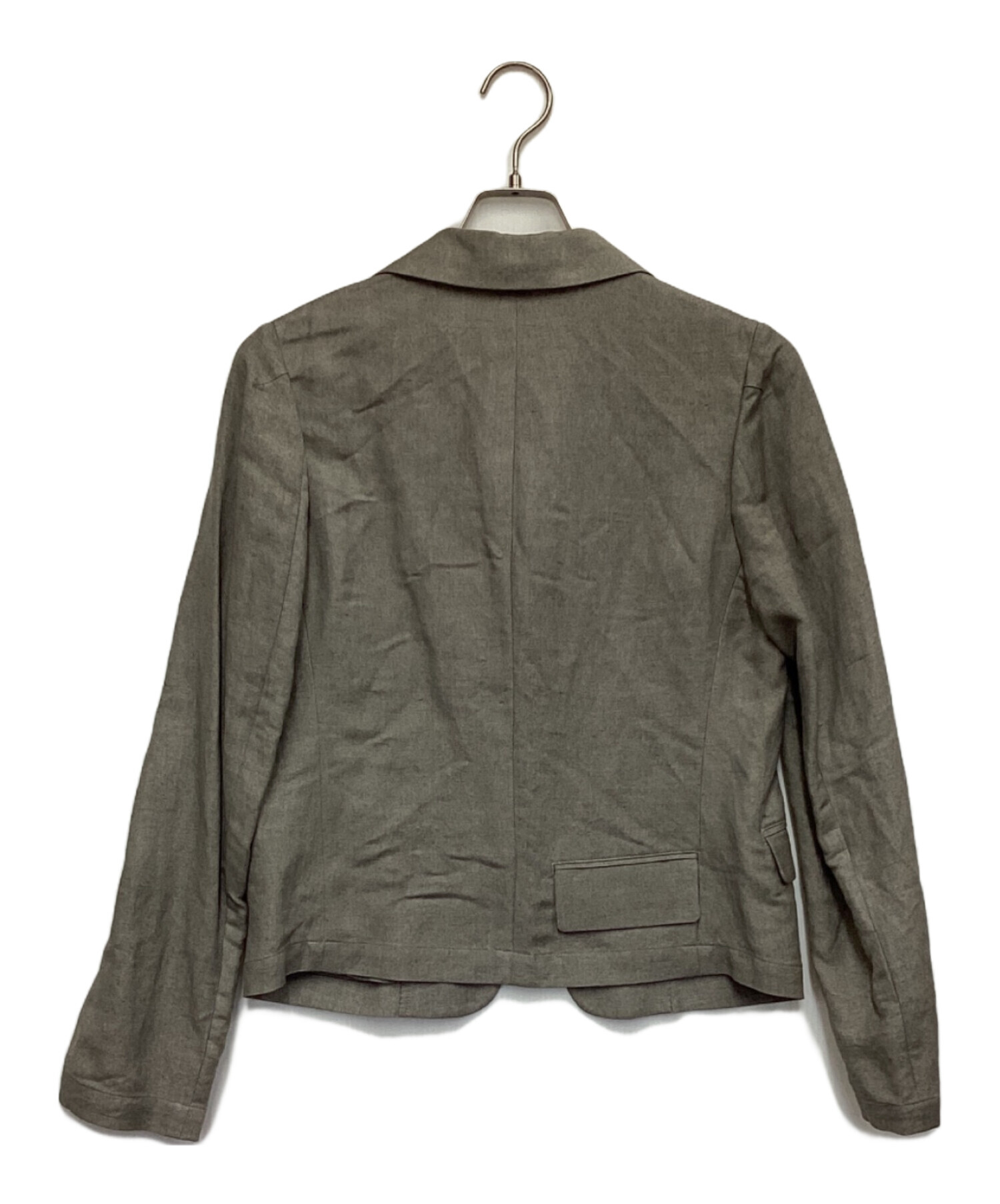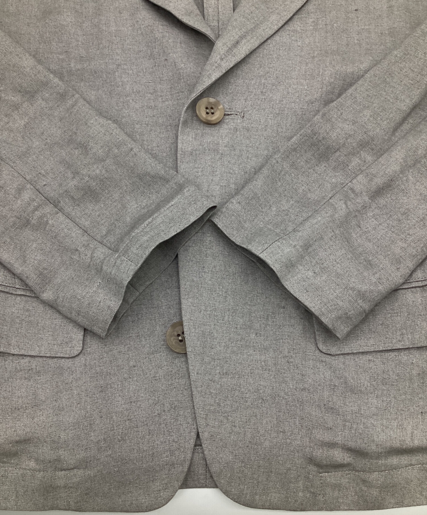 | スタッフコメント | ナチュラル感あるリネン素材。短丈三つ釦(2つはダミー)、背面のフラップポケットが特徴的です。裏地無しの1枚仕立て、シャツ感覚で羽織れるお品物です。 |