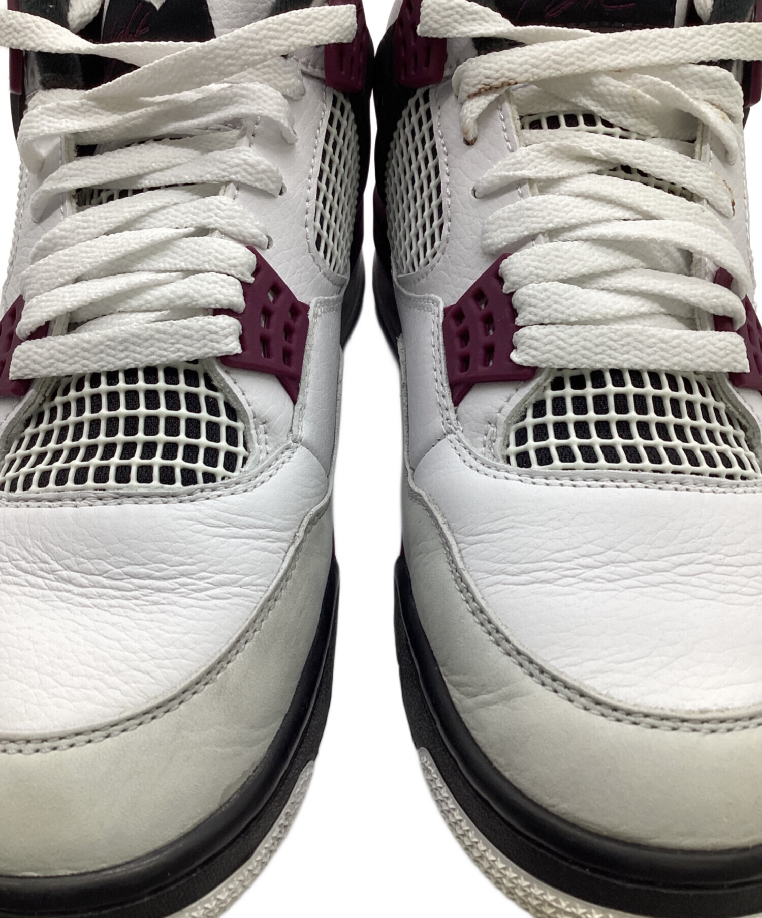 • NIKE(ナイキ)NIKE (ナイキ) Paris Saint-Germain (パリサンジェルマン) AIR JORDAN 4 RETRO PSG(エア ジョーダン 4 レトロ パリサンジェルマン) ホワイト サイズ:27cmの古着・服飾アイテム つま先付近に擦れ・汚れ、レースに汚れあり