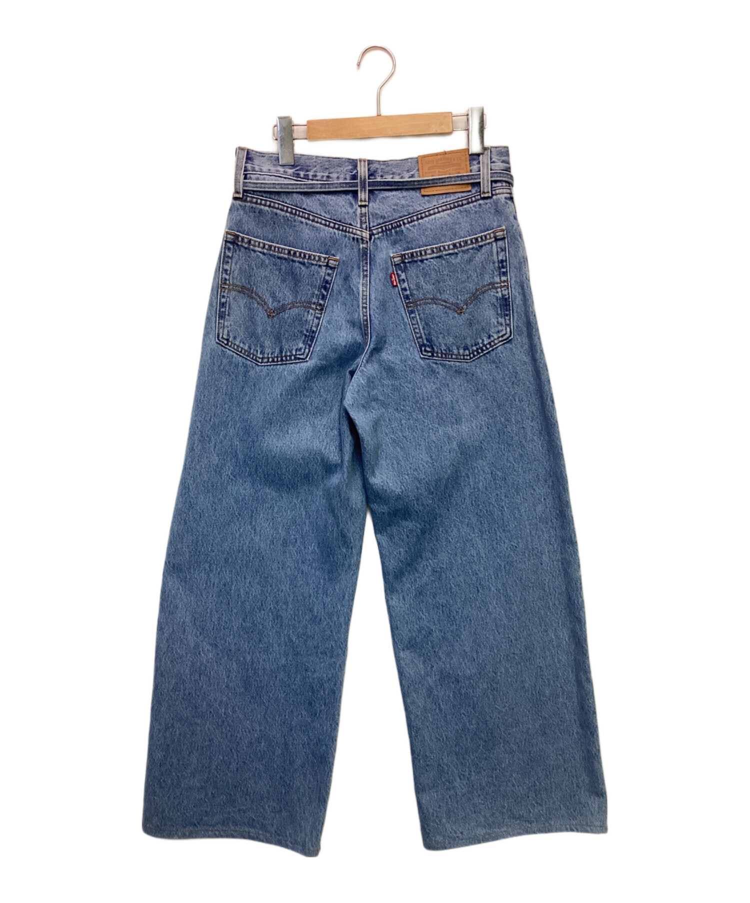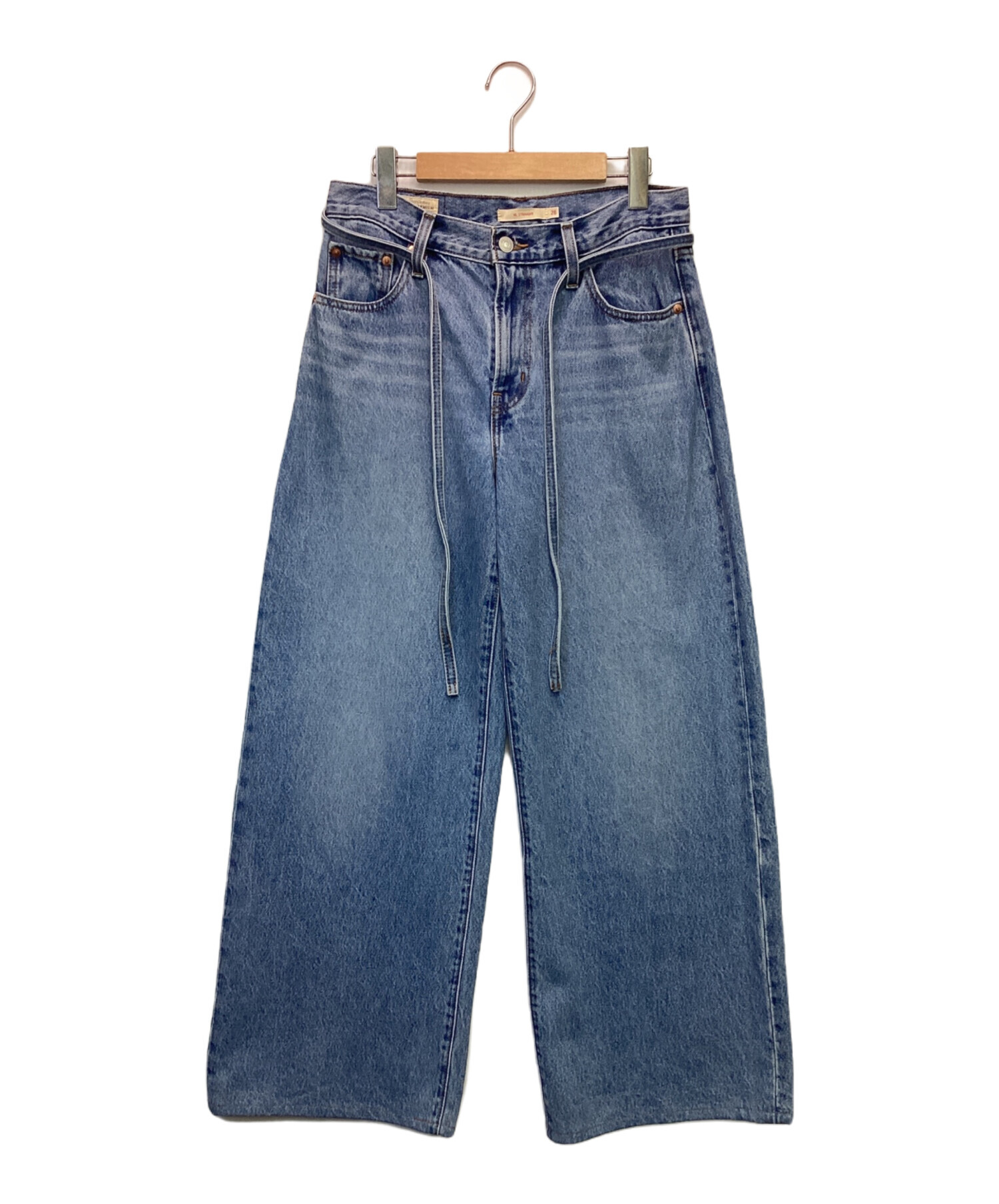 スタッフコメント ワイドなストレートレッグが特徴的なバギースタイルです。幅広のベルトにも対応するループ、同素材の紐がアクセント。王道の5ポケット、アーキュエイトステッチなどらしさも残るお品物です。