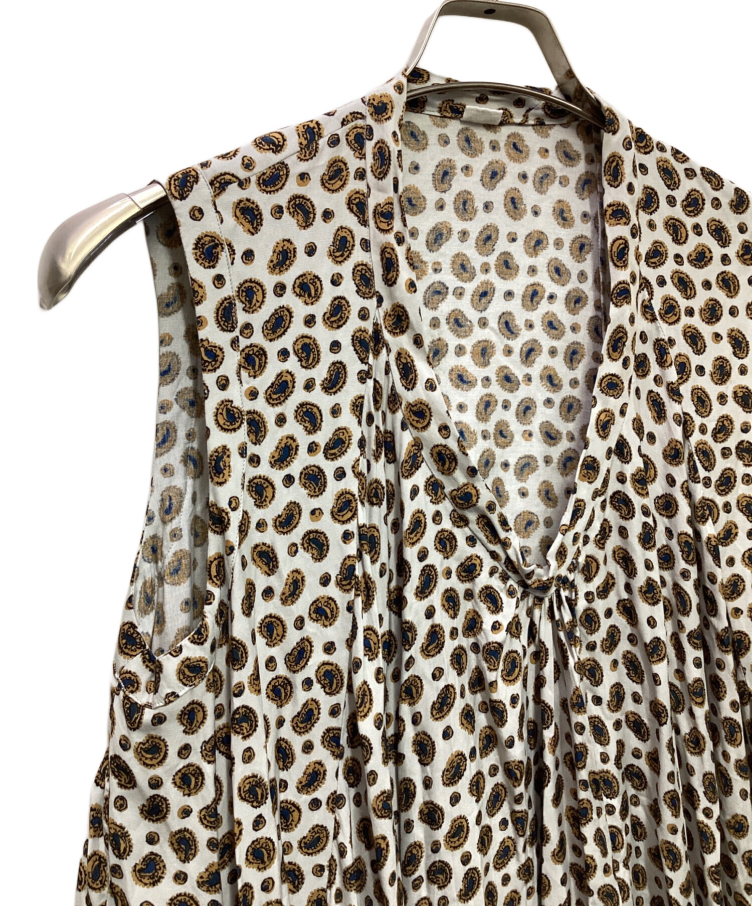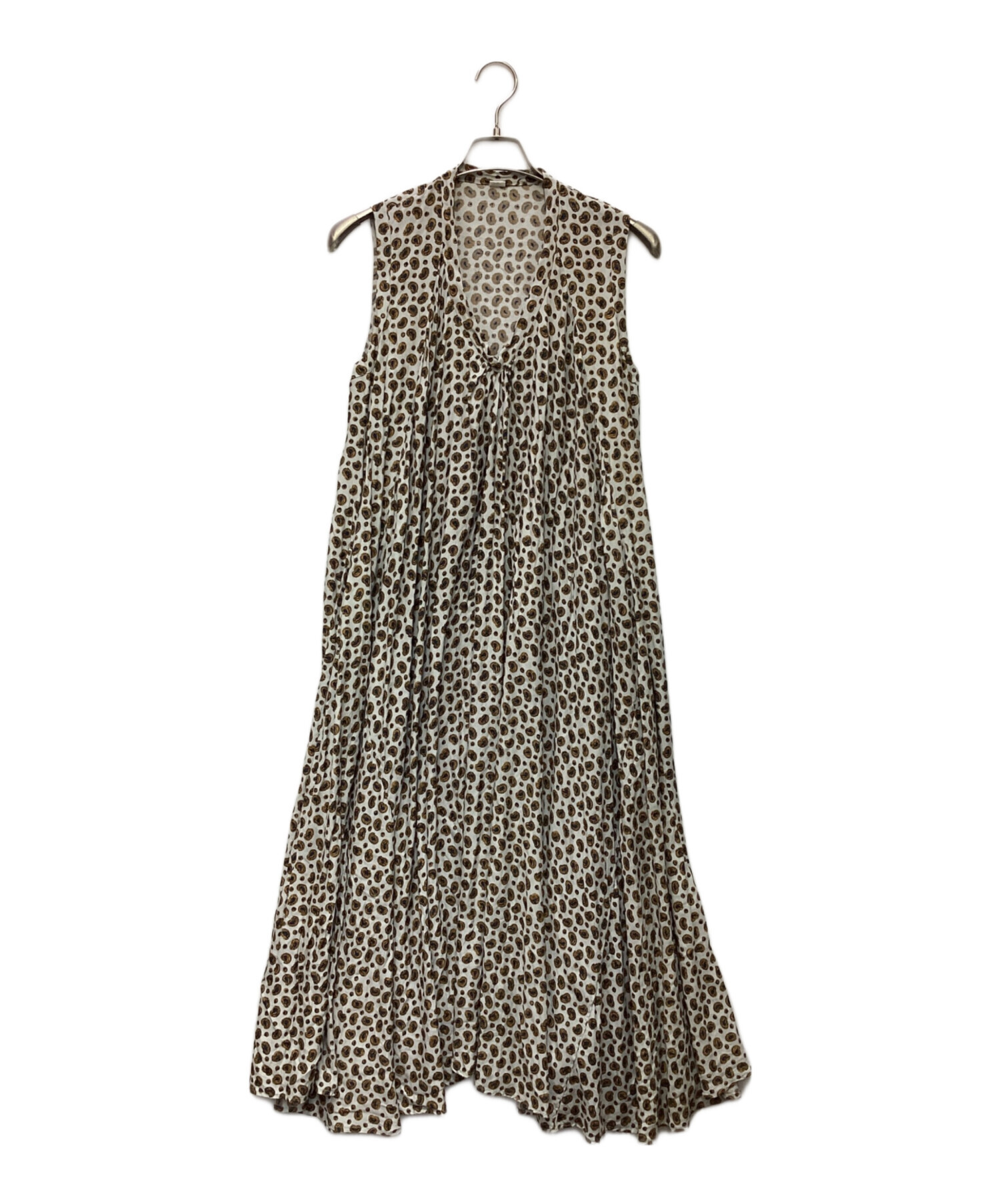 • 45R(フォーティファイブ・アール)45R (フォーティファイブ・アール) ノースリーブワンピース ブラウン×ホワイトの古着・服飾アイテム 前身頃に小汚れ箇所あり