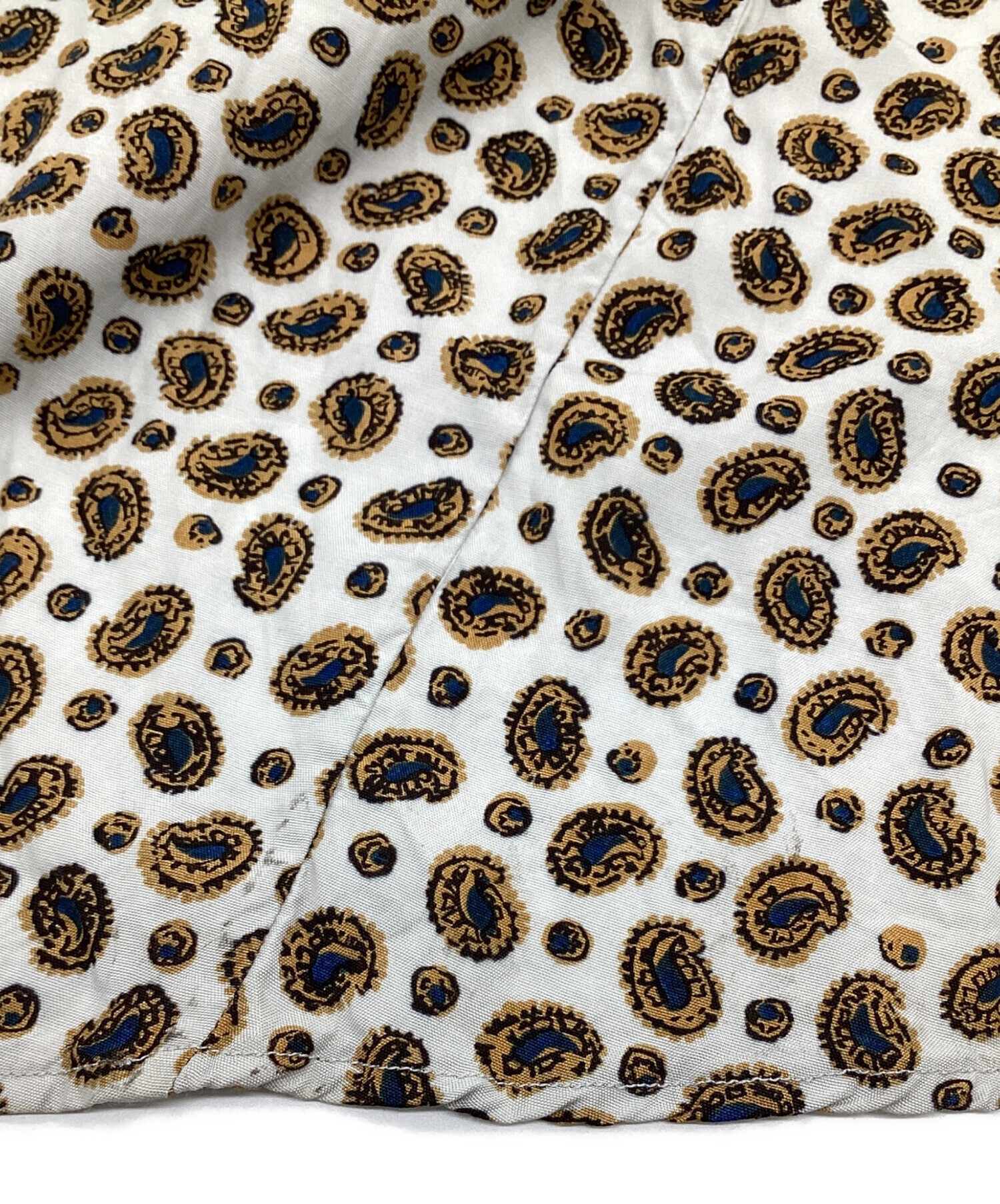 スタッフコメント ペイズリー調の総柄が個性的です。深めのVに大胆なAライン、変化のある裾のラインが特徴的なお品物です。