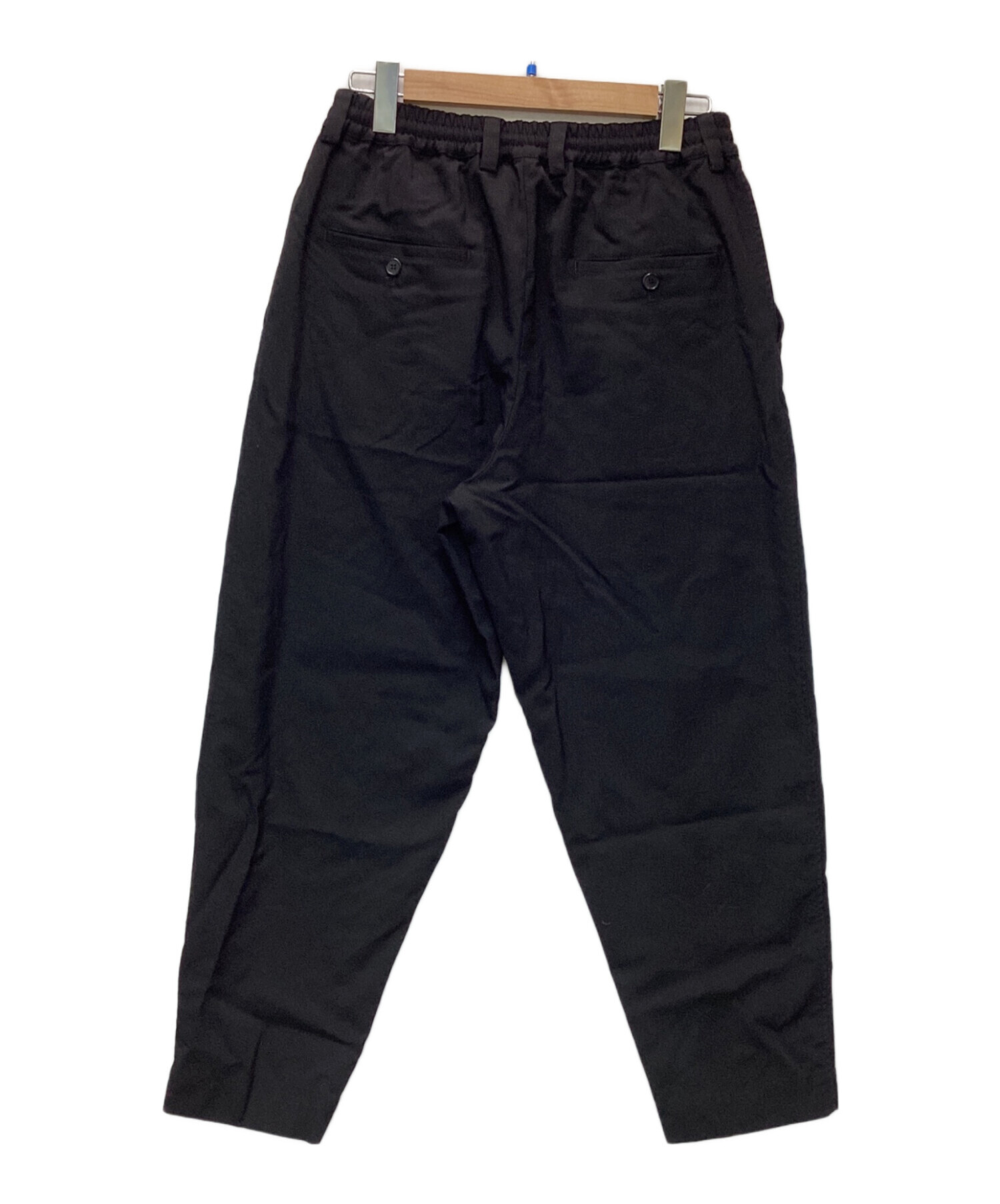 | スタッフコメント | 1タックによるワイドな腰回りから大胆に絞られた裾が特徴的です。ウールならではのサラッとした質感が、ゆとりあるシルエットを生かすお品物です。 |