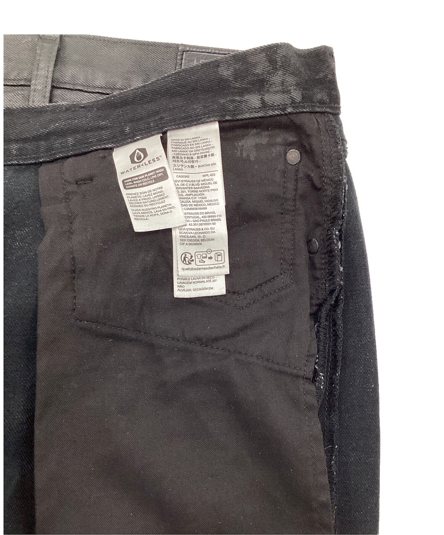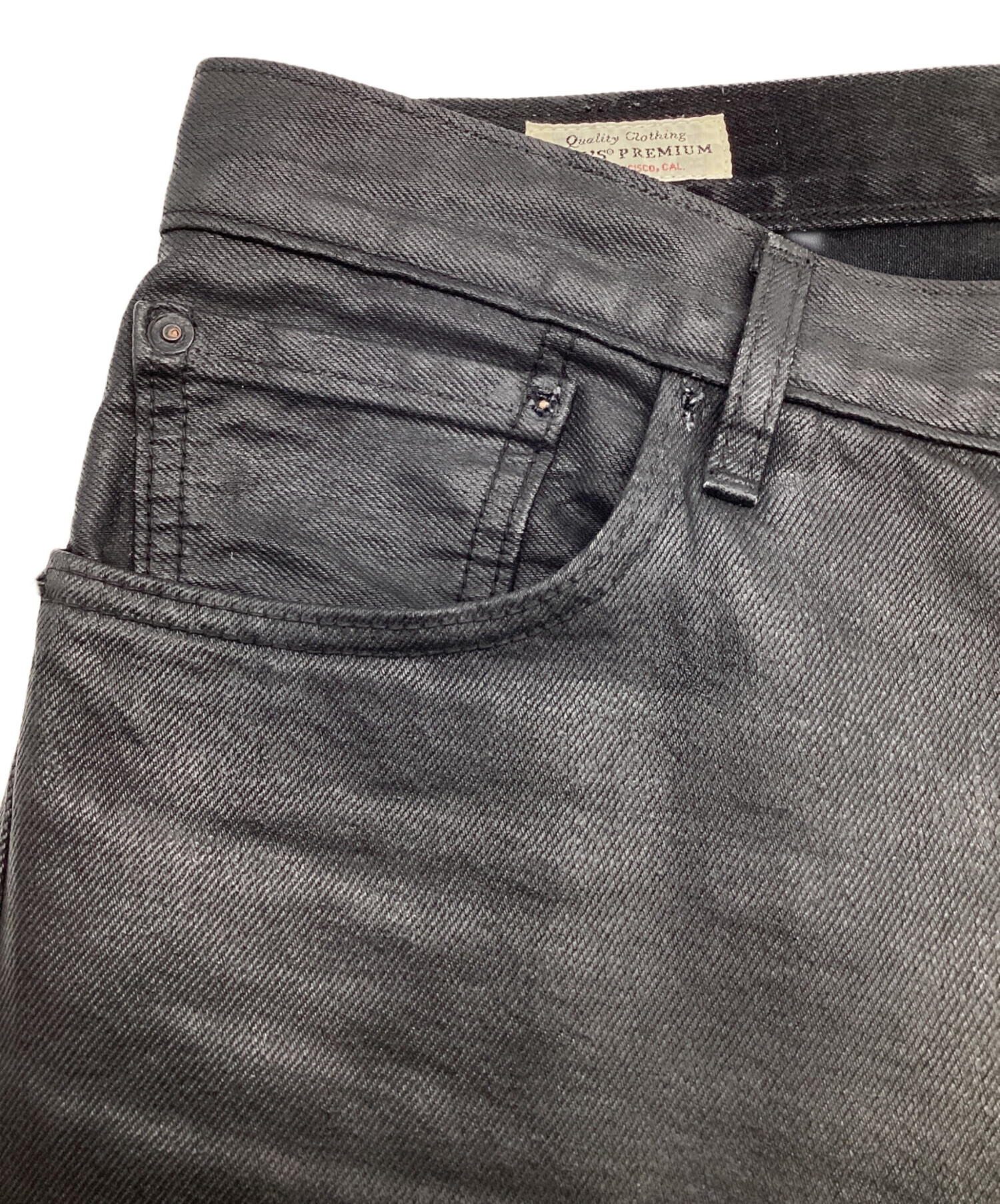 • LEVI'S(リーバイス)LEVI'S (リーバイス) 501 コーティング 後染ブラック デニムパンツ ブラック サイズ:W32の古着・服飾アイテム コーテイング移り、ポケットに毛羽立ちあり