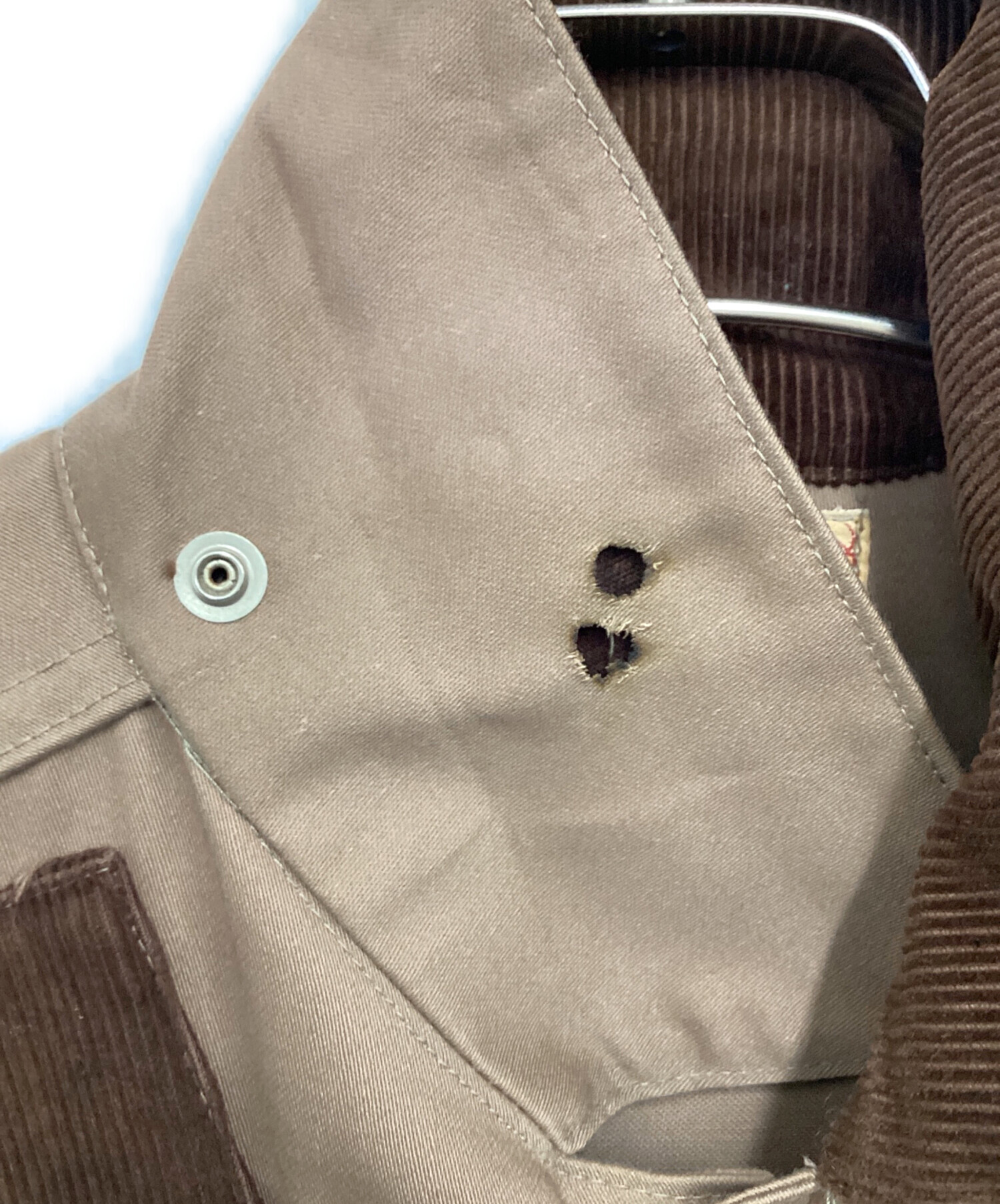 | 状態 | 背面ポケット等パーツ欠品、衿に焦げ跡の穴あき、肩にホツレによる穴あき、全体的に汚れ・シミ・擦れ・毛羽立ち等がございます(画像にてご確認下さい)。 こちらの商品は中古品の為、使用に伴いますキズ、汚れが各所に見受けられます。店頭にて展示販売を行っている為、記載に無い細かなキズ、汚れが見受けられる場合がございます。 |