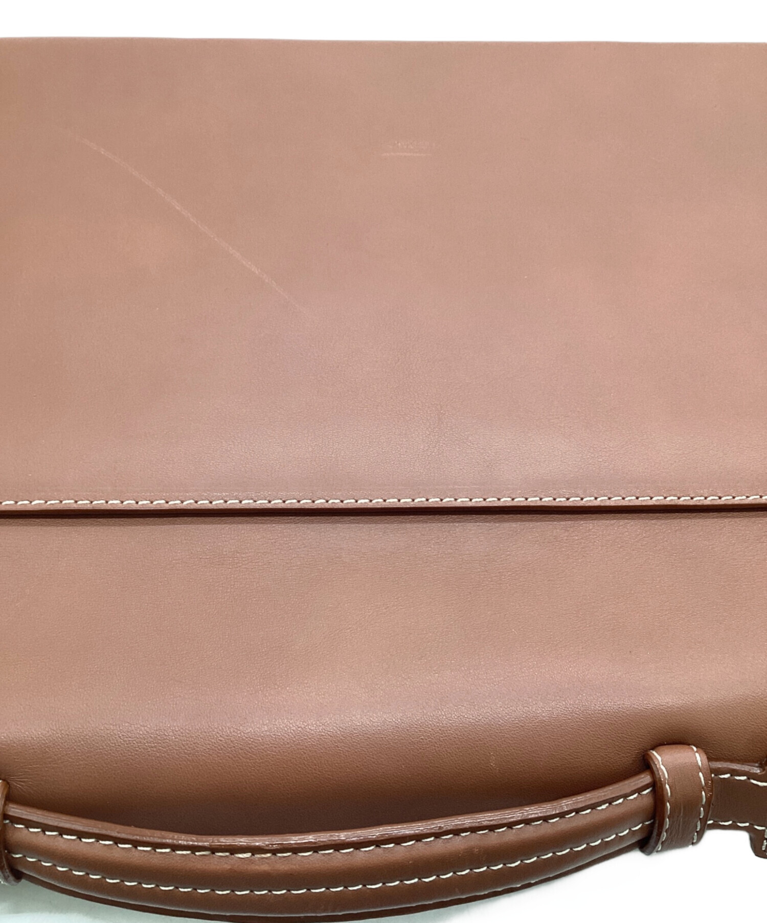 | スタッフコメント | ステッチで仕上げられた大きな皮革パーツ、経年変化の現れやすいライトブラウン色です。2つのメイン収納、ポケット、ペン入れ、カード入れなど書類やビジネスツール向けの内装を備えたお品物です。 |