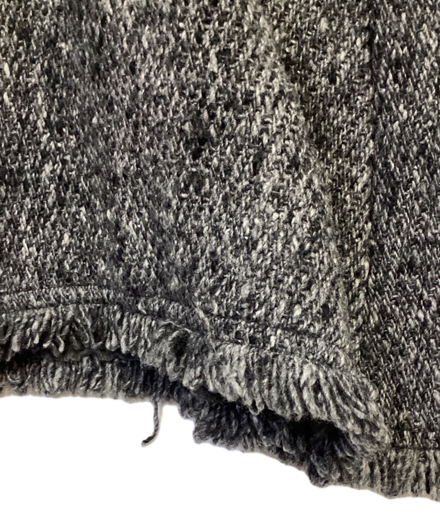 スタッフコメント 肩位置を定めないワイドなシルエット、フリンジ処理の衿・裾が特徴的なお品物です。