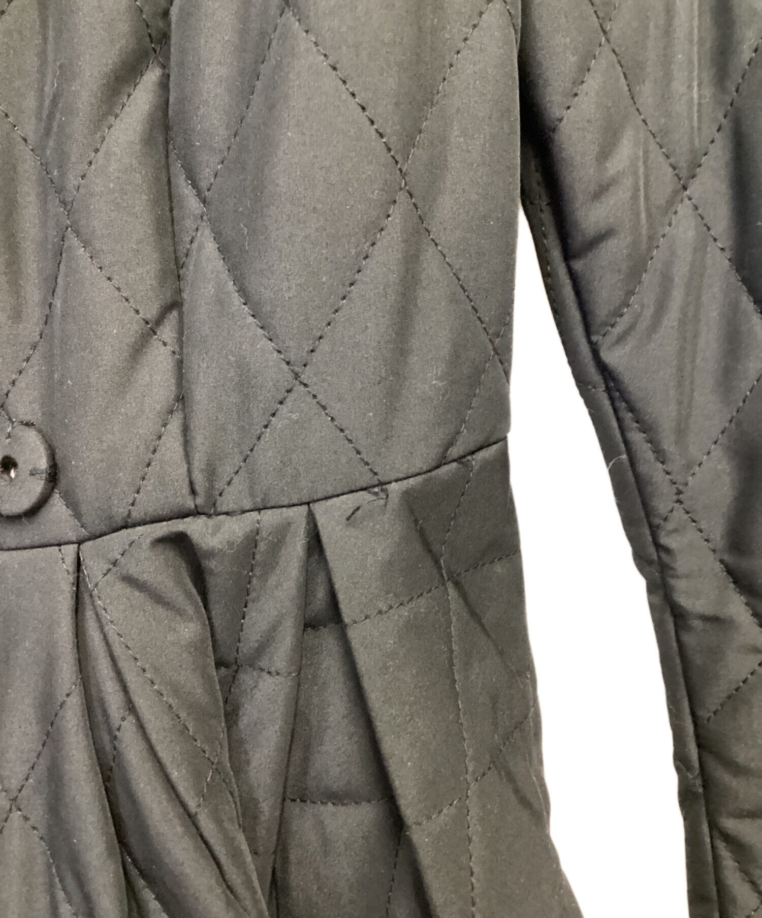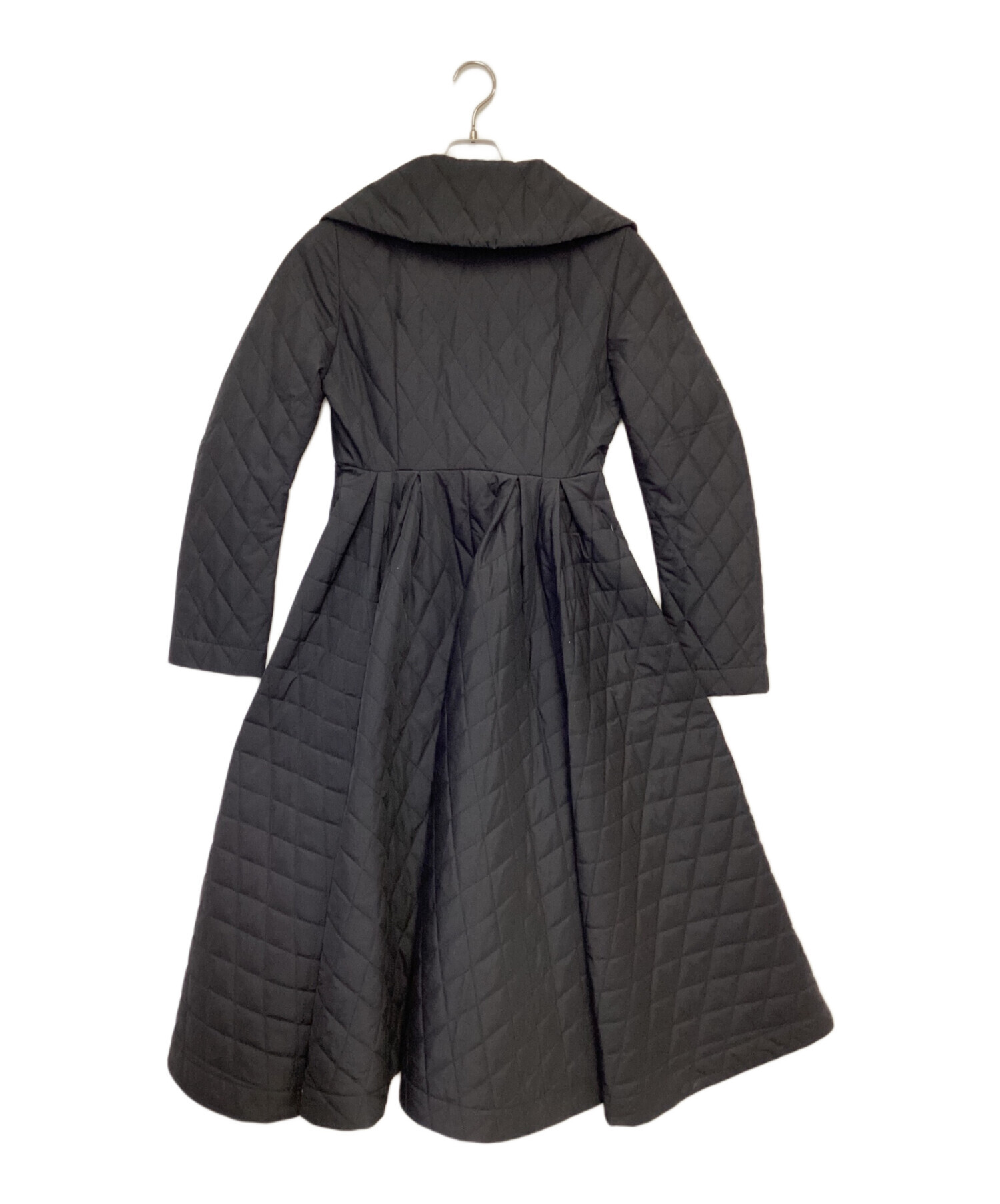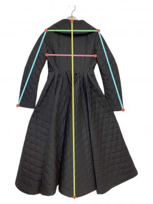 | スタッフコメント | 大きな衿からのシェイプ、大胆なフレアシルエットが存在感あります。マットな生地とキルティングでカジュアルさを残しつつもエレガントさが際立つお品物です。 |