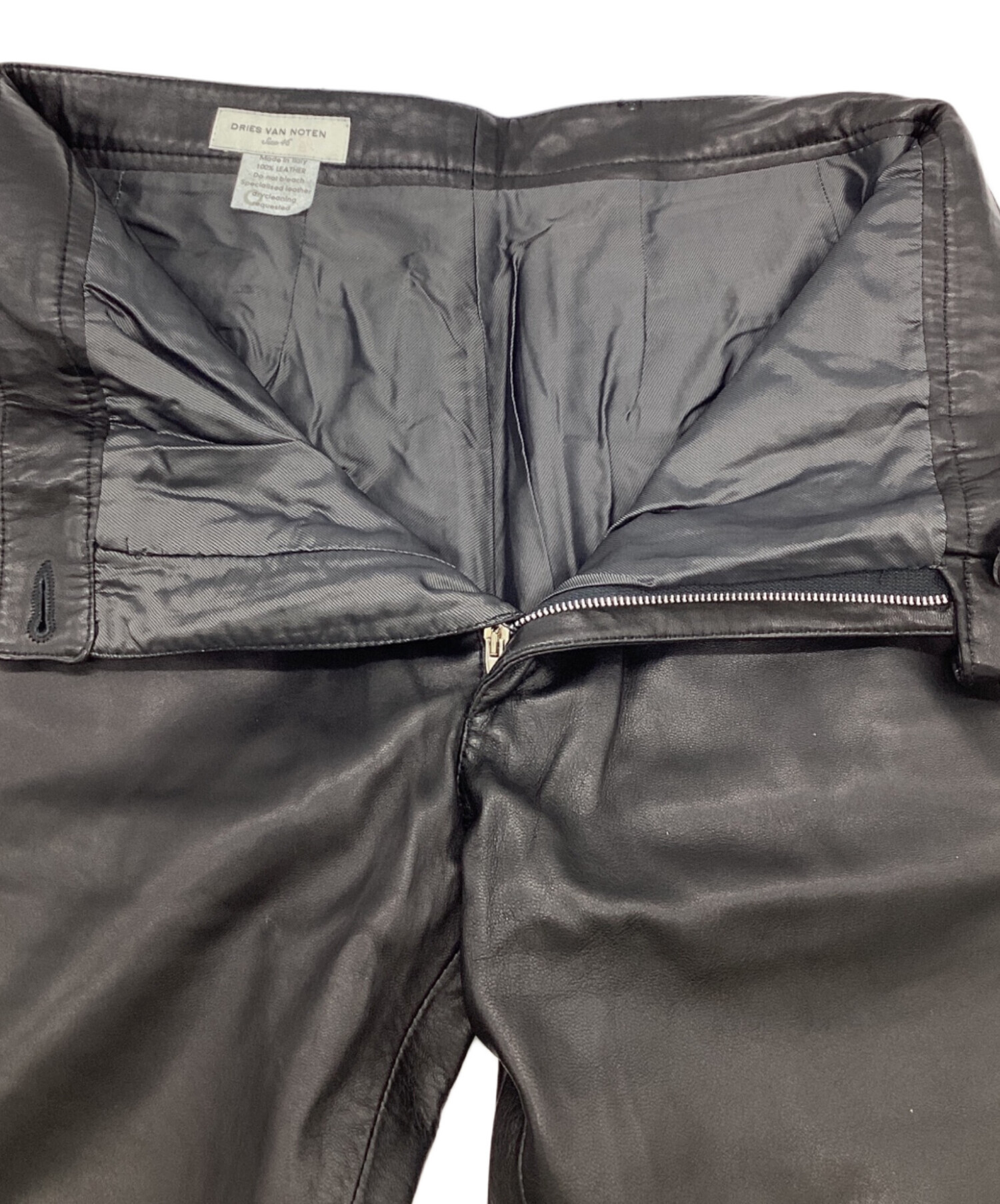 • DRIES VAN NOTEN(ドリスヴァンノッテン)DRIES VAN NOTEN (ドリスヴァンノッテン) レザーパンツ ブラック サイズ:46の古着・服飾アイテム 裏面(フロント)