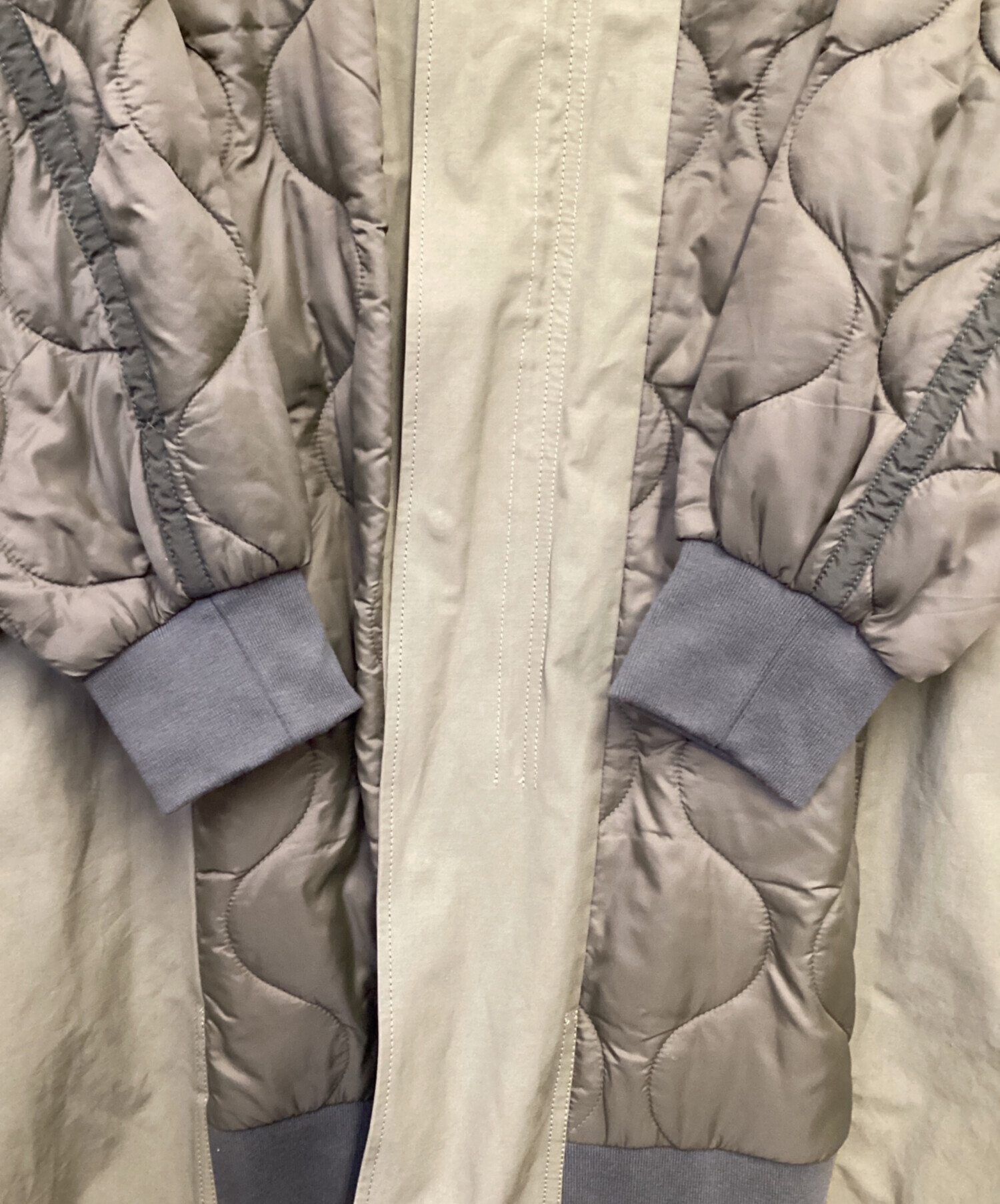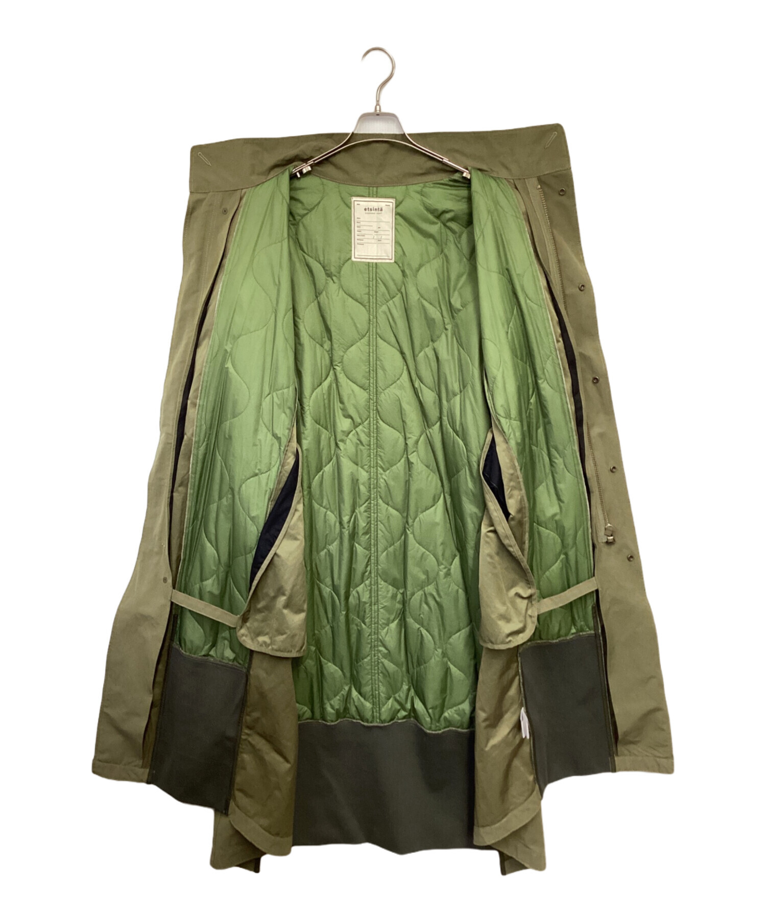| スタッフコメント | モッズコートのアウター・キルティングライナーをミックス、リメイク風の切替が特徴的、裾周りの極太リブが存在感あるお品物です。 |