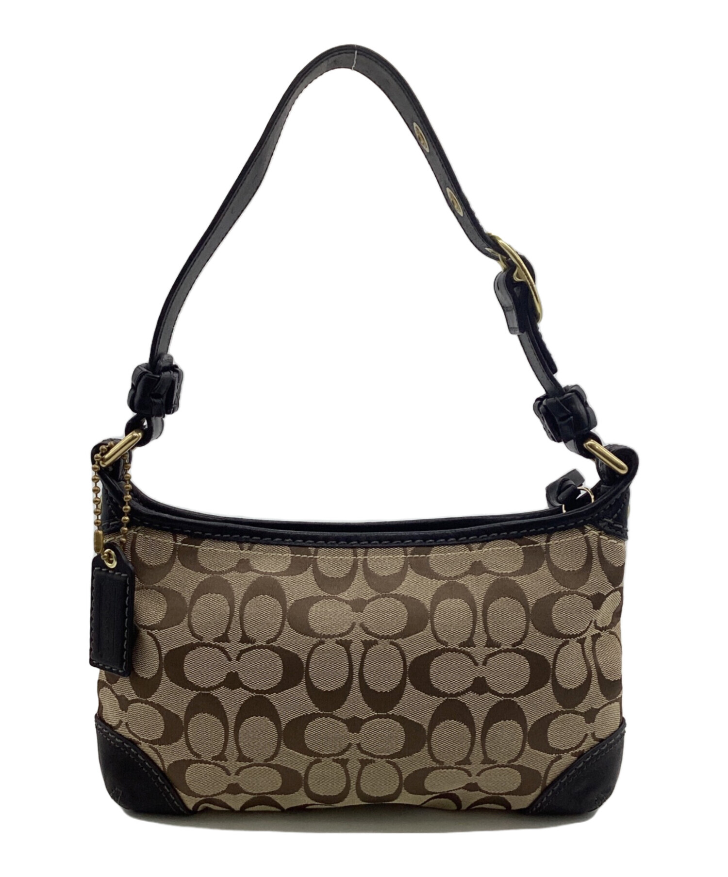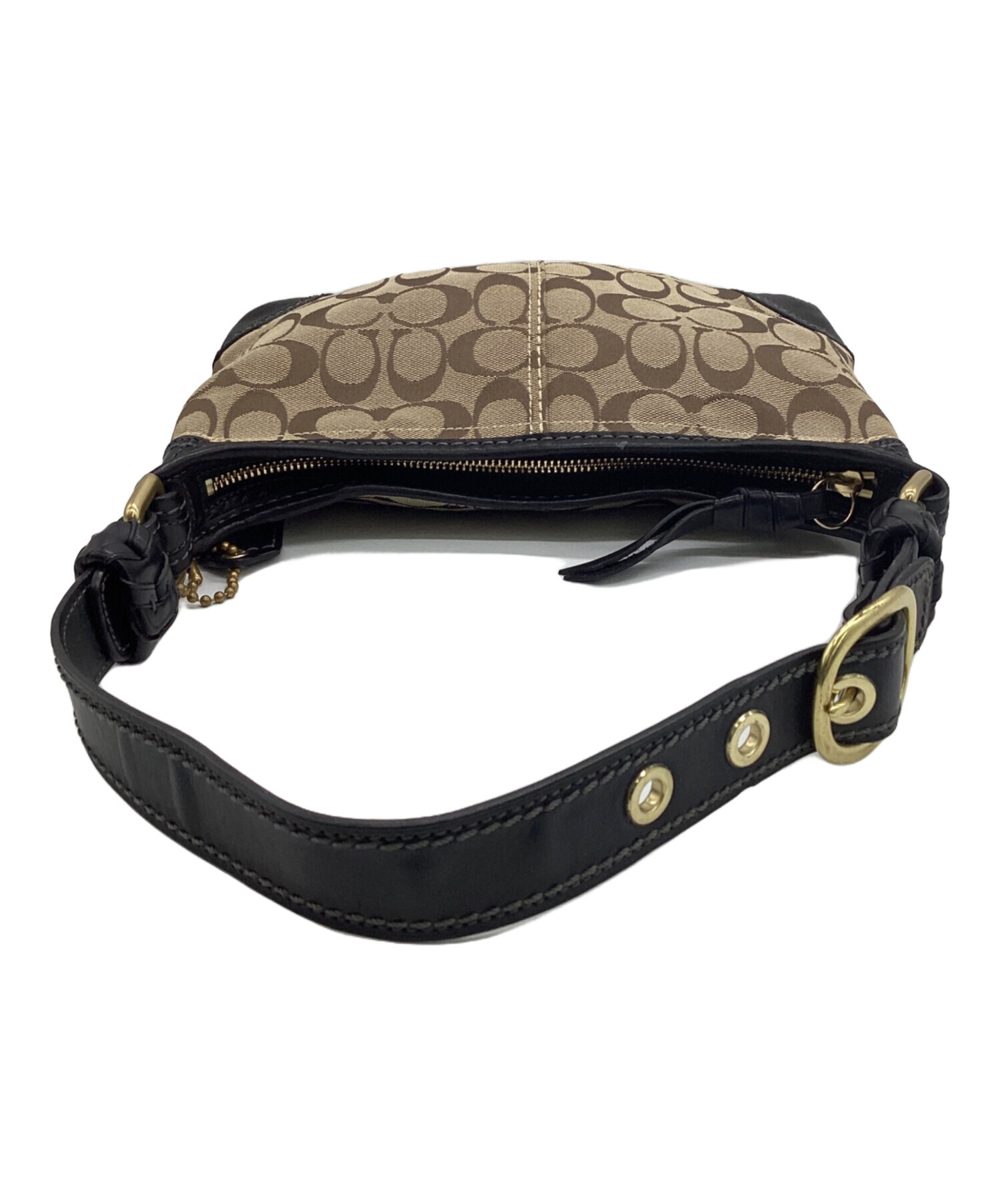 • COACH(コーチ)COACH (コーチ) シグネチャー ワンショルダーバッグ ベージュ×ブラックの古着・服飾アイテム ストラップに汚れ箇所あり