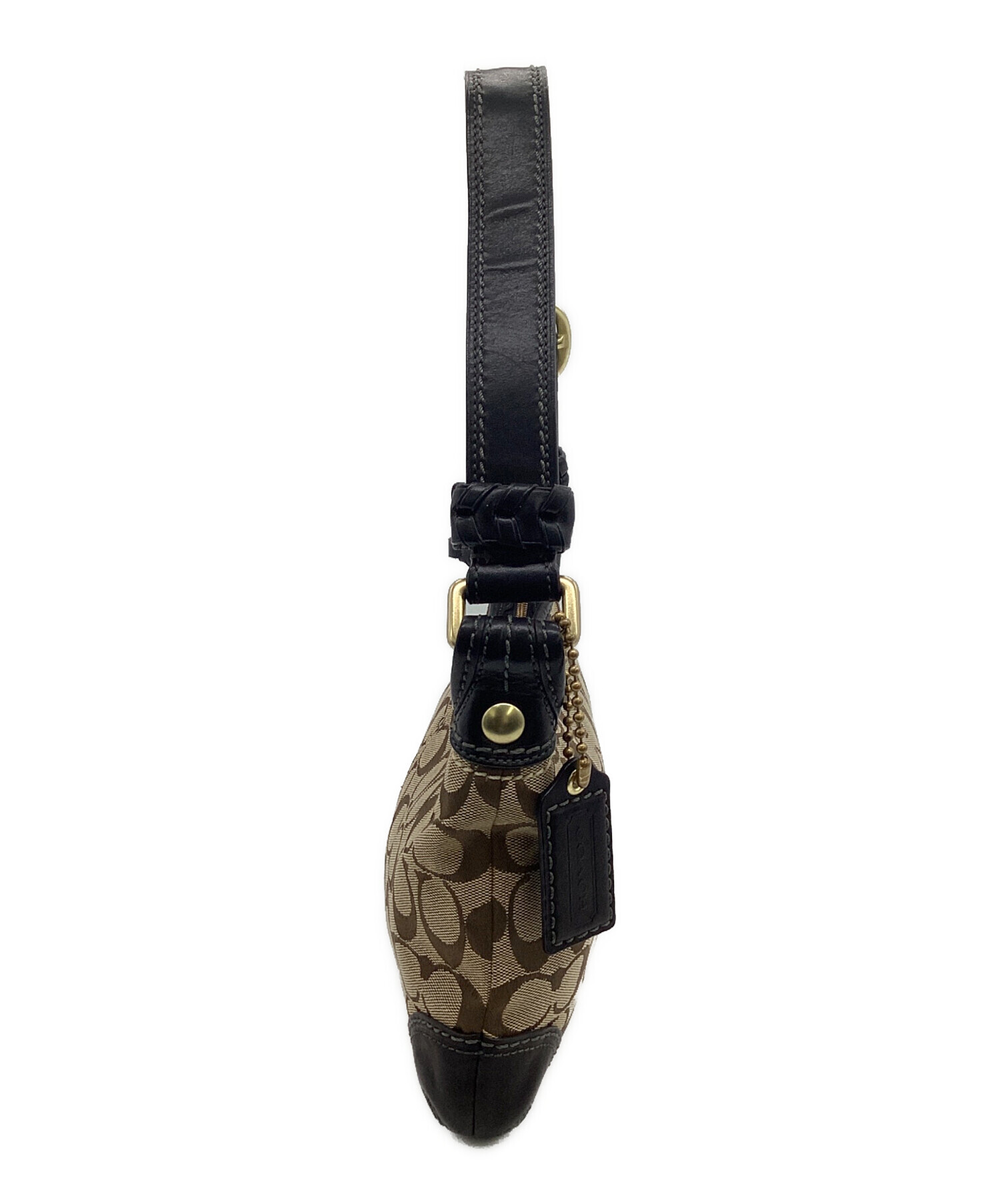 • COACH(コーチ)COACH (コーチ) シグネチャー ワンショルダーバッグ ベージュ×ブラックの古着・服飾アイテム 金具に擦れあり