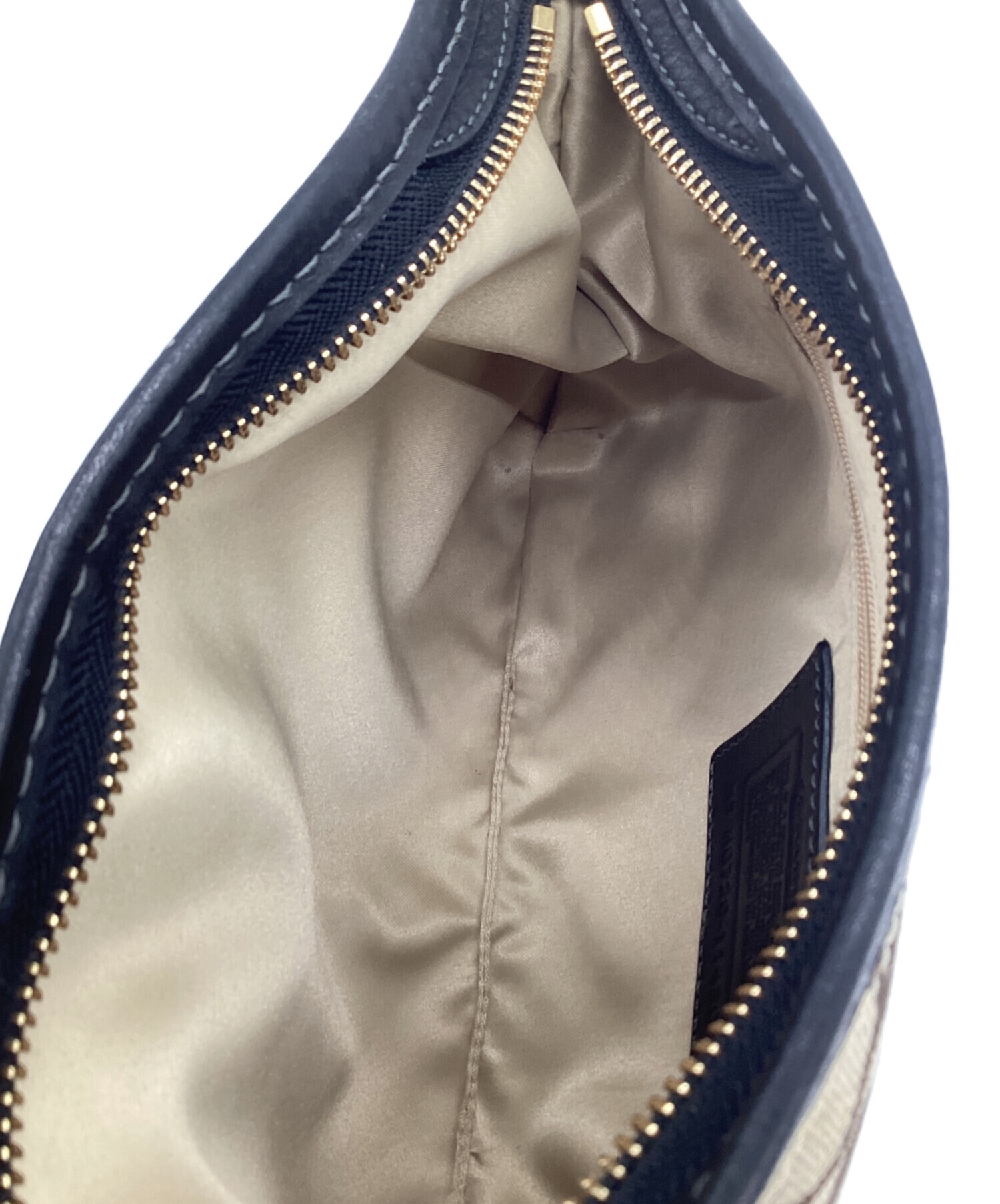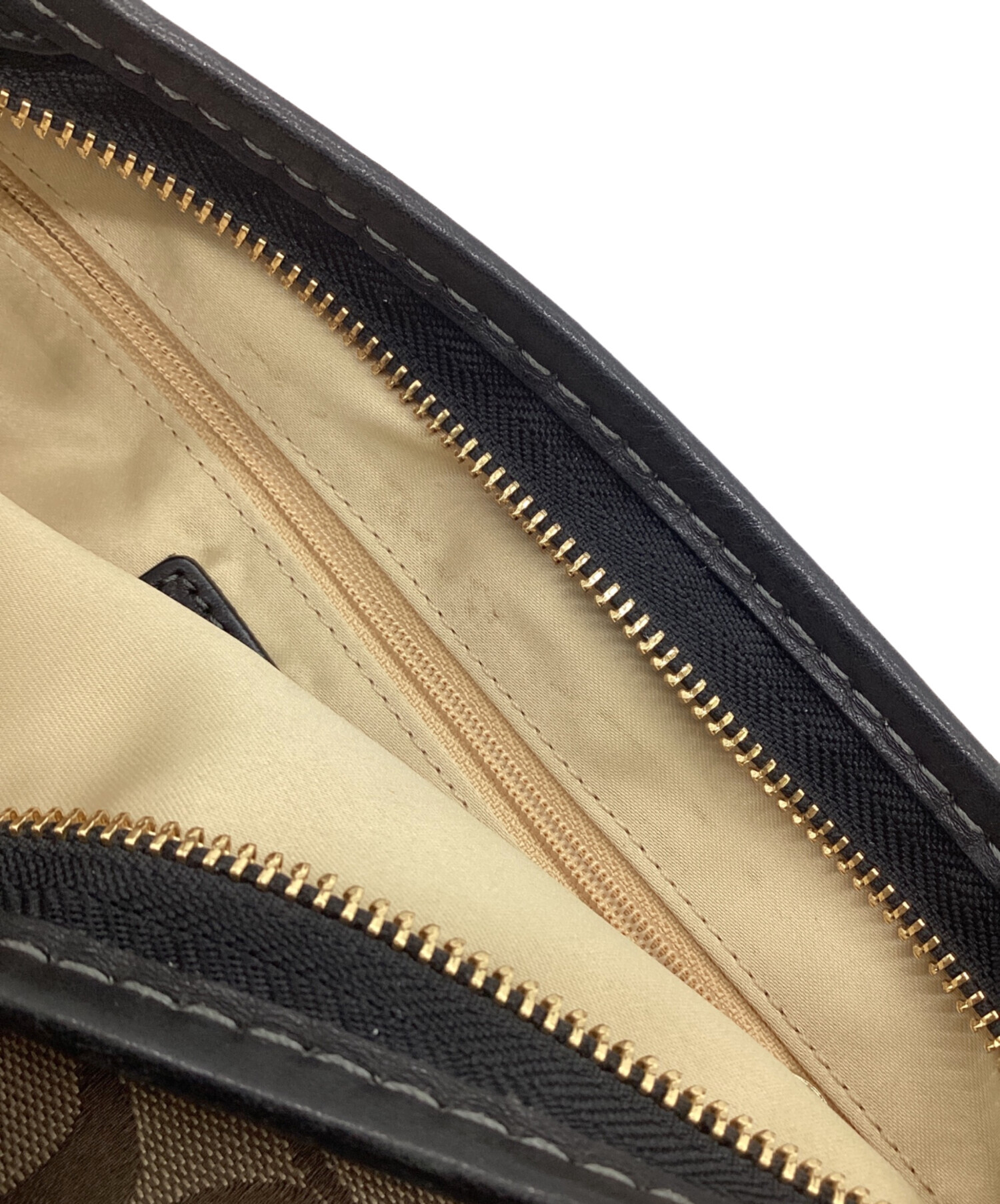 • COACH(コーチ)COACH (コーチ) シグネチャー ワンショルダーバッグ ベージュ×ブラックの古着・服飾アイテム 内部汚れ箇所あり