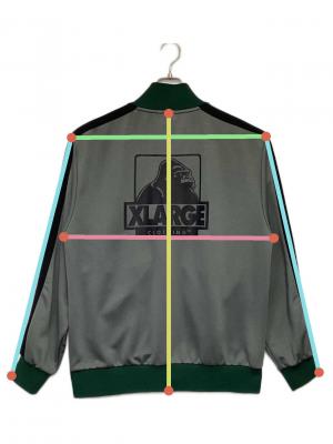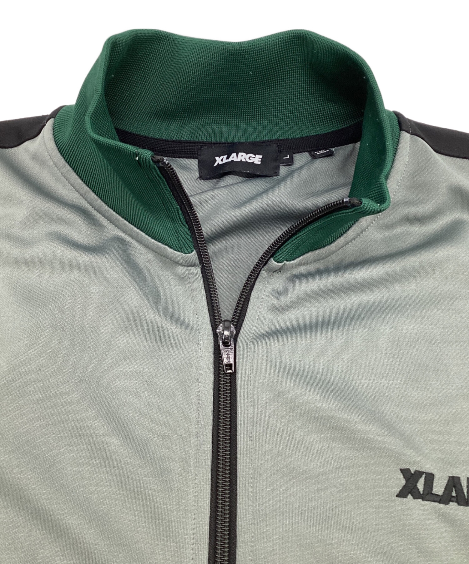• X-LARGE(エクストララージ)X-LARGE (エクストララージ) OG トラックジャケット グレー×グリーン サイズ:Lの古着・服飾アイテム 背面裾付近にキズ箇所あり