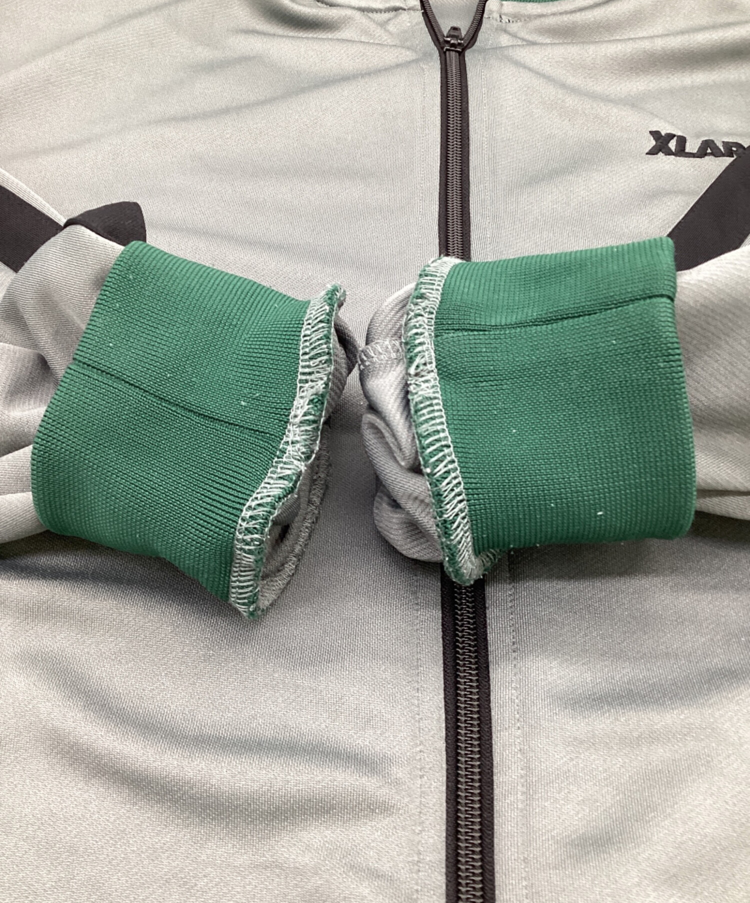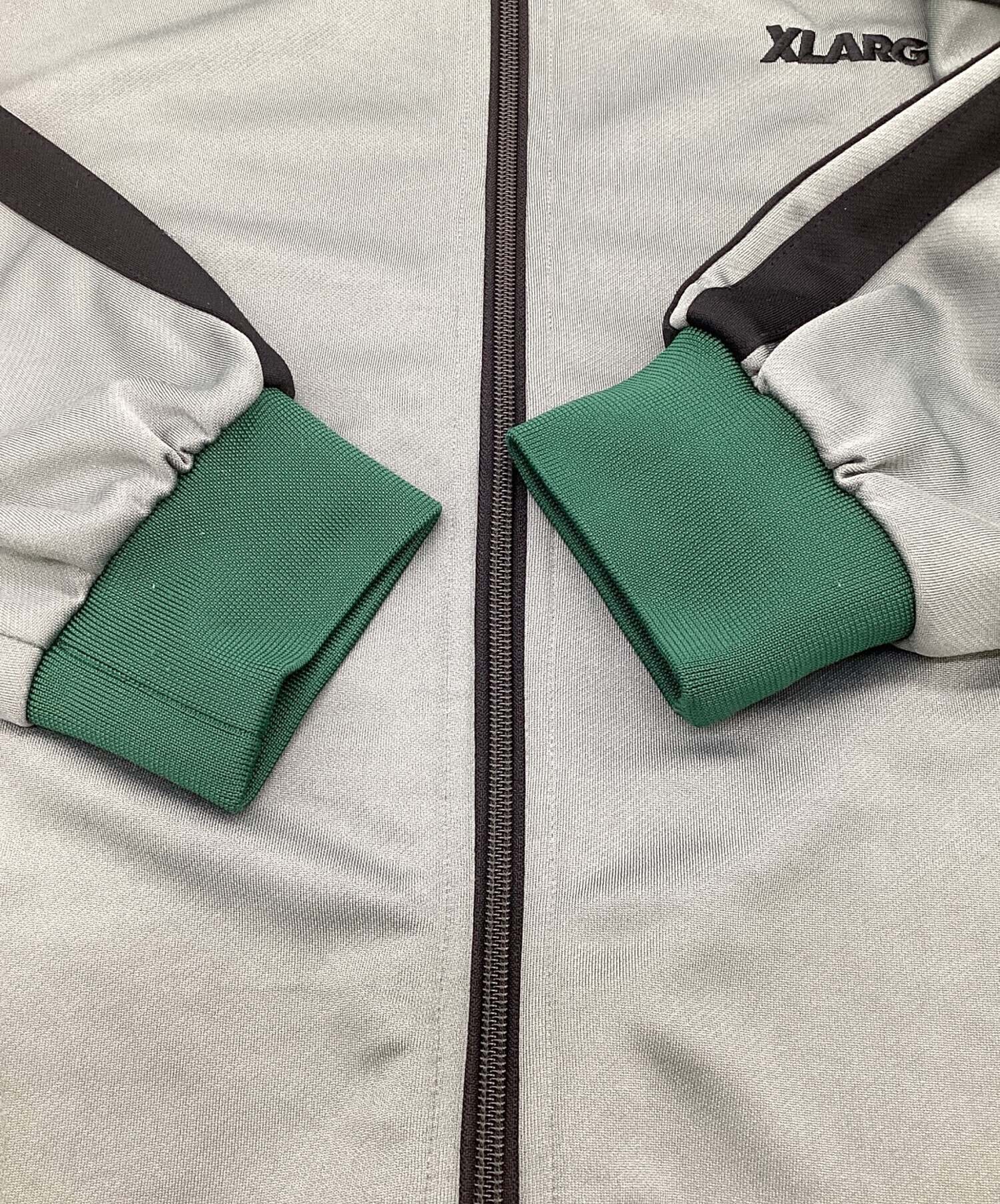 • X-LARGE(エクストララージ)X-LARGE (エクストララージ) OG トラックジャケット グレー×グリーン サイズ:Lの古着・服飾アイテム 袖口付近につれ箇所あり