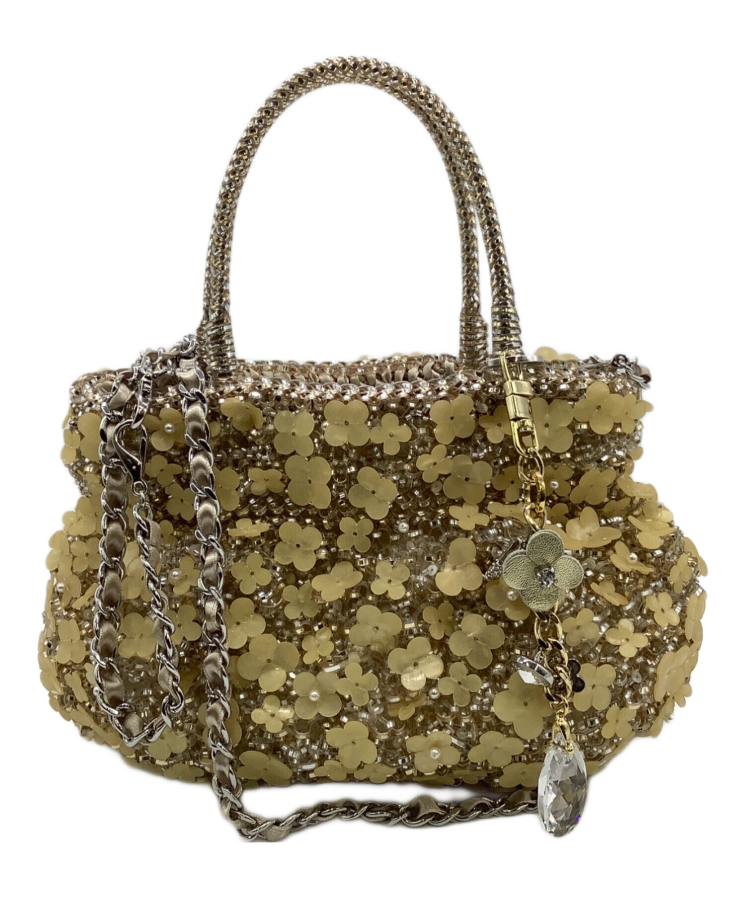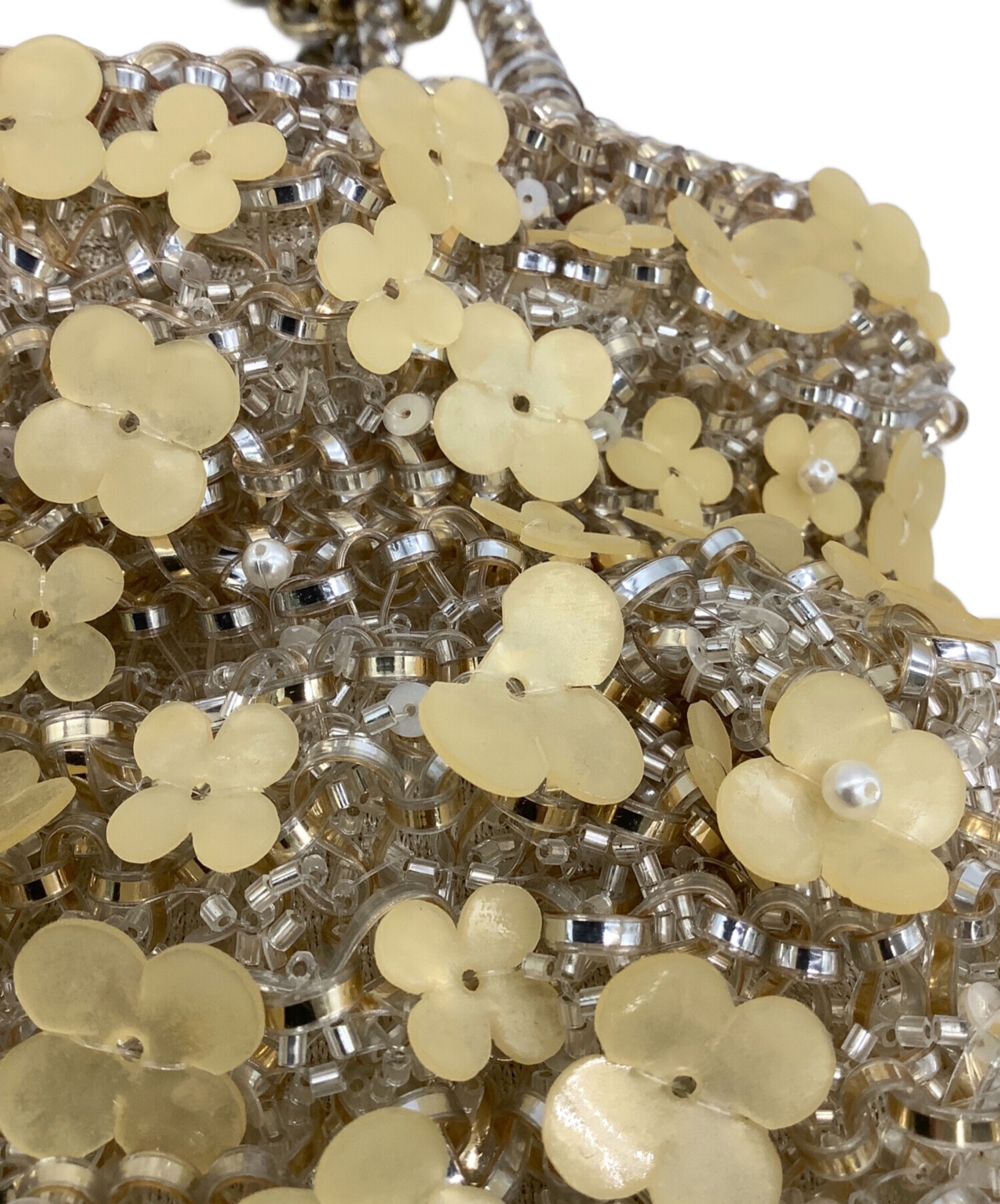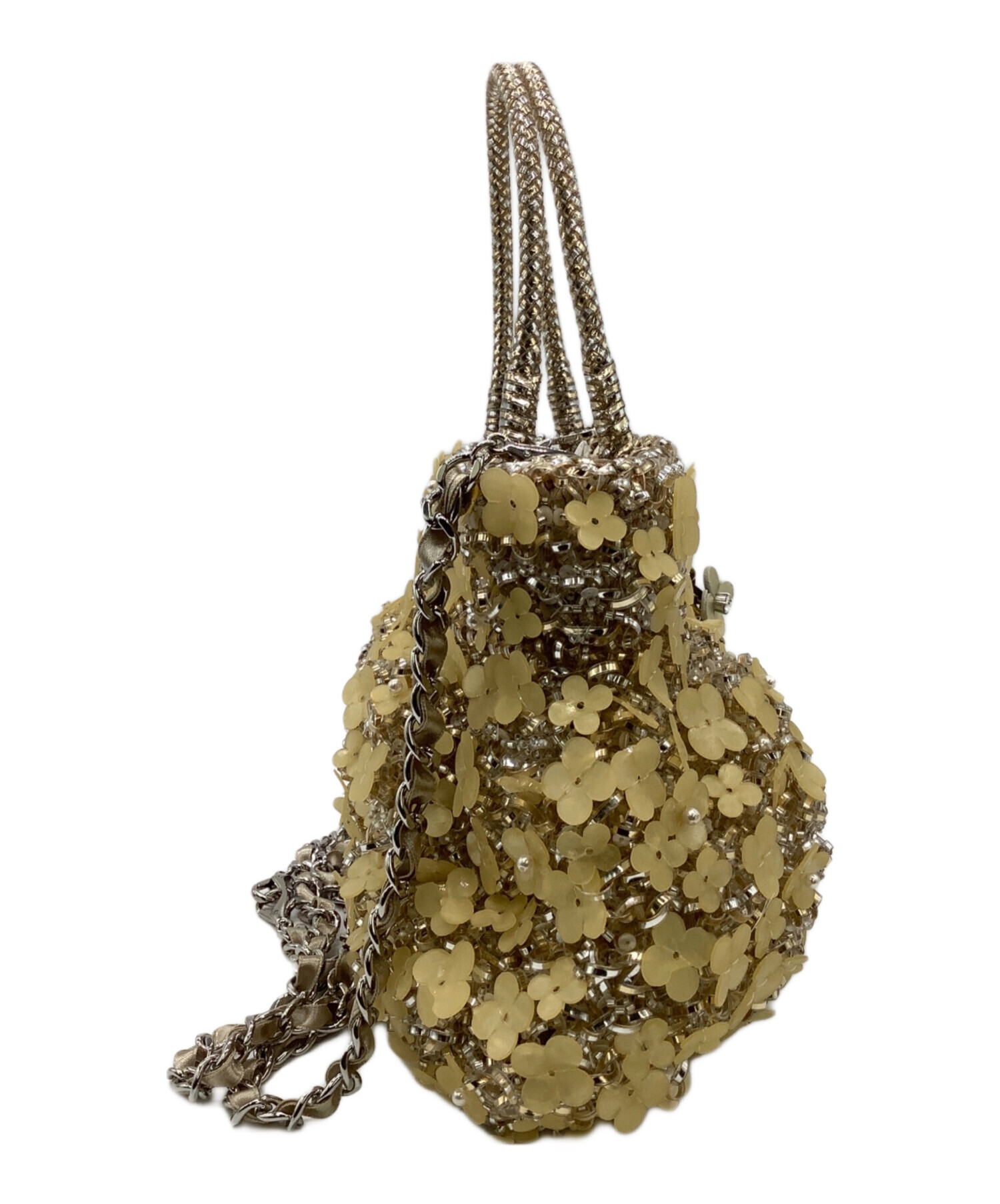 | スタッフコメント | ワイヤーバッグに施された花びらモチーフの装飾、ストーン輝くチャームが目を惹きます。着脱可能な2サイズのチェーンストラップでアレンジをお楽しみいただけるお品物です。 |