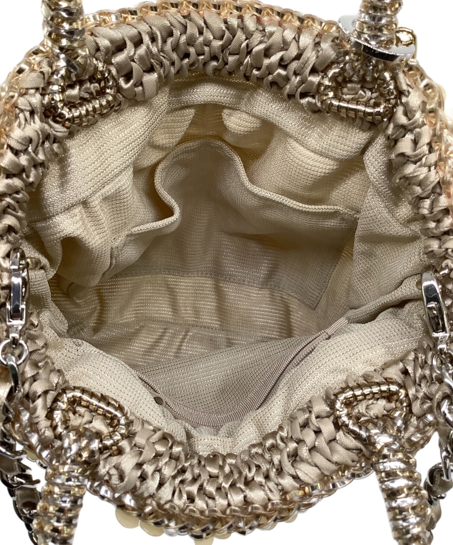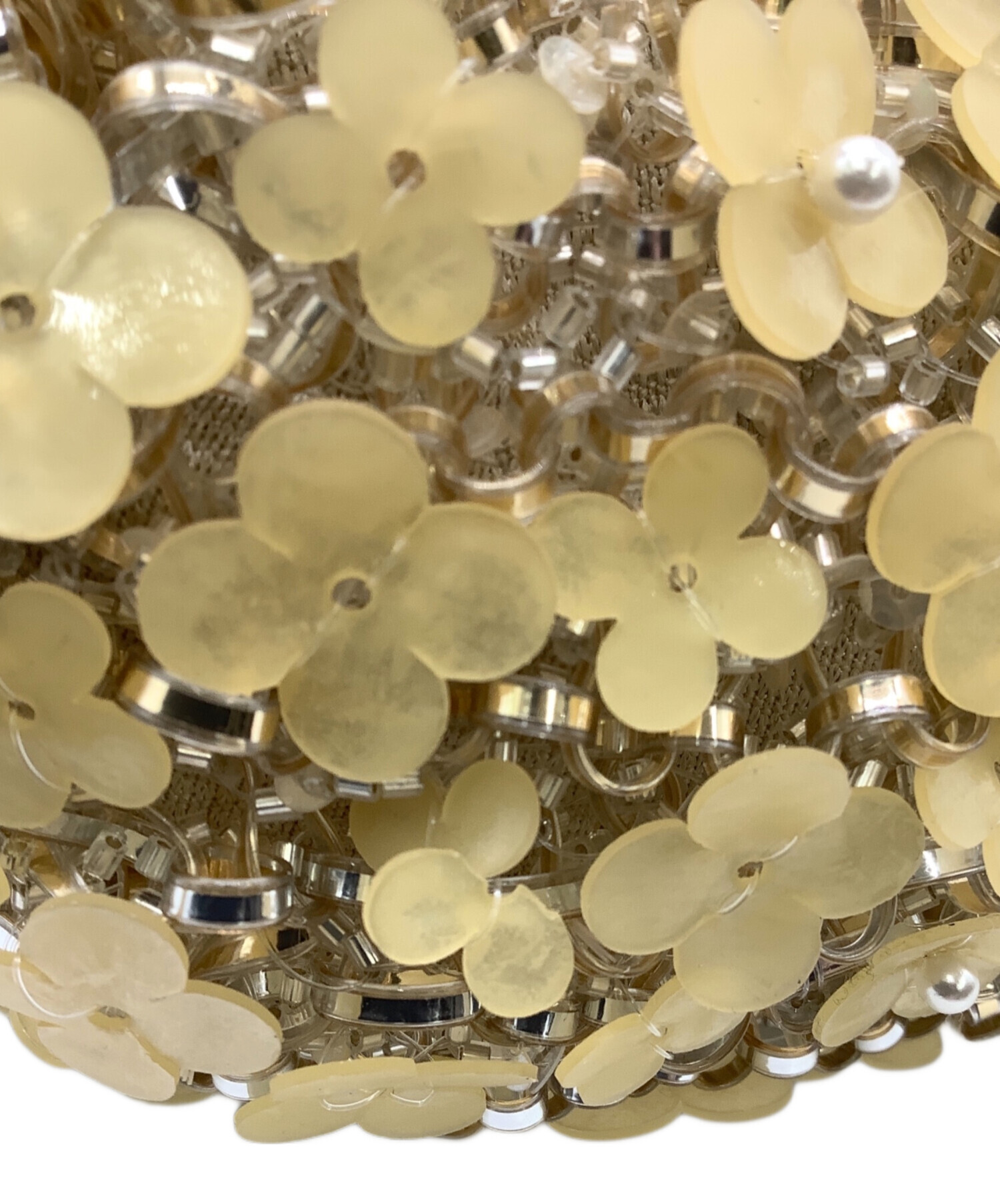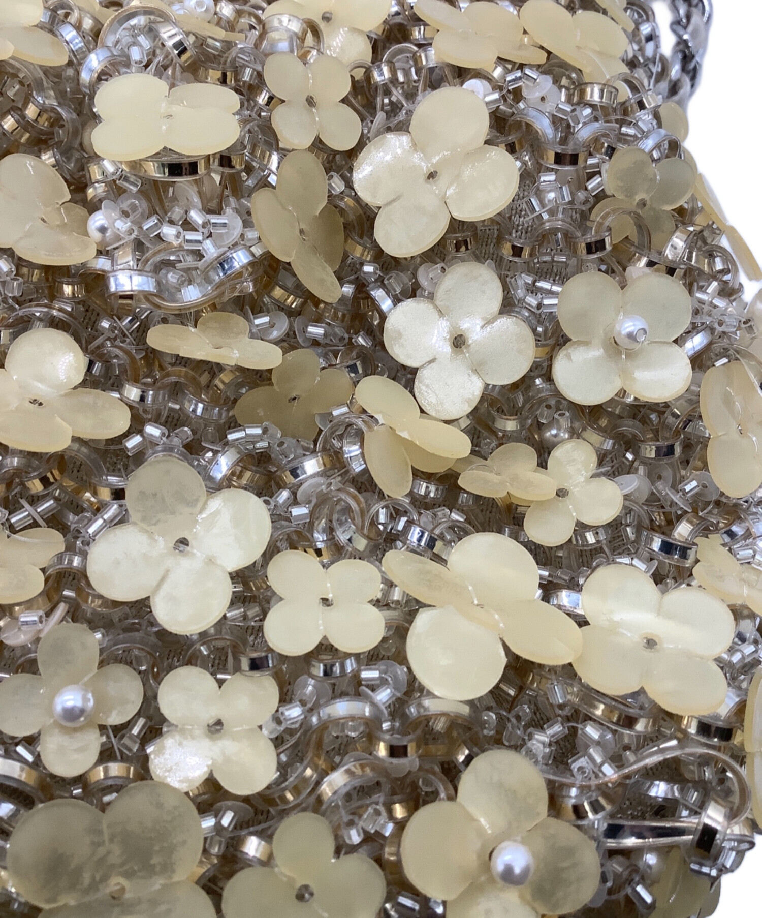 | スタッフコメント | ワイヤーバッグに施された花びらモチーフの装飾、ストーン輝くチャームが目を惹きます。着脱可能な2サイズのチェーンストラップでアレンジをお楽しみいただけるお品物です。 |
