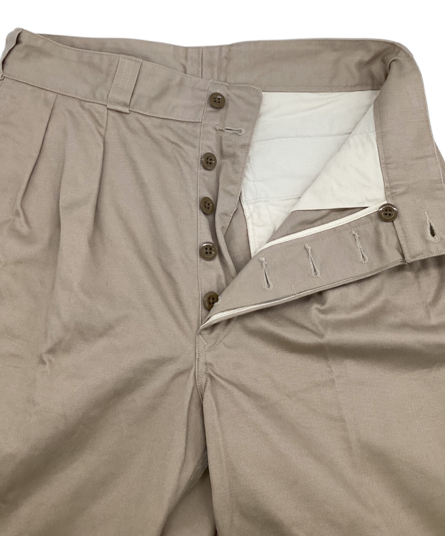 | 状態 | 膝部分に薄汚れ、センタープレス跡のアタリ、裾直し跡、裾裏に薄汚れ等あり。 こちらの商品は中古品の為、使用に伴います細かなキズ、汚れがございます。店頭にて展示販売を行っている為、記載に無い細かなキズ、汚れが見受けられる場合がございます。 |
