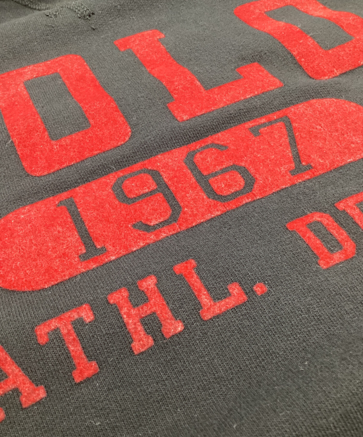 | 状態 | 全体的に毛羽立ち・毛玉、プリントに薄汚れ・割れ、袖口汚れ等使用感あり。 こちらの商品は中古品の為、使用に伴います細かなキズ、汚れがございます。店頭にて展示販売を行っている為、記載に無い細かなキズ、汚れが見受けられる場合がございます。 |