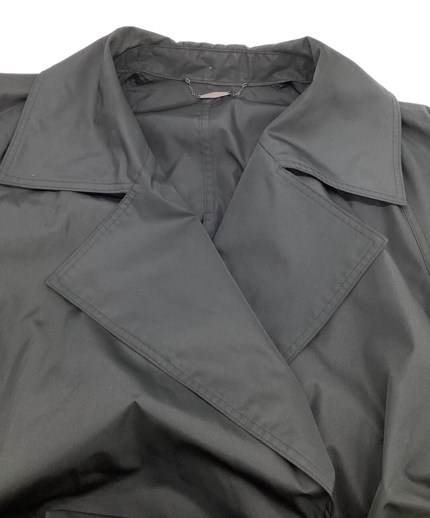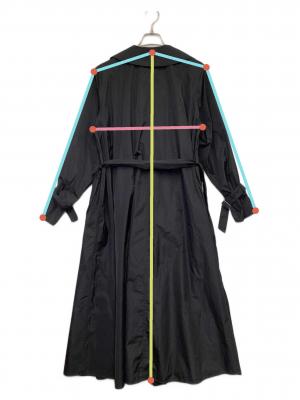 スタッフコメント きめ細かくわずかに光沢感ある生地1枚仕立て、トレンチ風ディテールとフロントボタン無し、ベルト付属のシンプルなスタイル。存在感あるロング丈ブラック色です。
