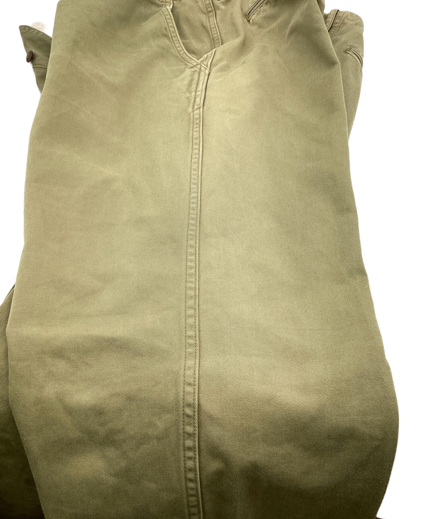 | 状態 | ポケット生地に毛羽立ち、膝付近に小汚れ、プレス跡のアタリ、裾に汚れ・ロール跡の擦れ、全体的にヤケによる色むら等あり。 こちらの商品は中古品の為、使用に伴います細かなキズ、汚れがございます。店頭にて展示販売を行っている為、記載に無い細かなキズ、汚れが見受けられる場合がございます。 |