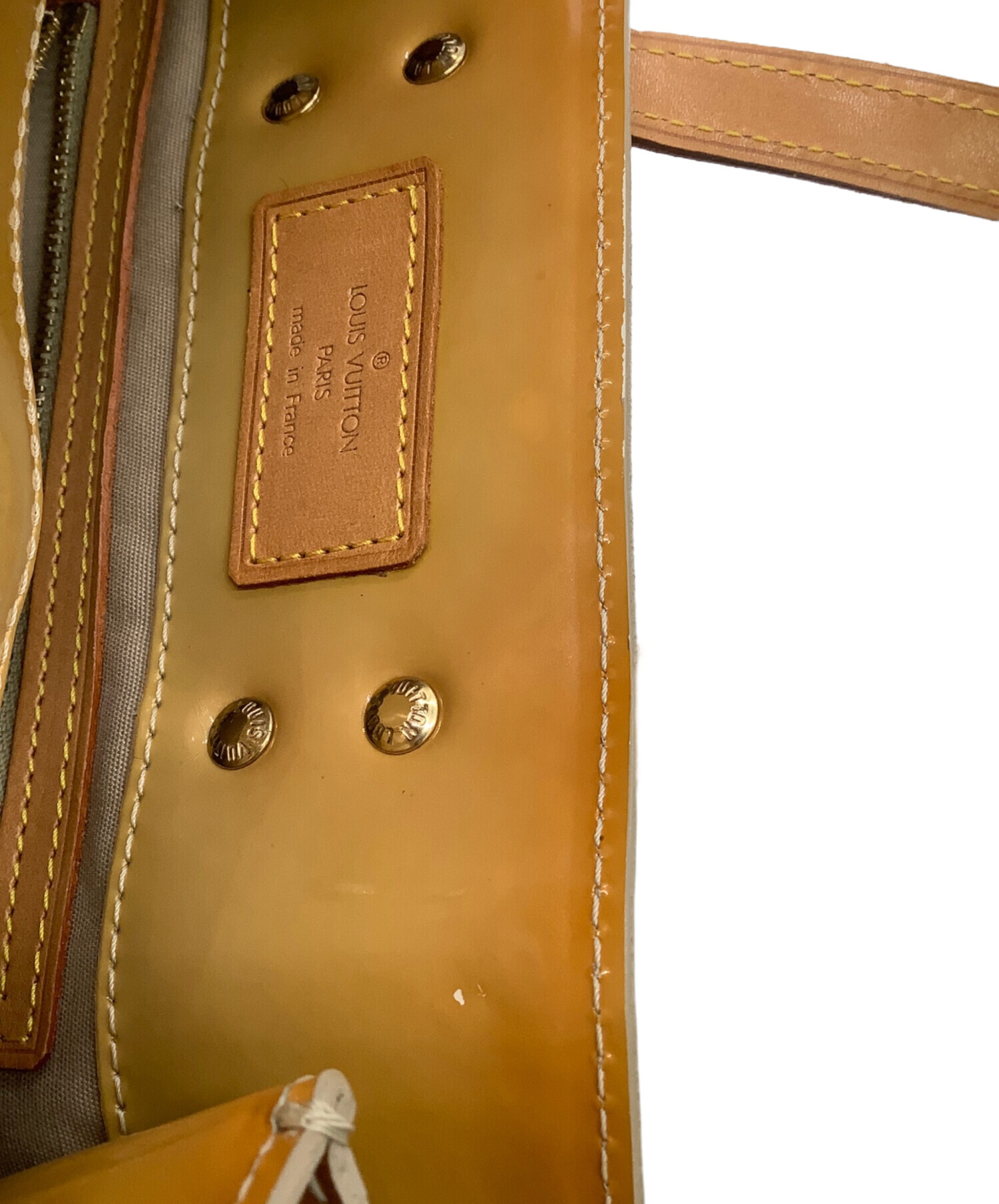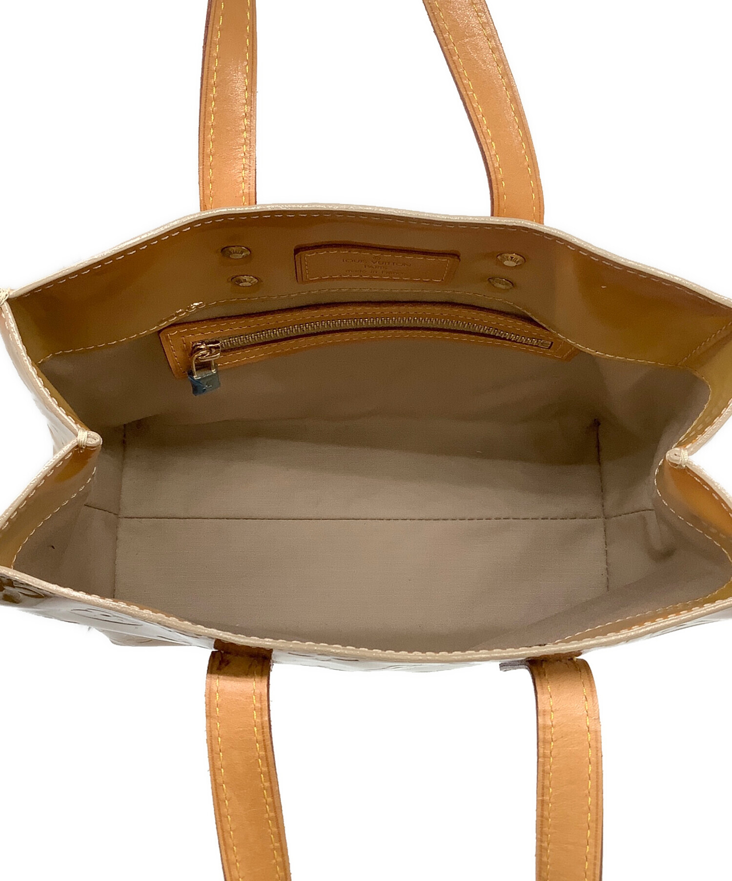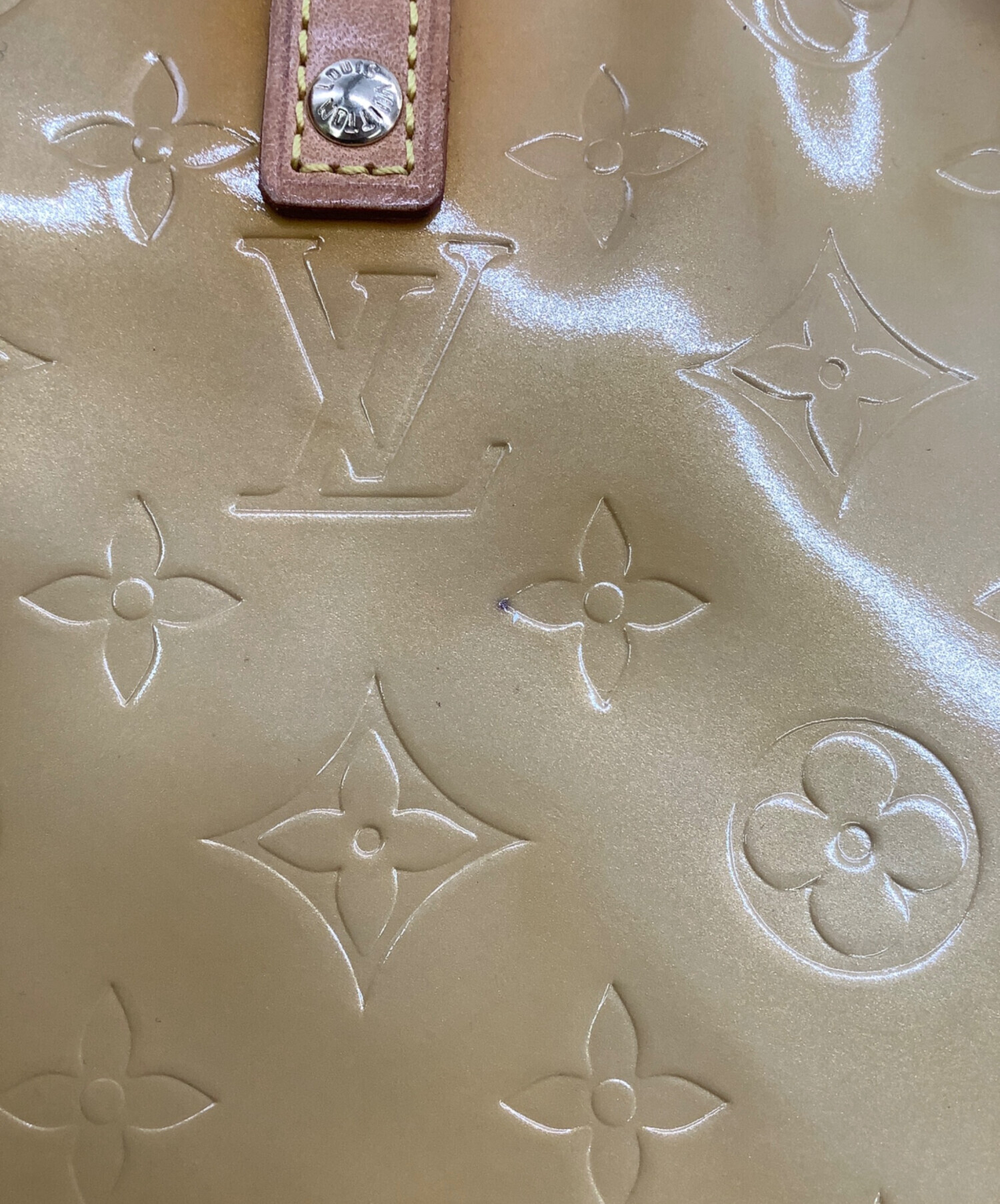 | スタッフコメント | エンボスによるモノグラム、エナメルの光沢感が特徴的なラインです。コンパクトなミニトート、必需品+αの持ち歩きにお使いいただけるサイズ感です。 シリアル№MI0041(2001年フランス製) |