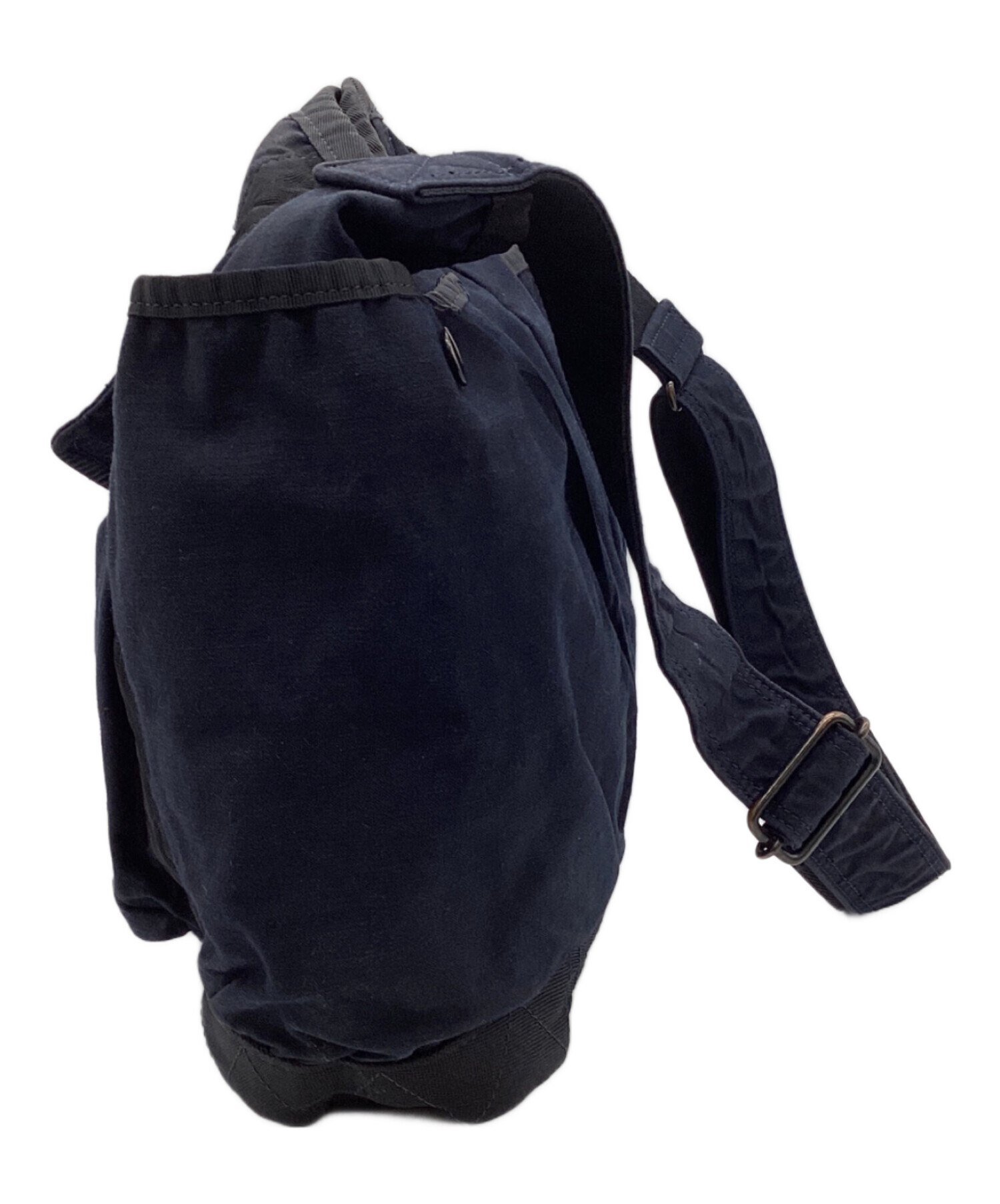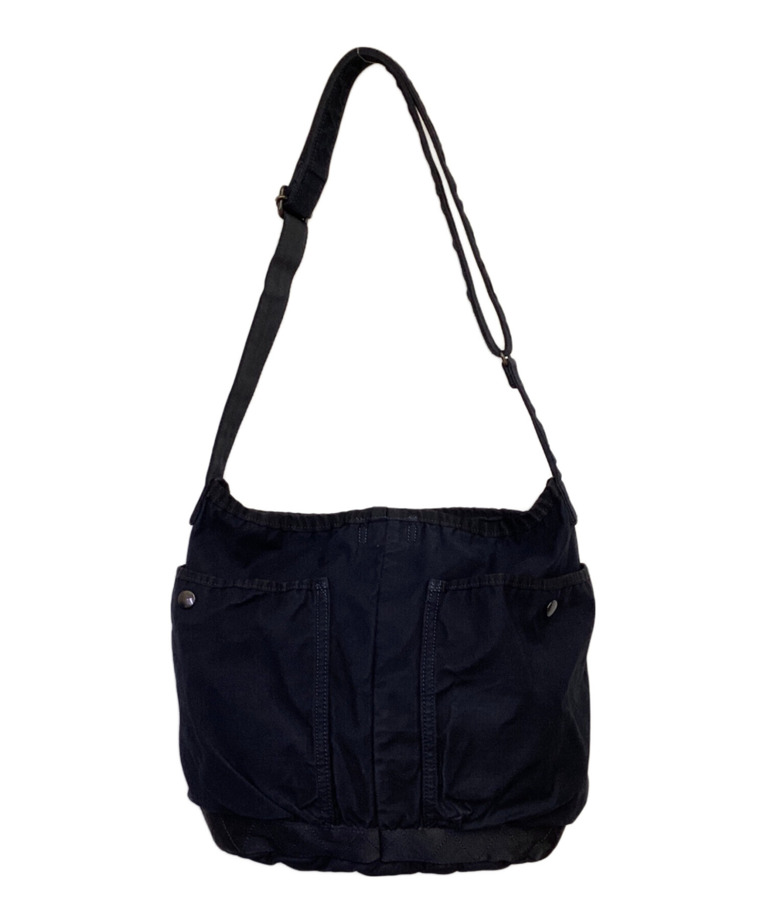 | スタッフコメント | 製品染めによるシワ感・ヨレ感が特徴的です。ワンショルダーからクロスショルダーまで対応のストラップ、メイン収納は開閉しやすいスナップボタン、大き目な外ポケットを備えた日常使いいただけるお品物です。 |