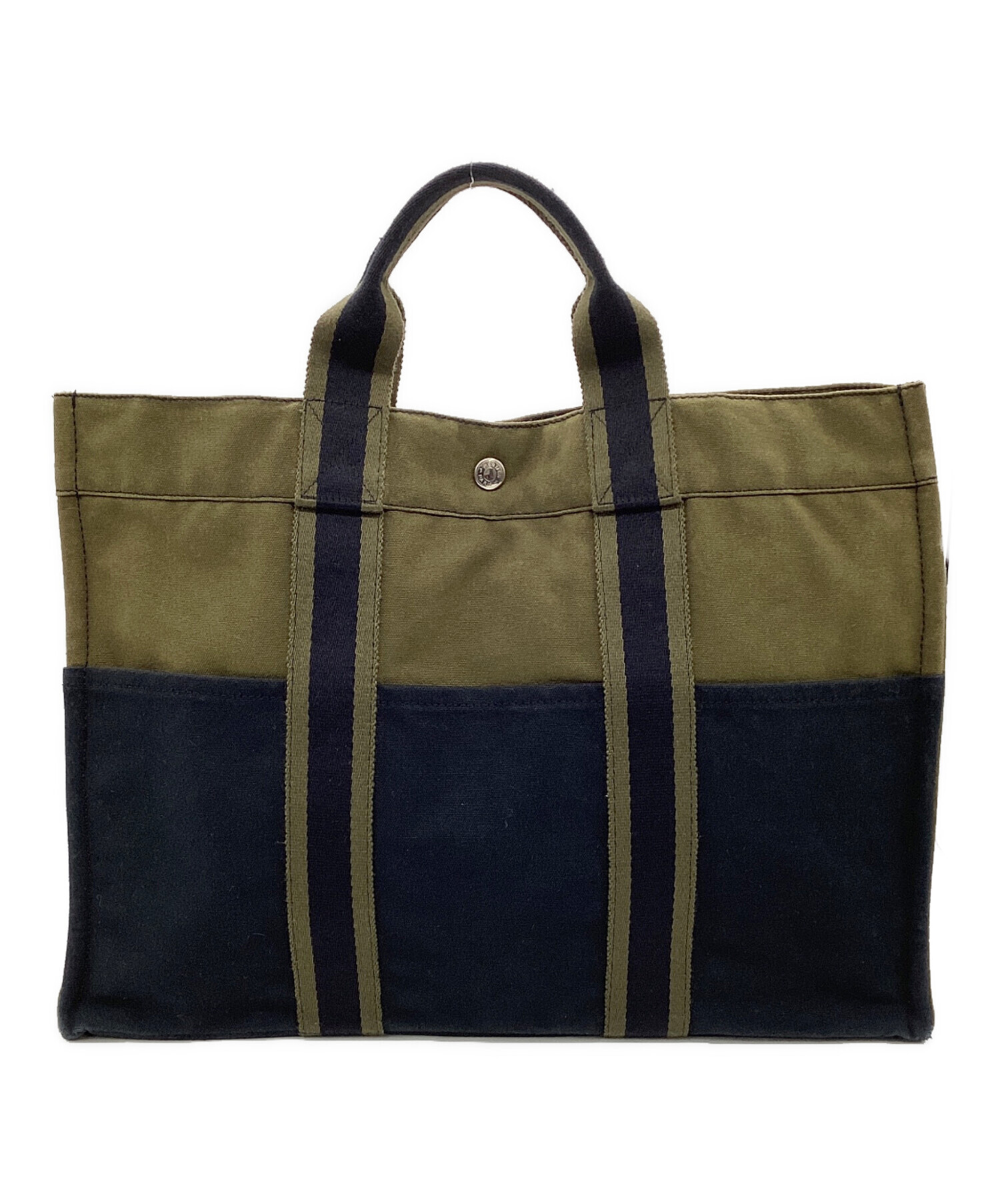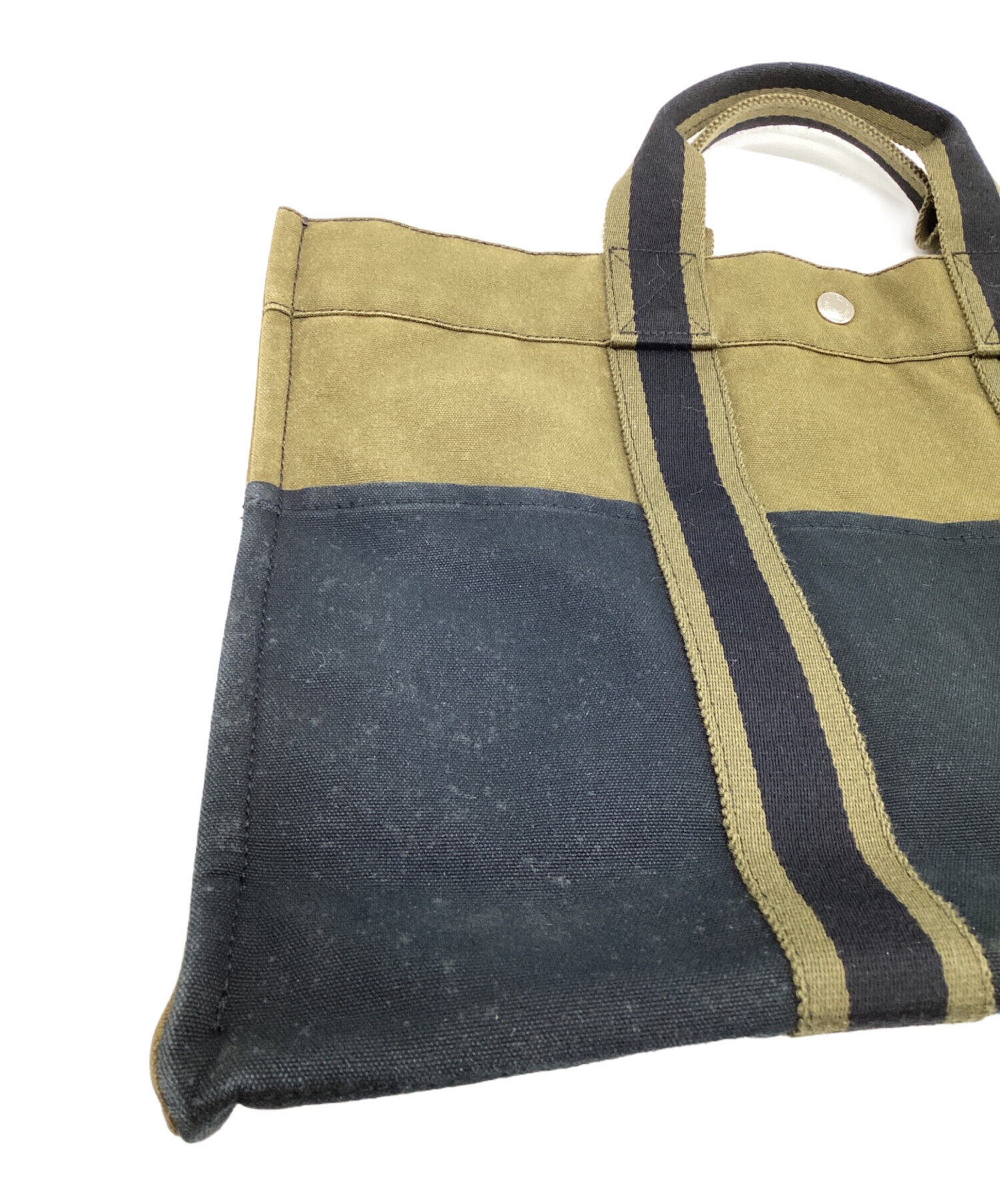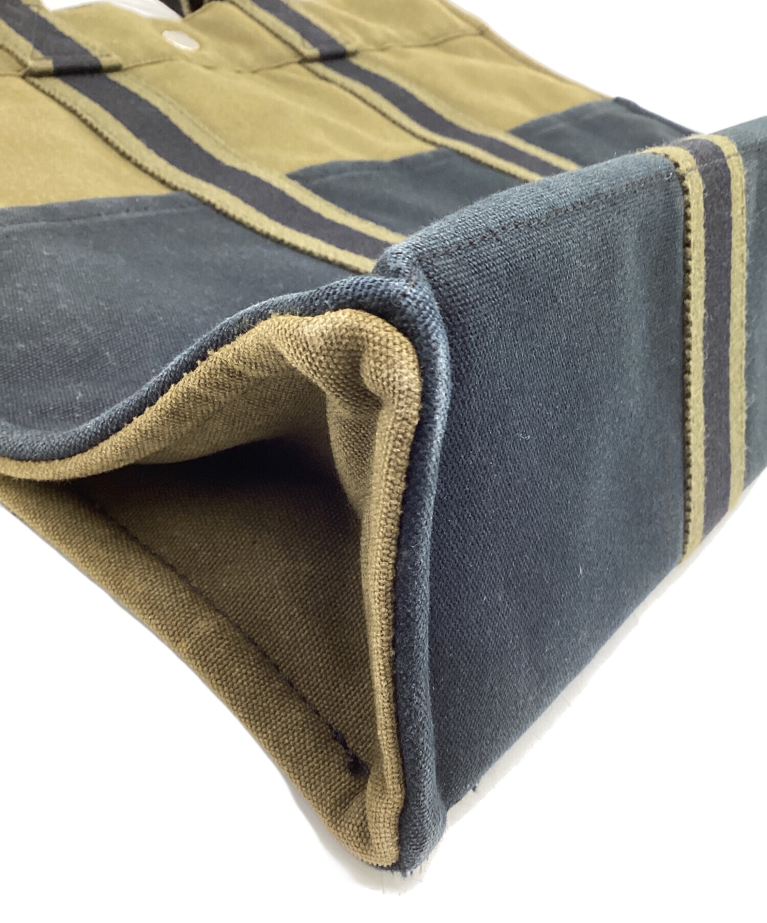 | スタッフコメント | 厚手のコットンキャンバス、2色の配色が特徴的です。シンプルな内装と適度なマチ幅、内外にポケットを備えた実用的なお品物です。 |
