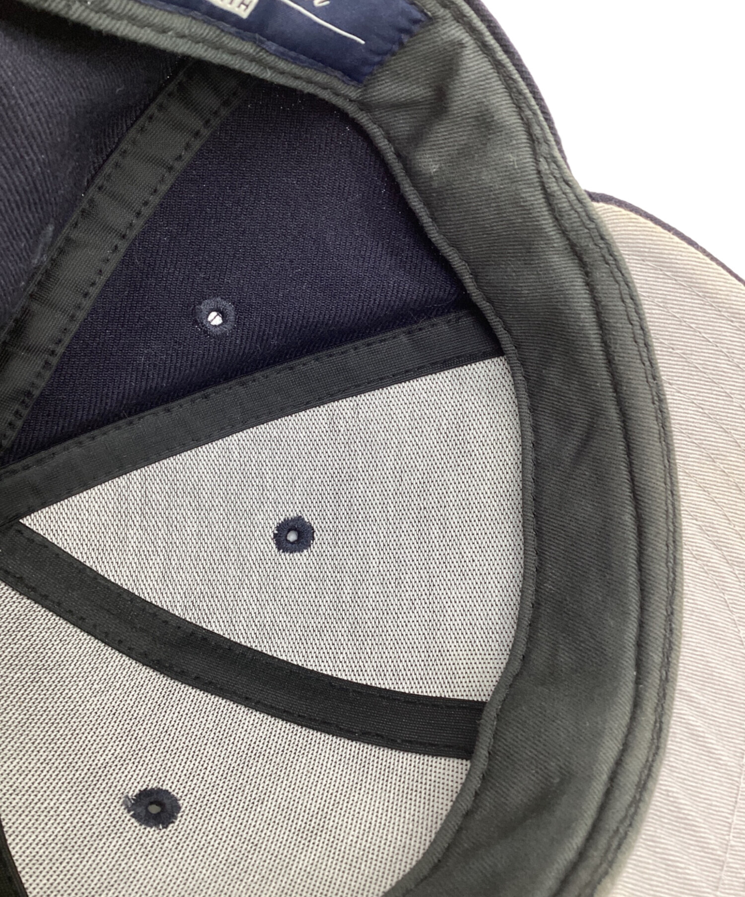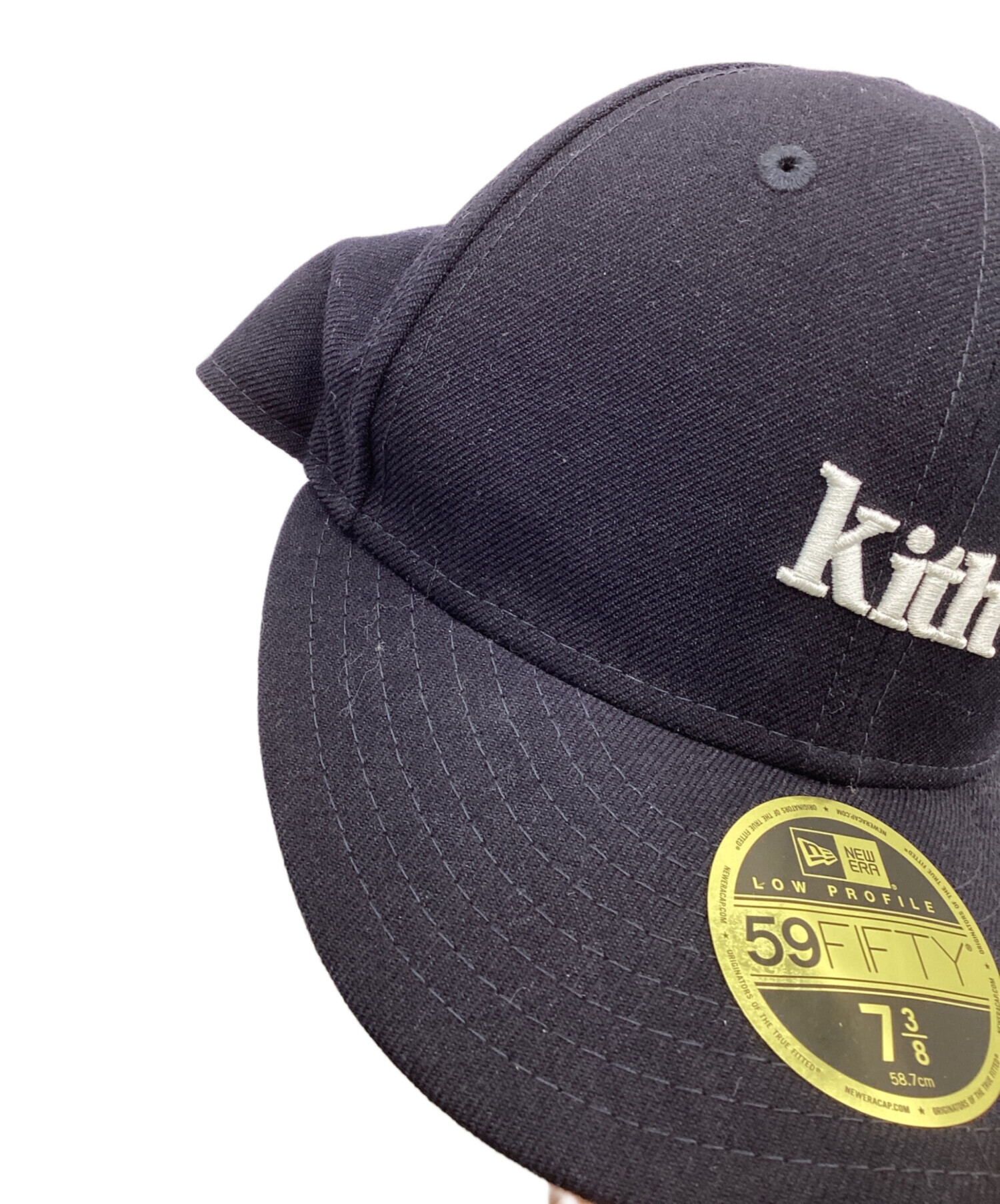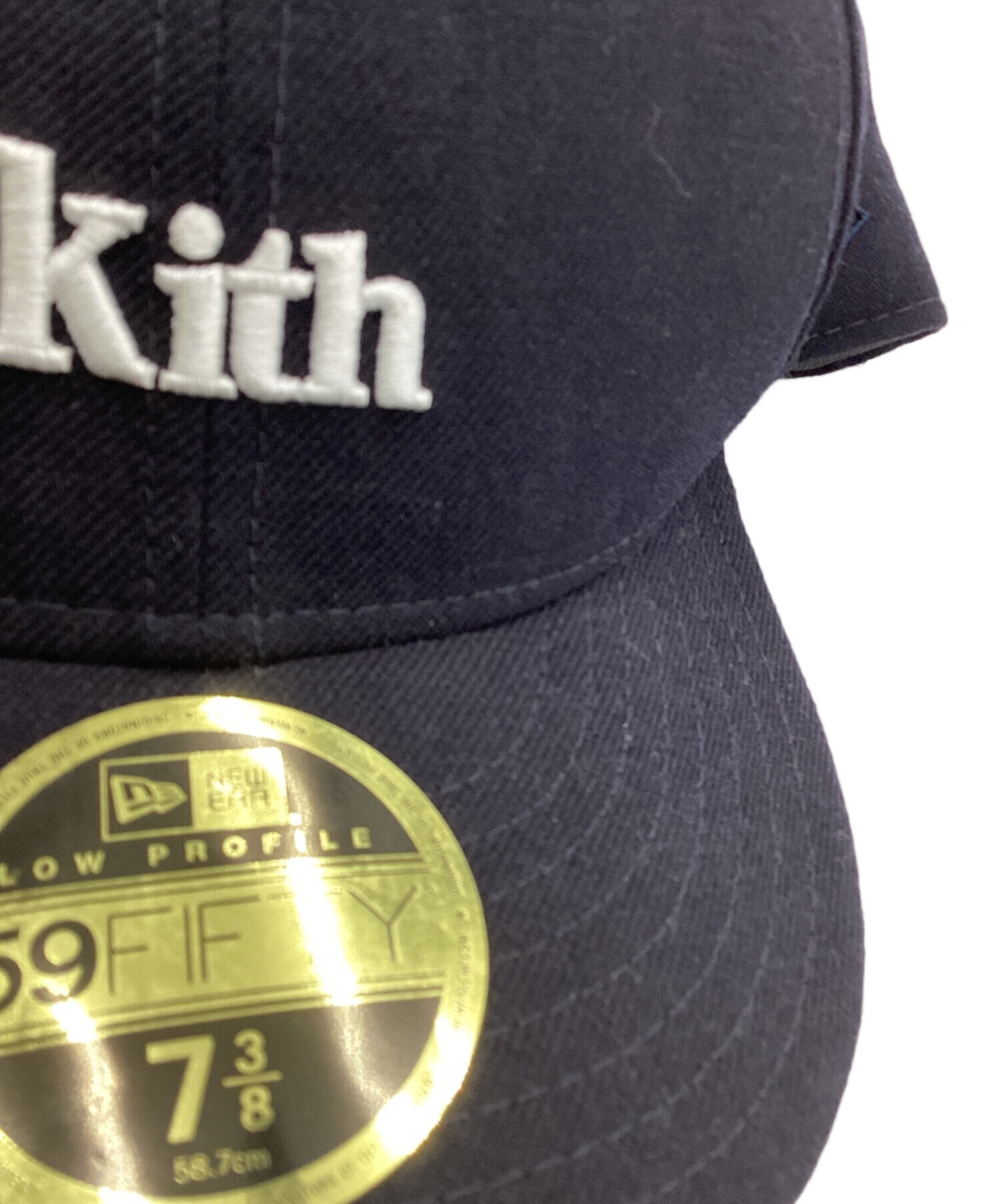 • New Era(ニューエラ)New Era (ニューエラ) KITH (キス) GENUINE MERCHANDISE (ジェニュイン マーチャンダイズ) 59FIFTY SERIF TEAM CAP NAVY キャップ ネイビー サイズ:7 3/8の古着・服飾アイテム つば裏に汚れあり