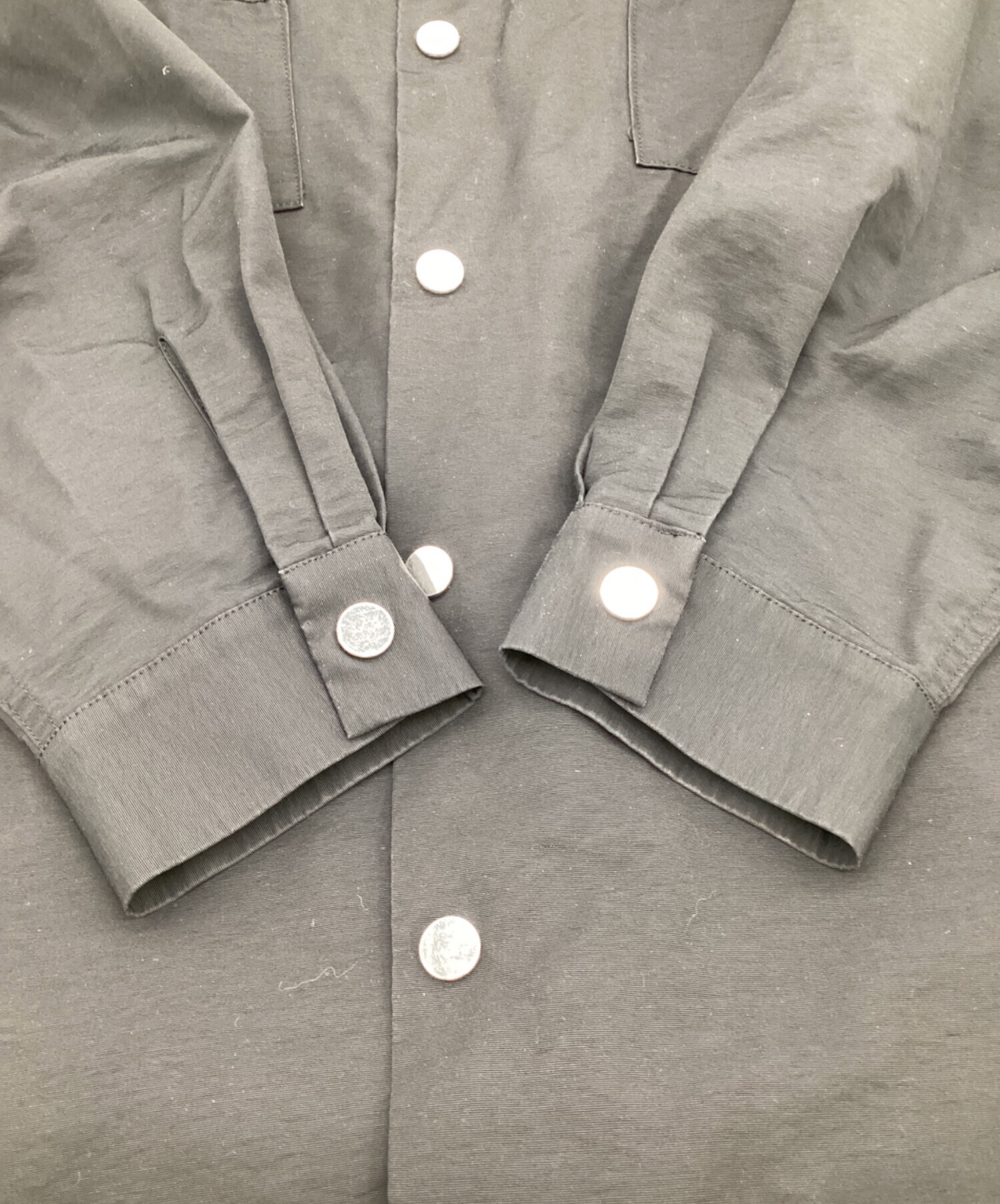 | スタッフコメント | ナチュラルなシワ感が特徴的な生地、1枚仕立てのシャツライクなシルエット。スナップボタン開閉、サイドにポケット付きの軽く羽織れるい着です。 |