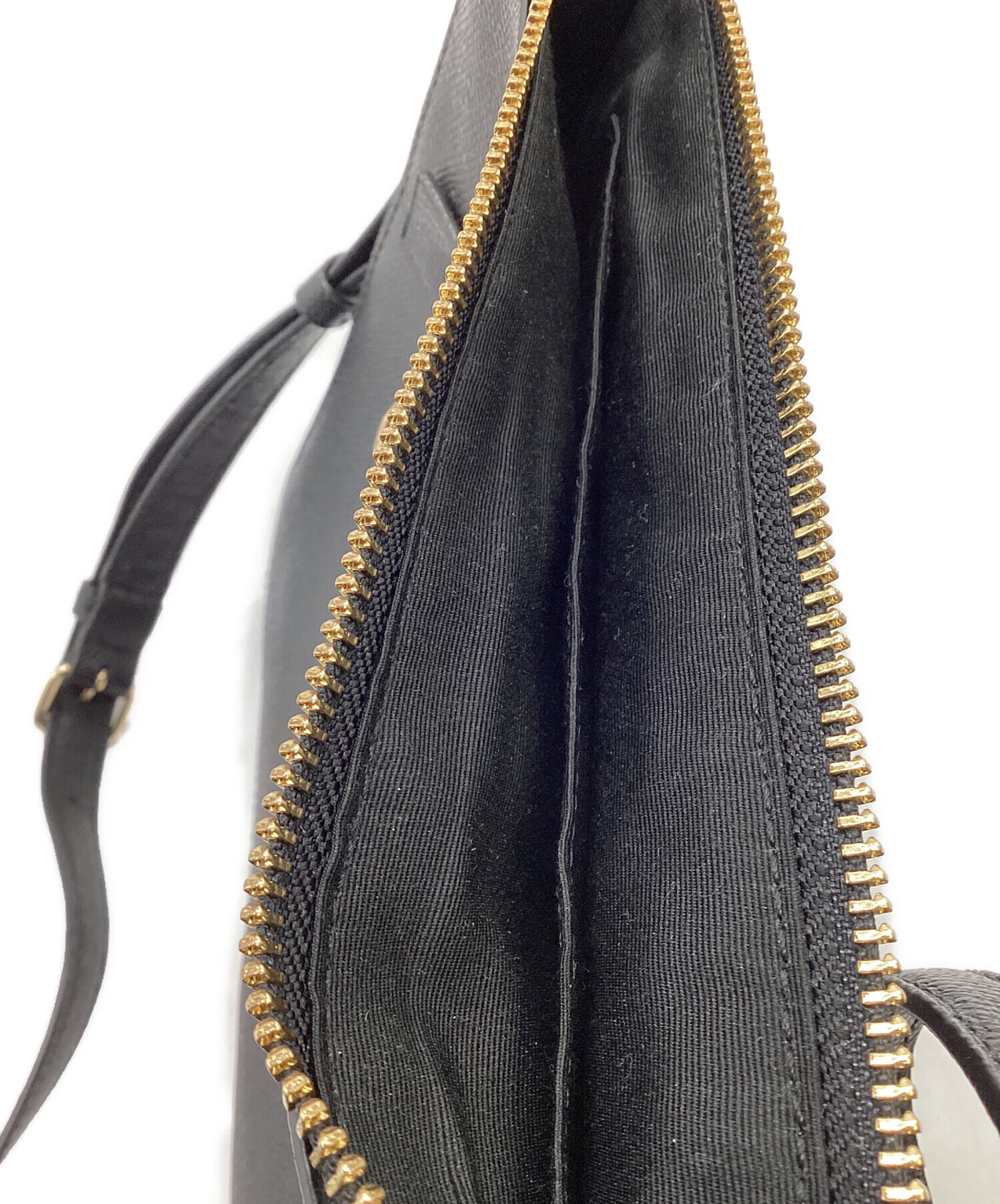 状態 開口部裏に薄汚れ、ストラップ根元にコバひび割れ・擦れ箇所あり。